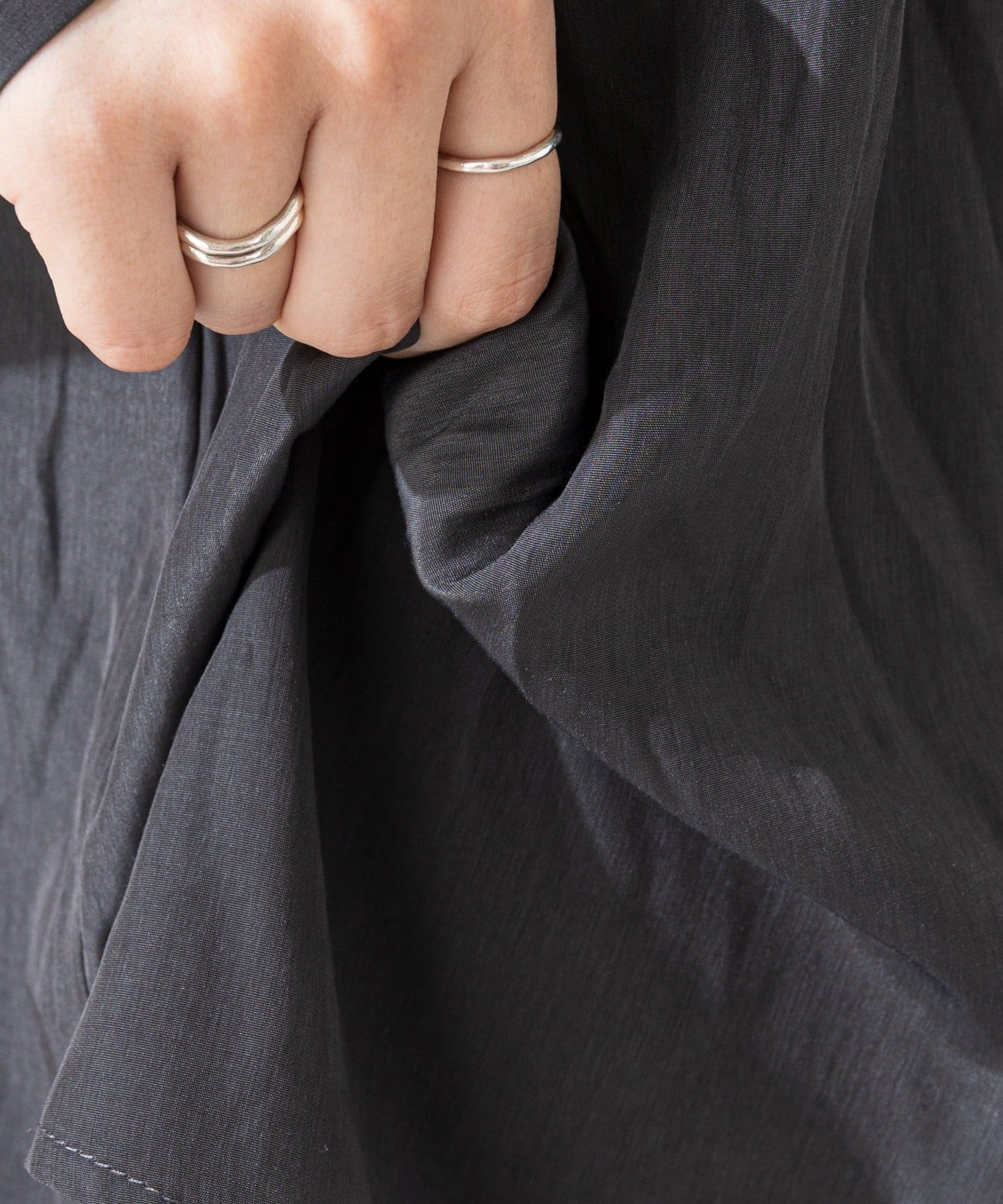 ・程よい光沢と落ち感のある生地で、軽やかでさらっとした着心地