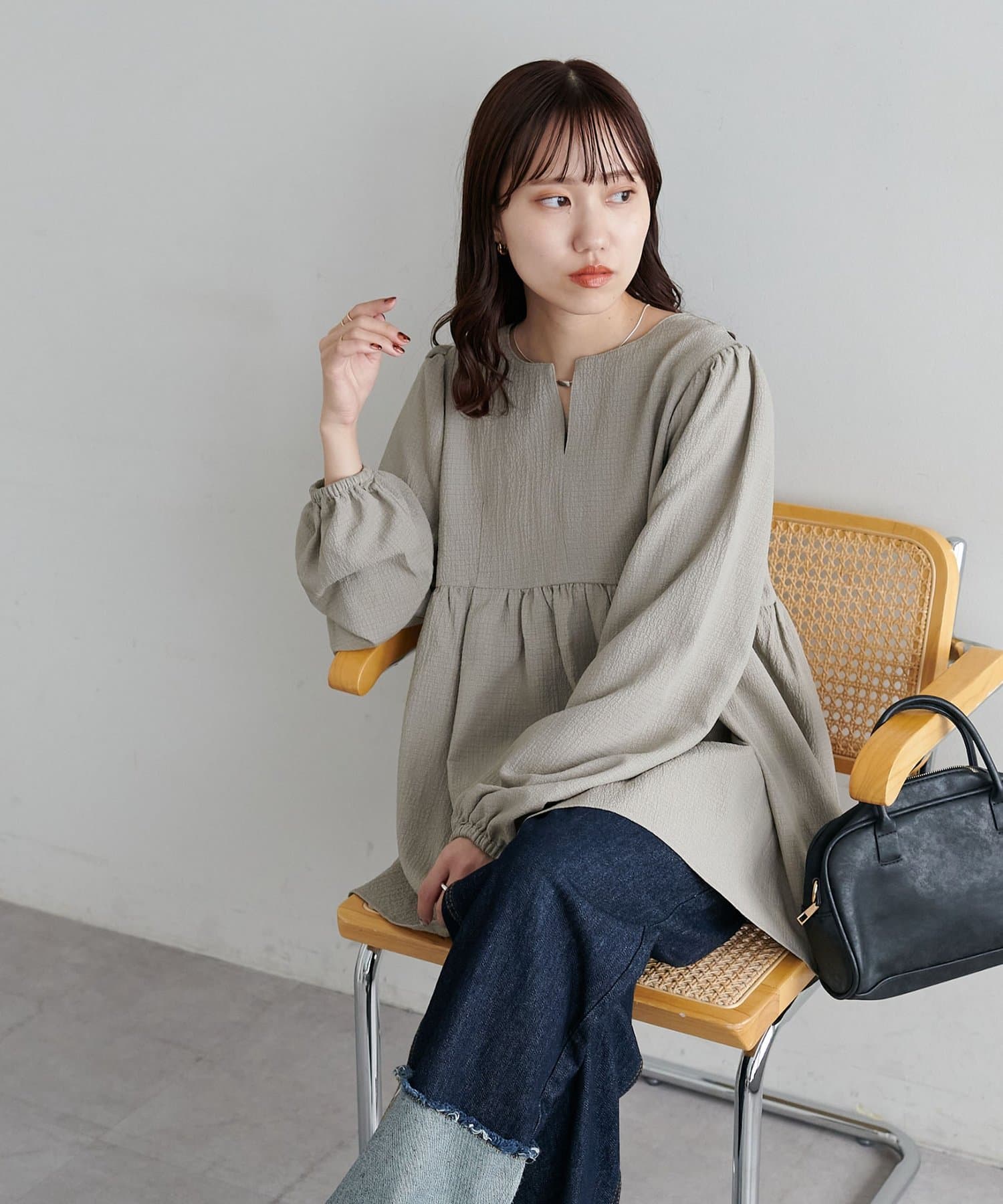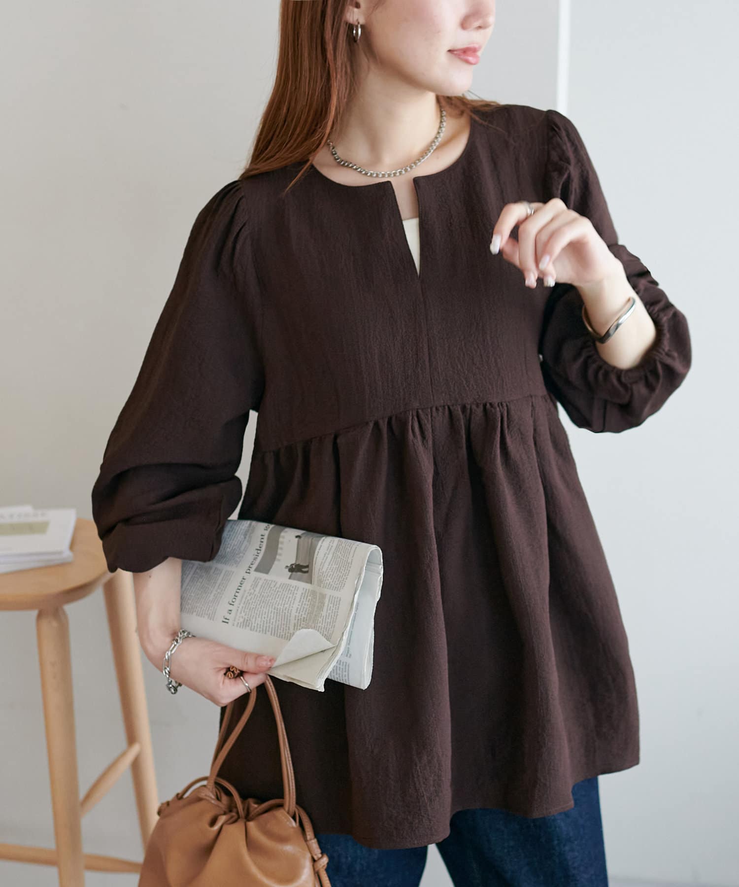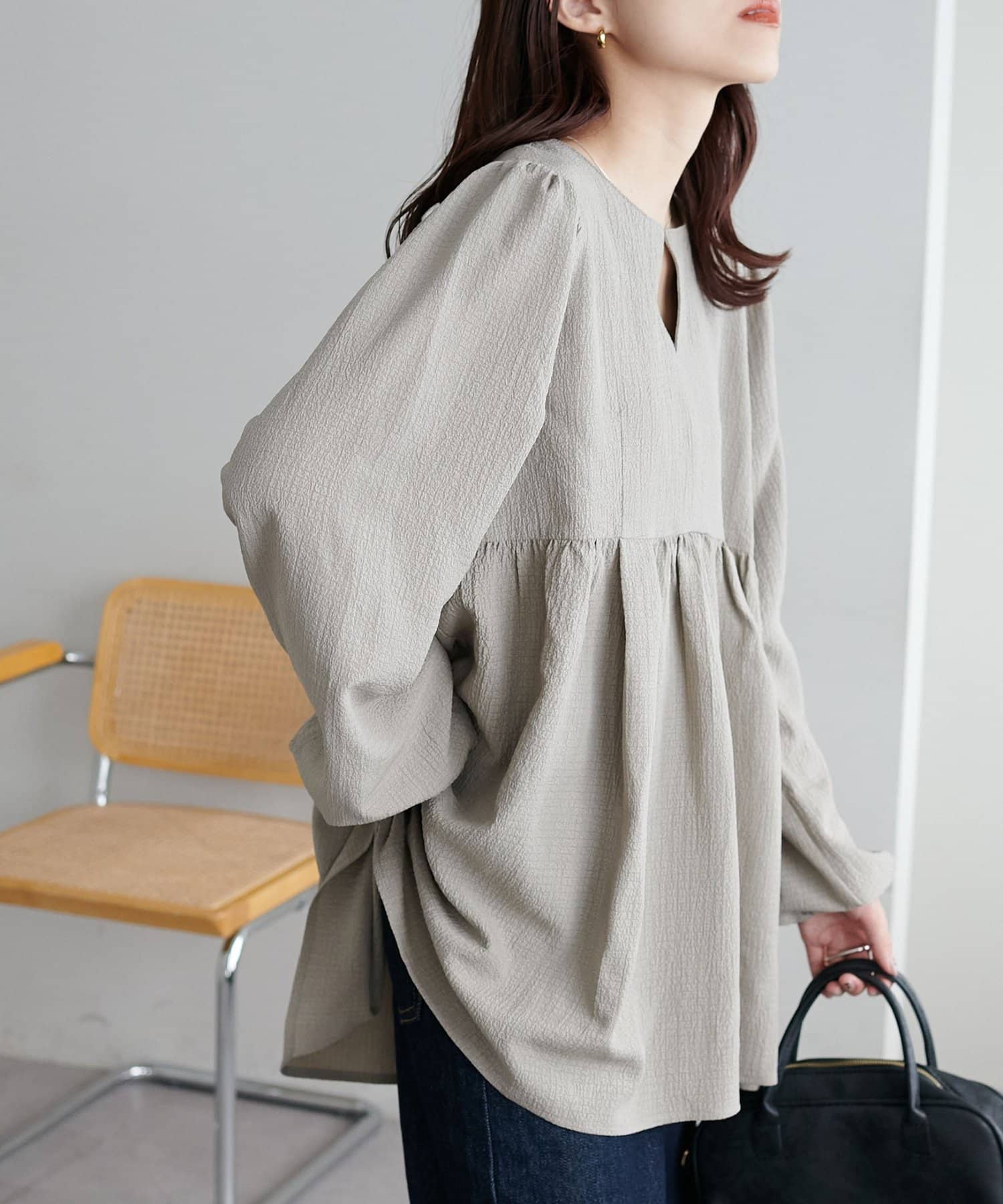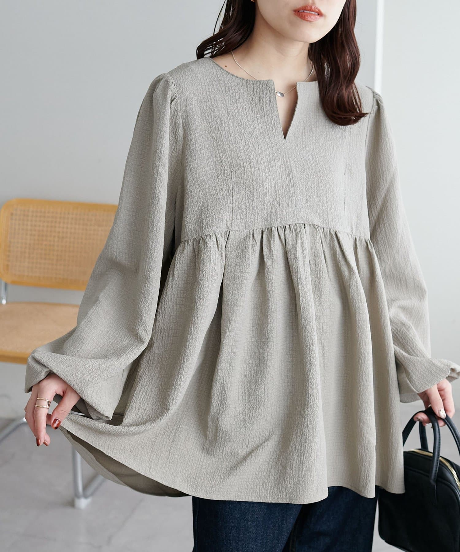 ふんわりシルエットで魅せる、大人フェミニンブラウス
