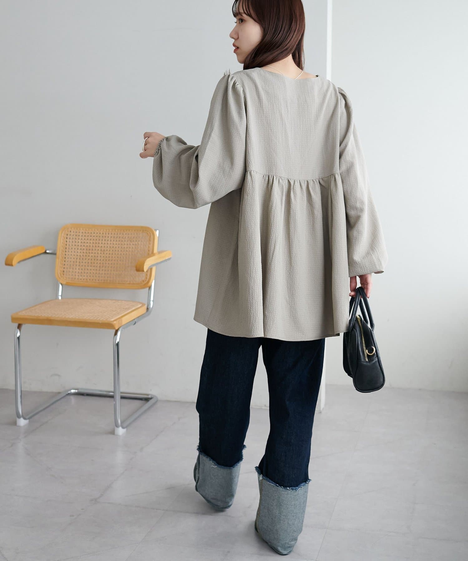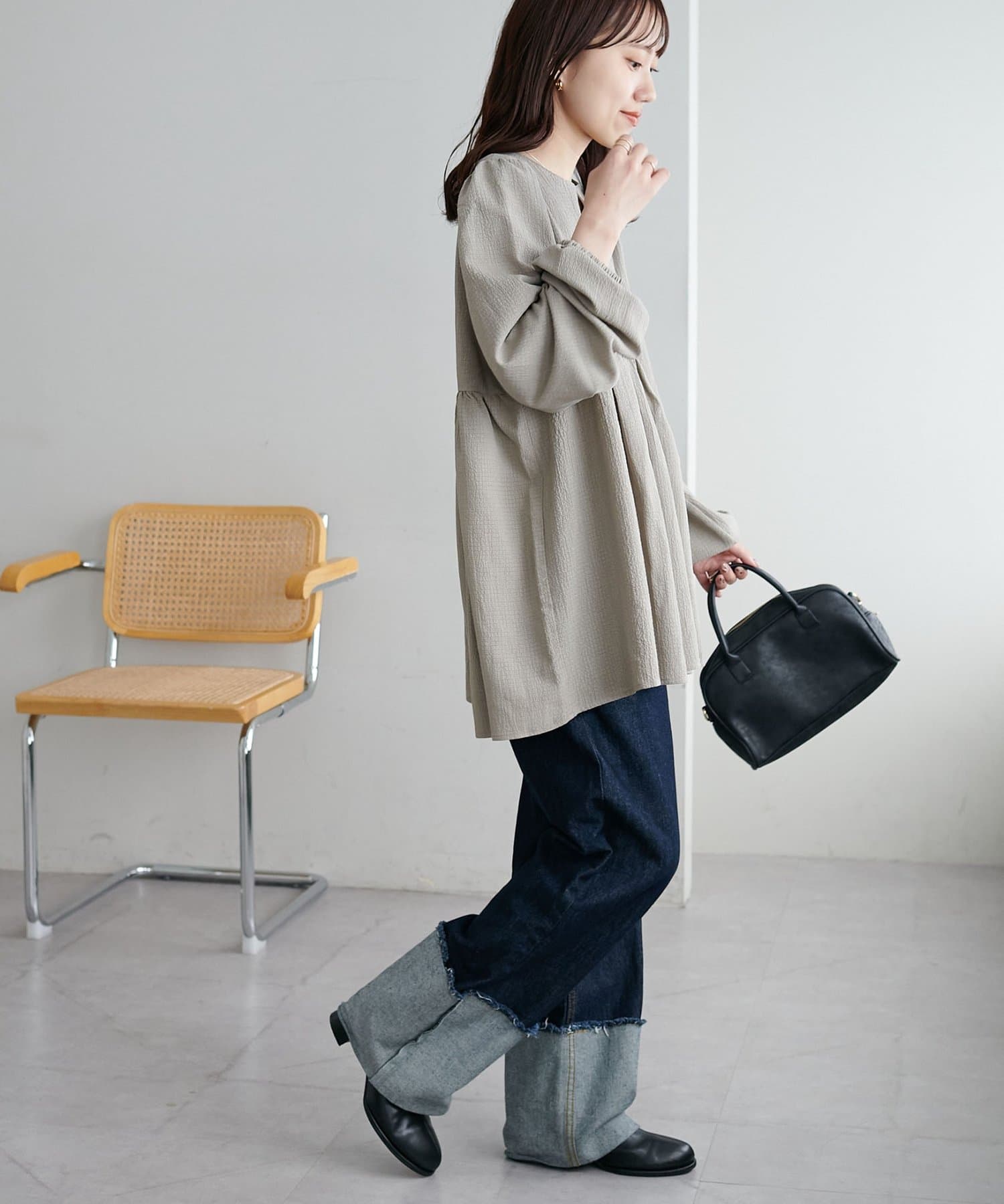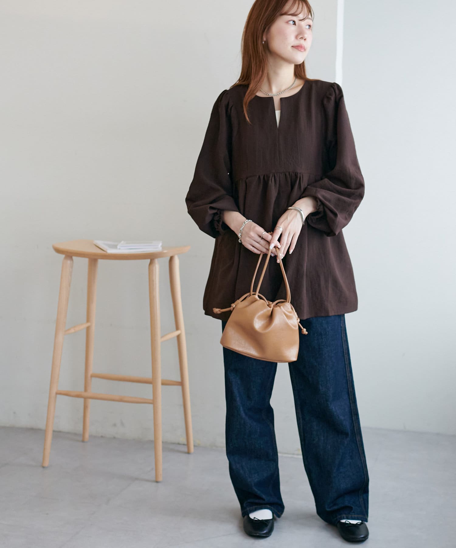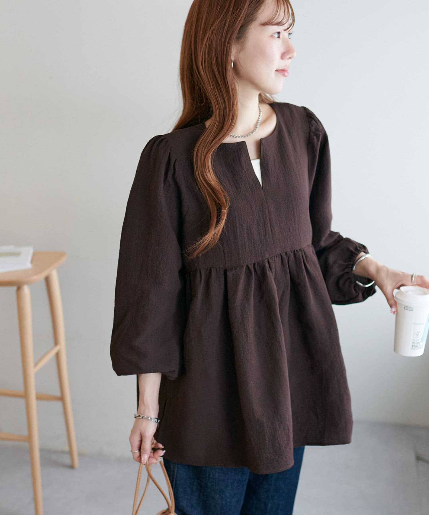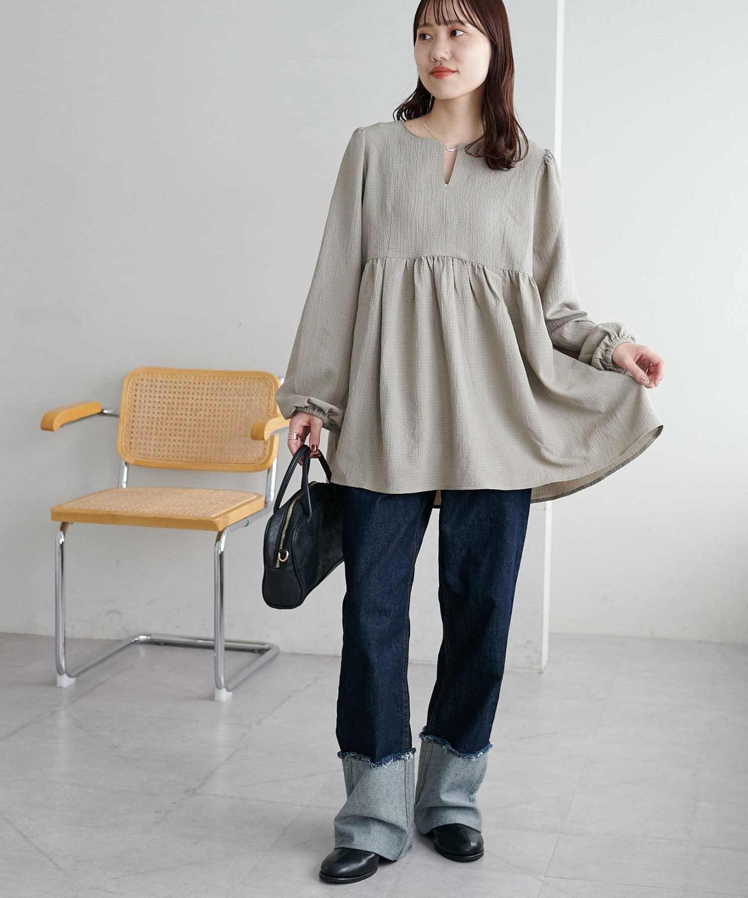 ふんわりシルエットで魅せる、大人フェミニンブラウス