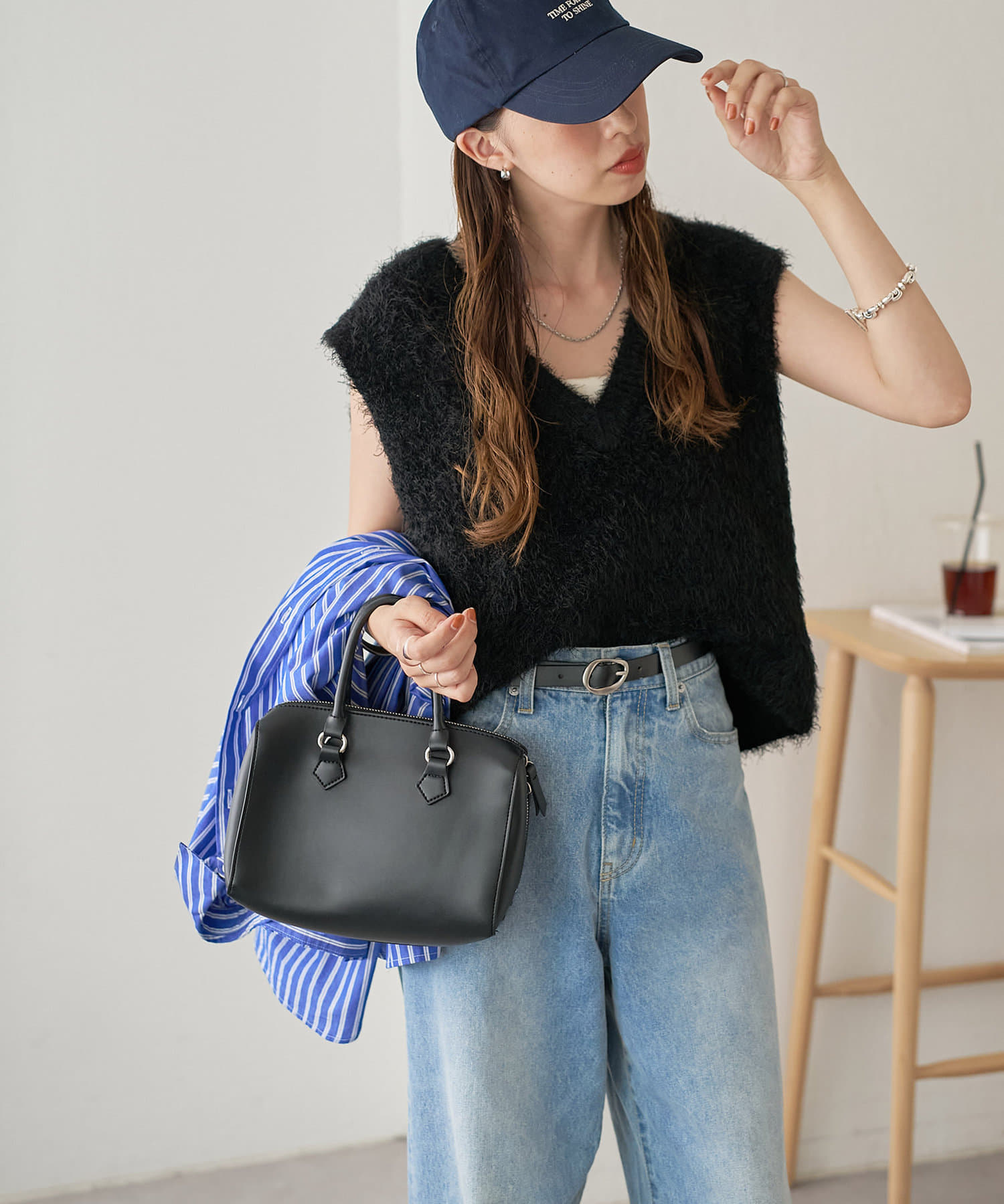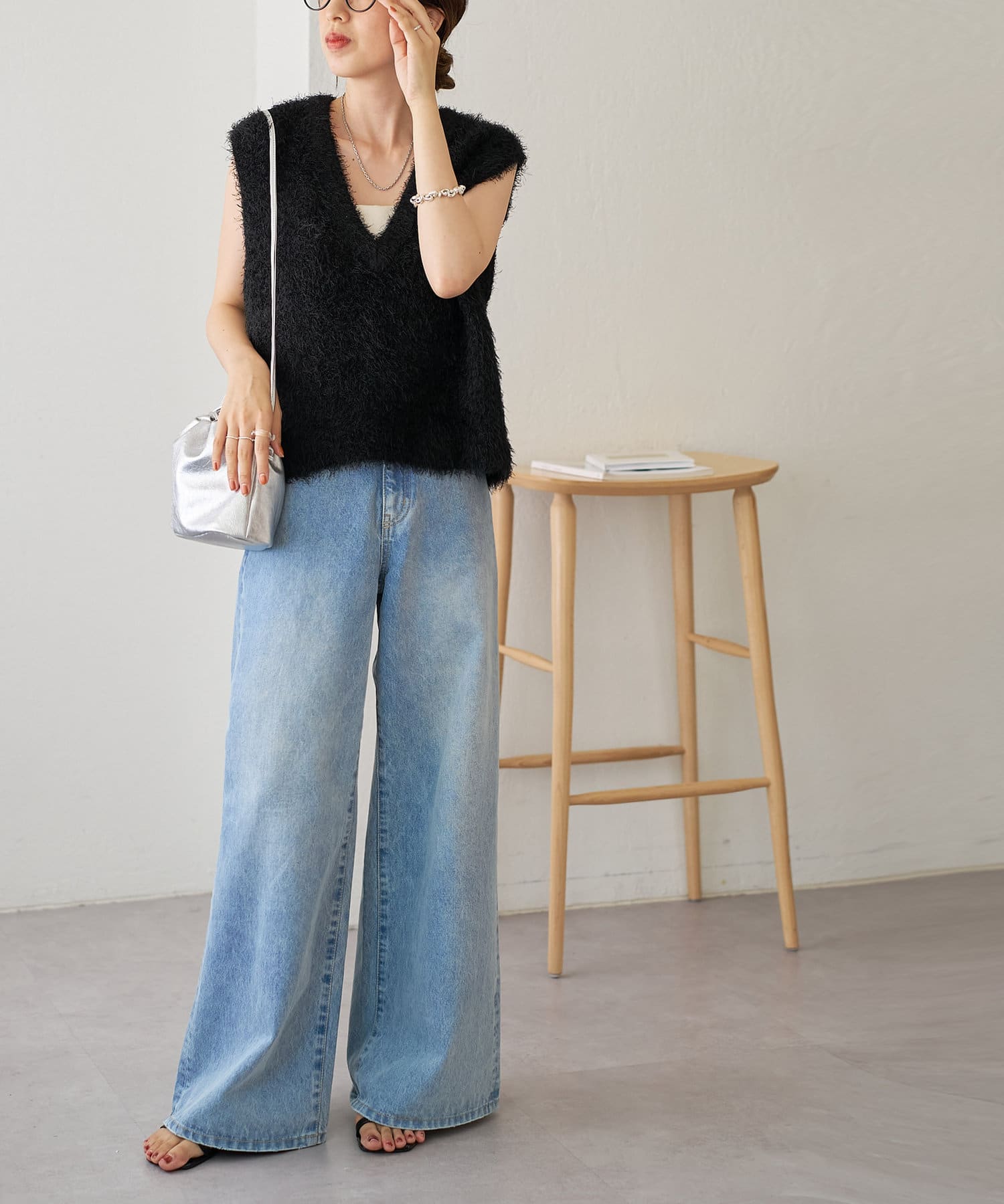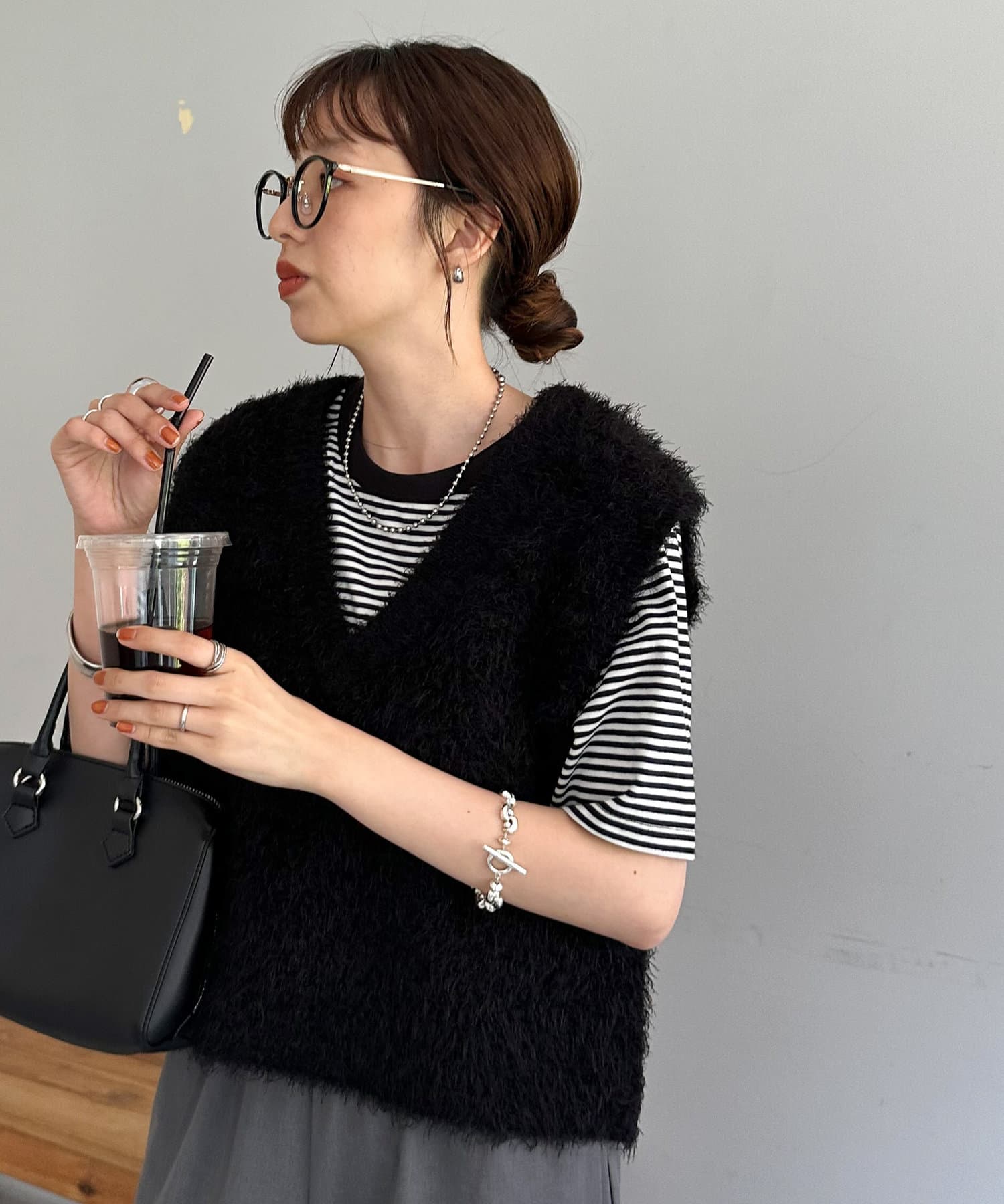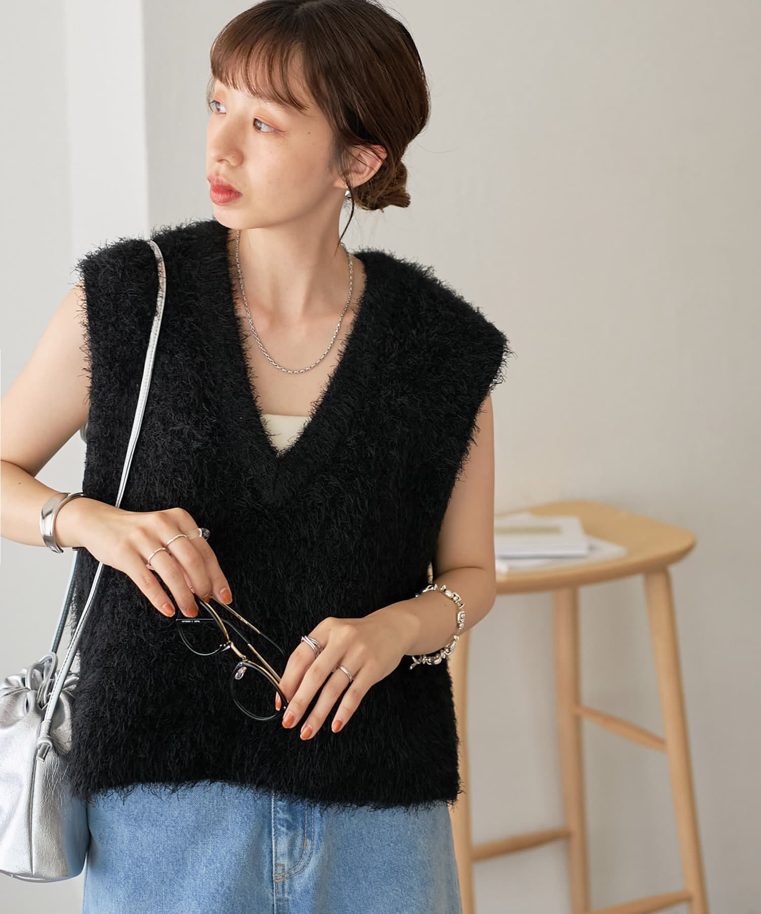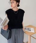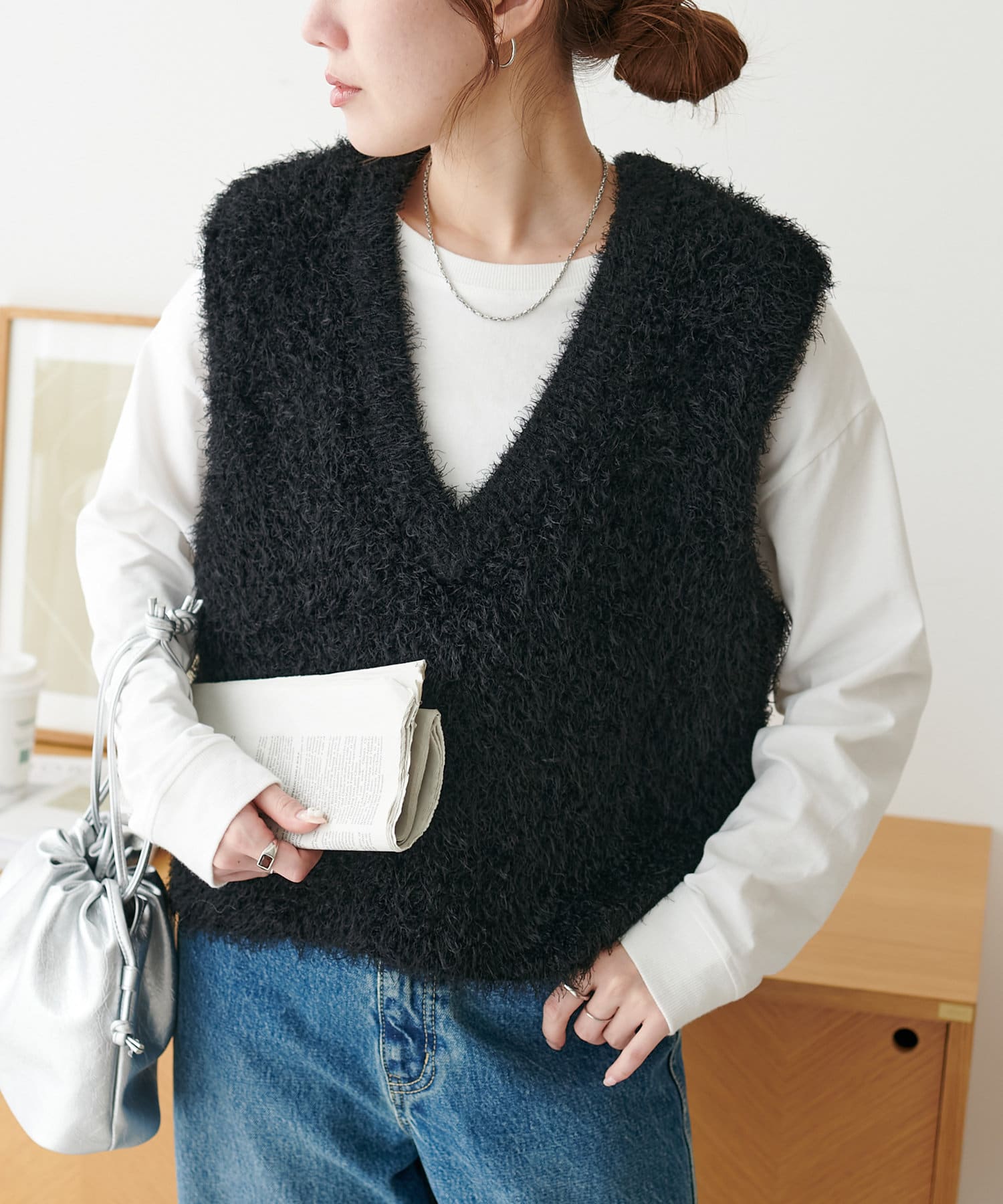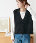 《オールシーズン対応/着回し◎》前後2WAYフェザーヤーンショート丈ベスト【着こなし動画あり】