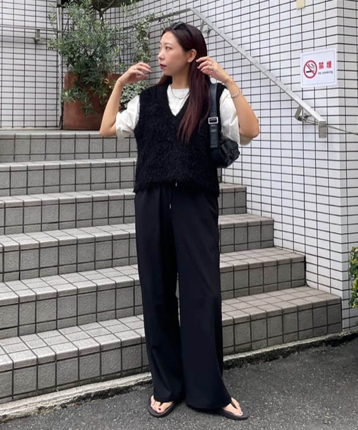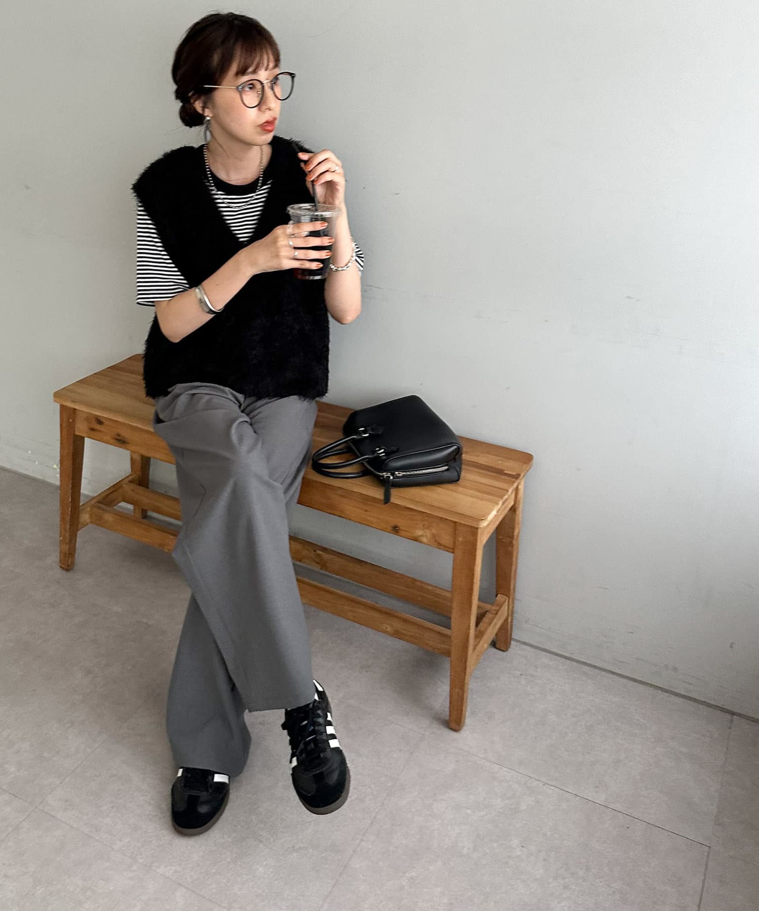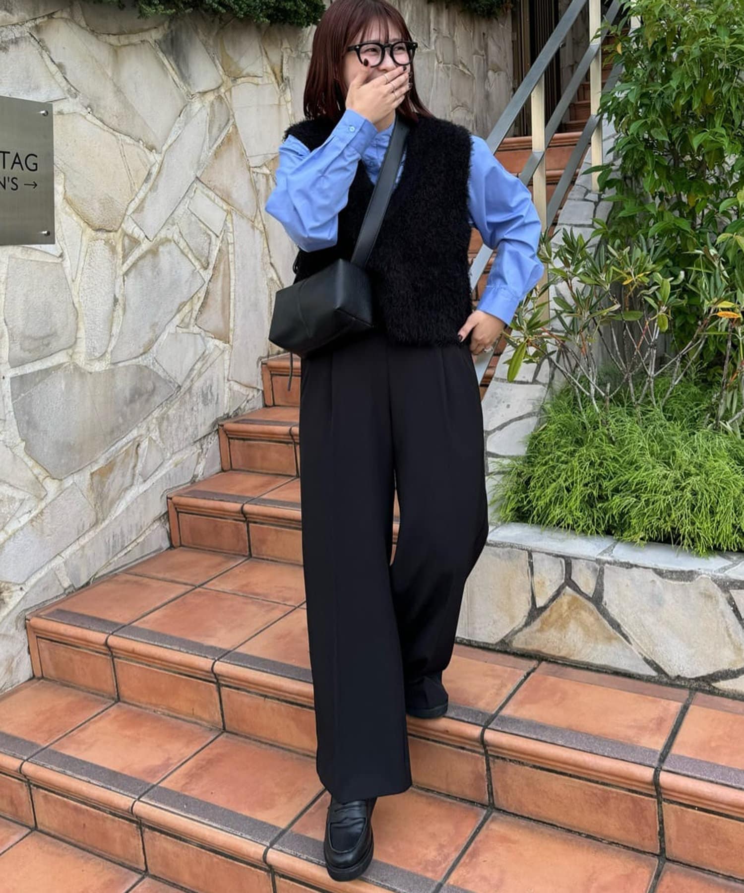 ベストの中に着る服やボトム次第でカジュアルにもキレイめにも見えるかなと思うので、着回し力抜群だと思います。