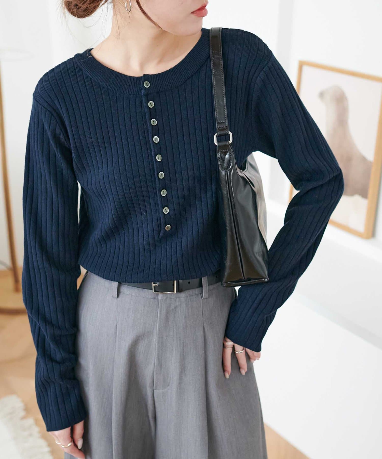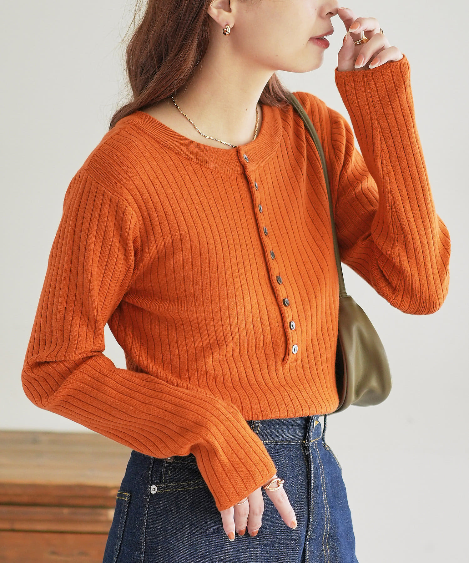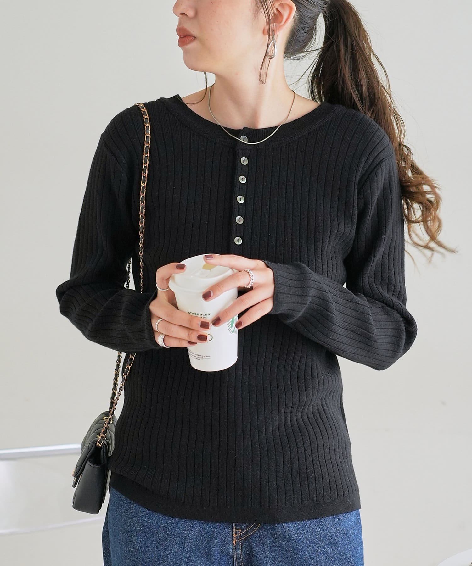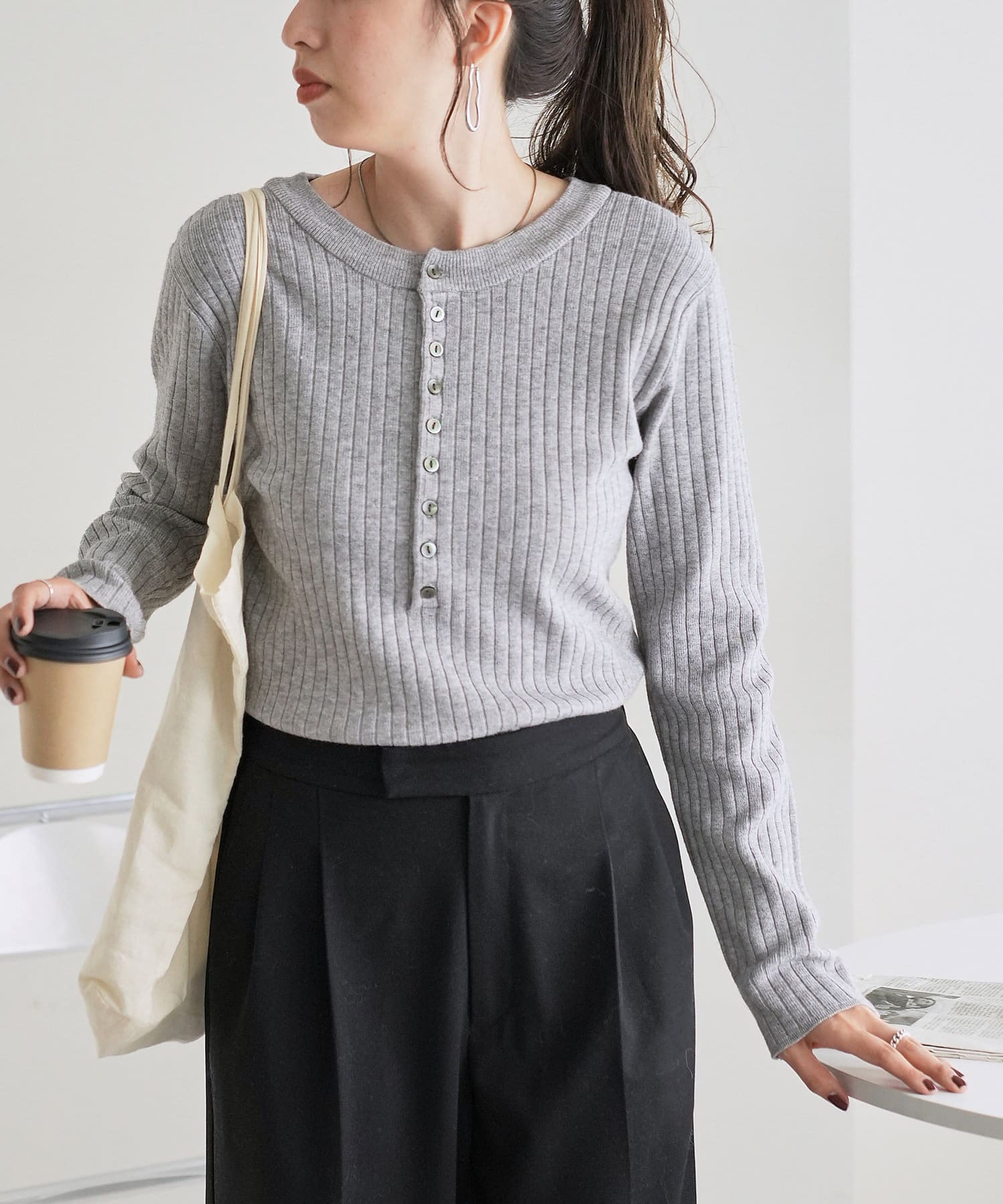 【WEB限定】リブ2WAY多釦プルオーバー