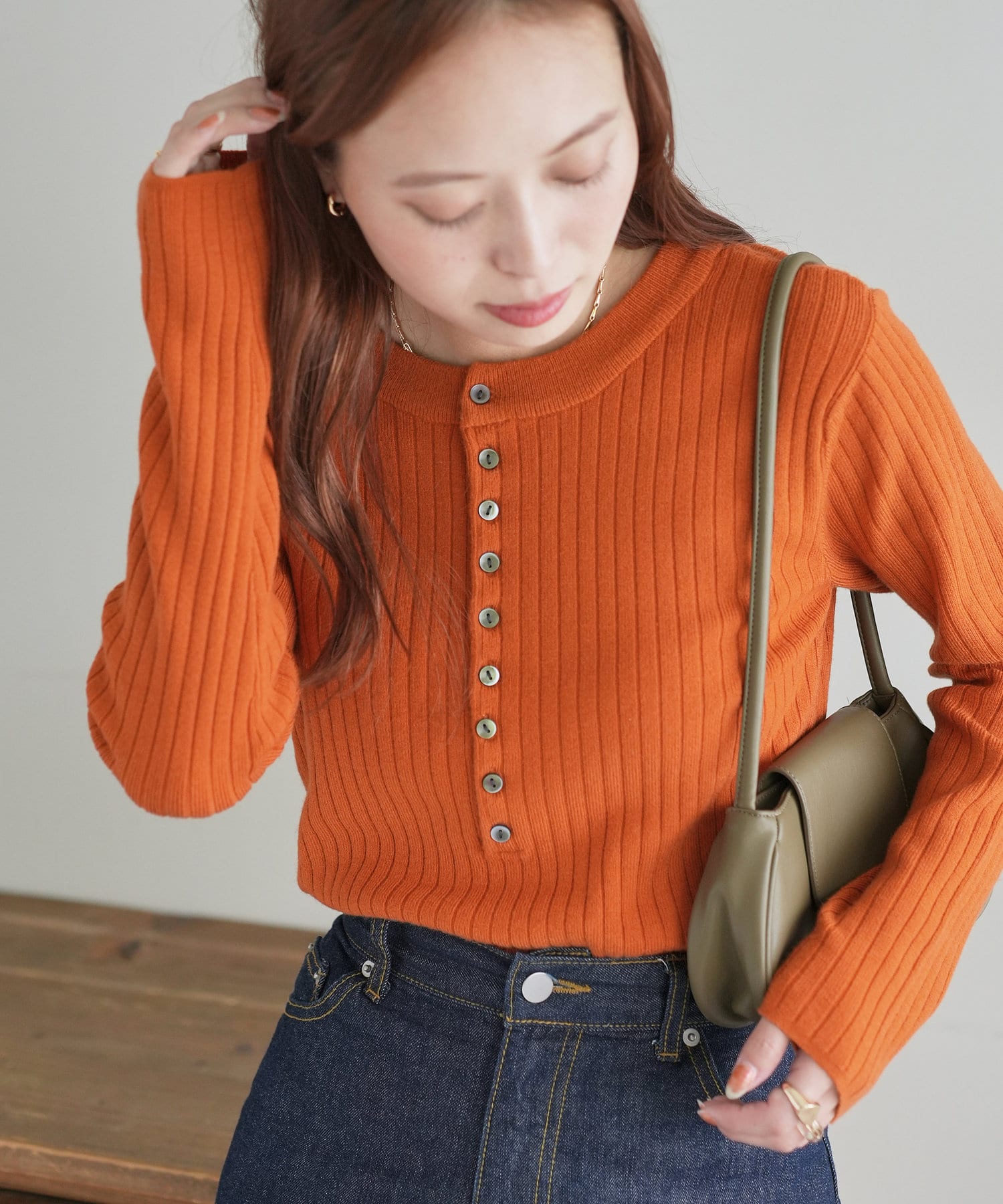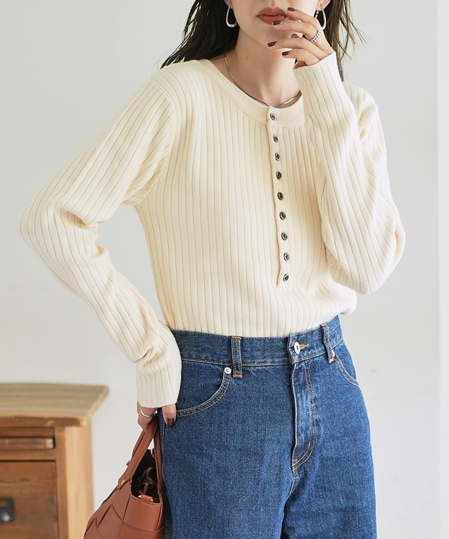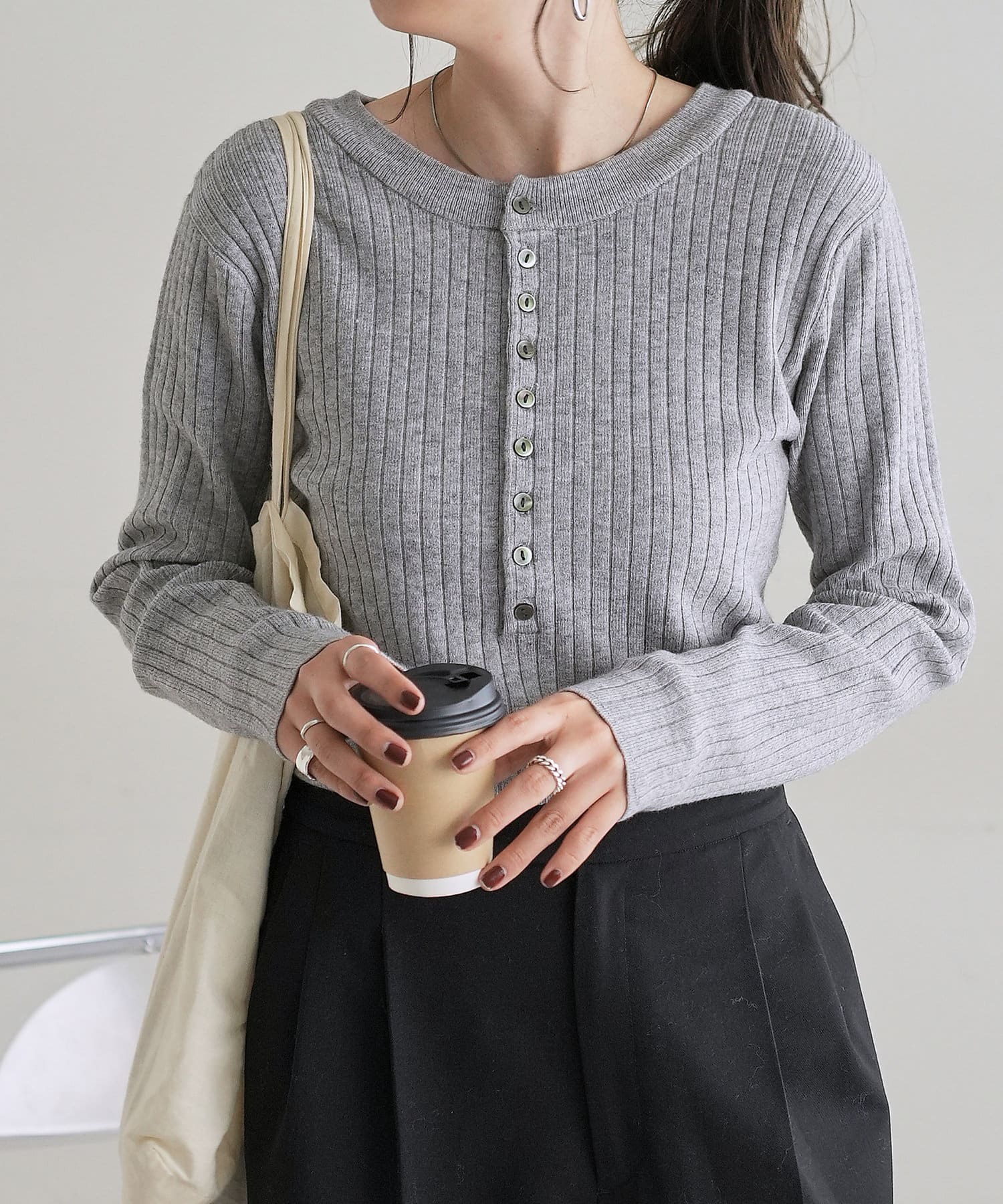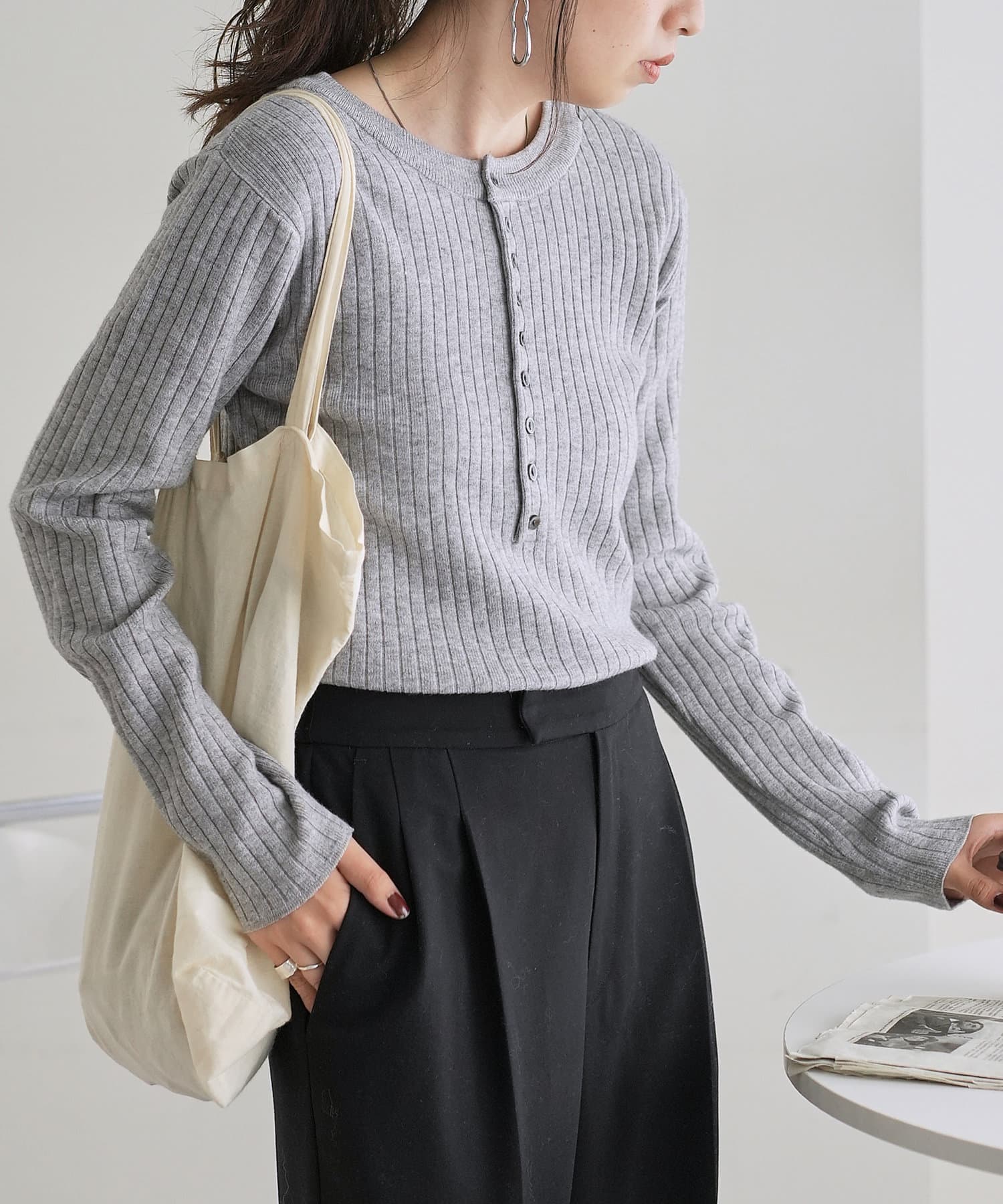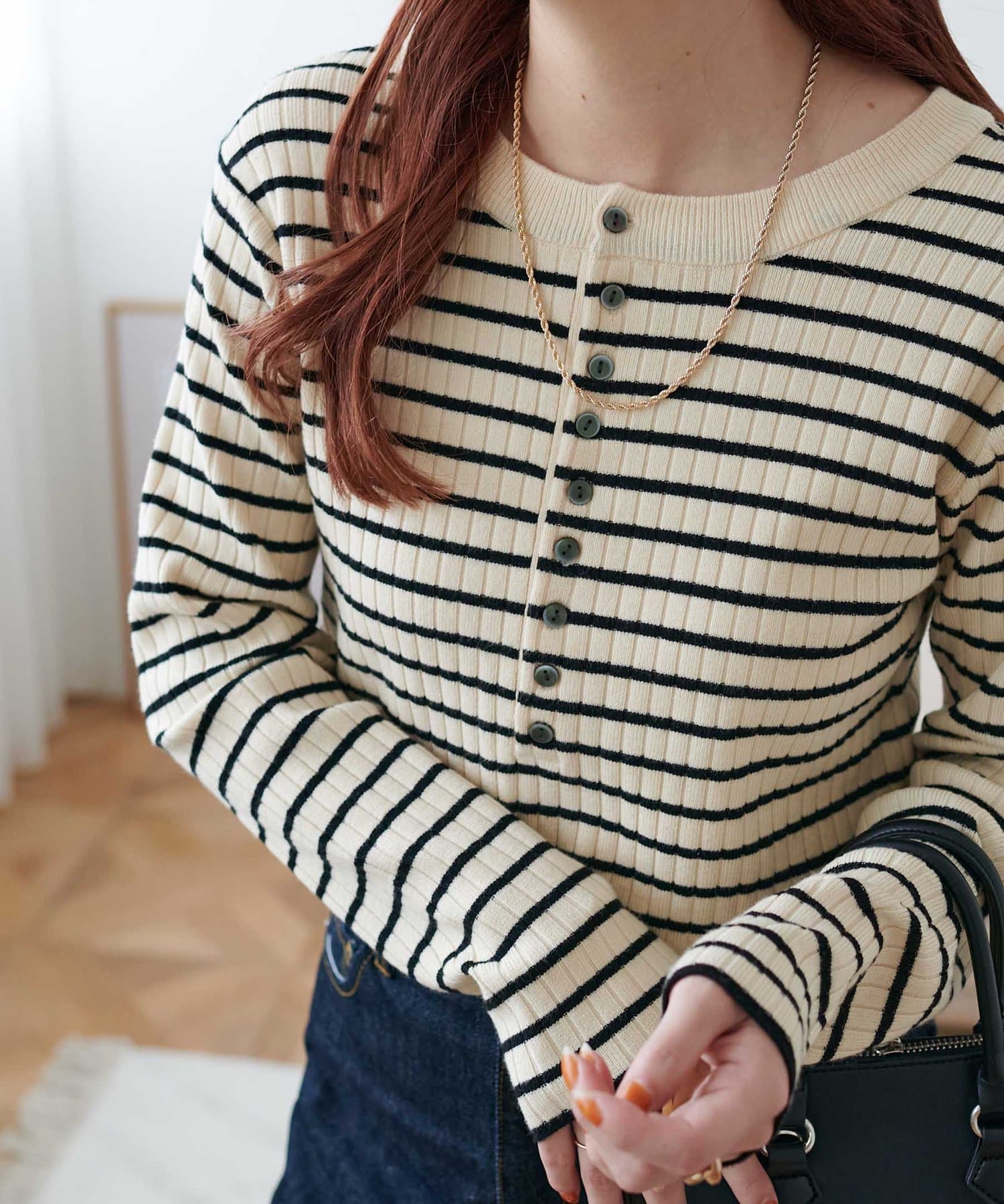 【WEB限定】リブ2WAY多釦プルオーバー
