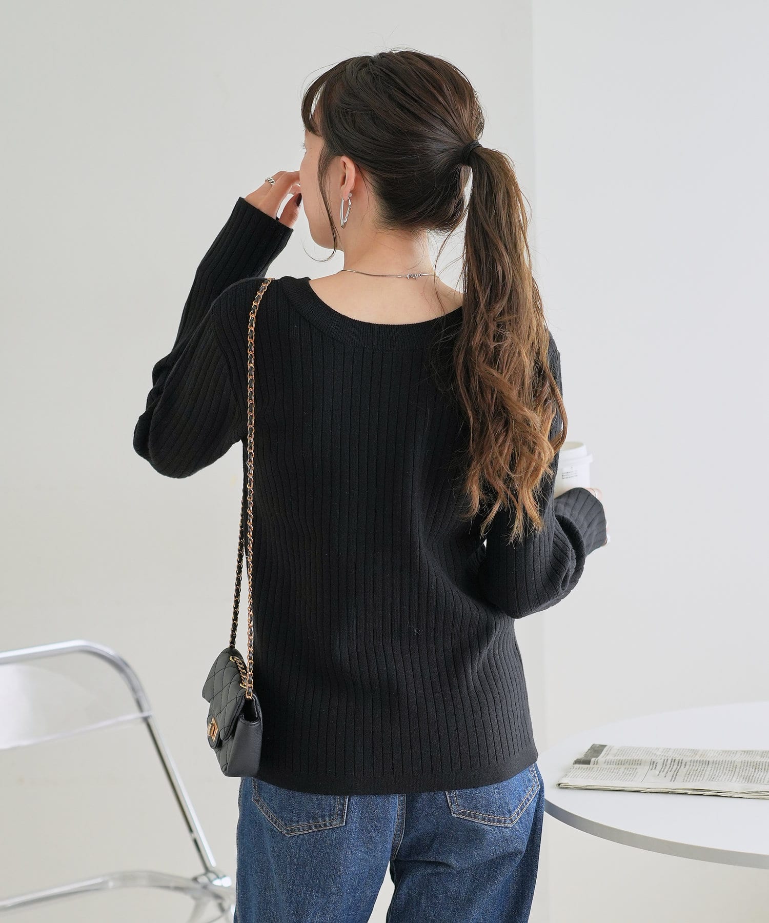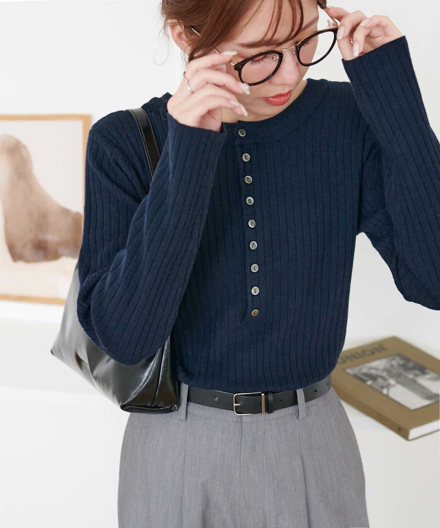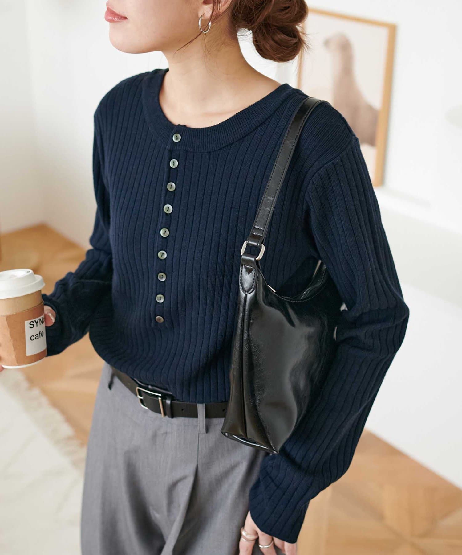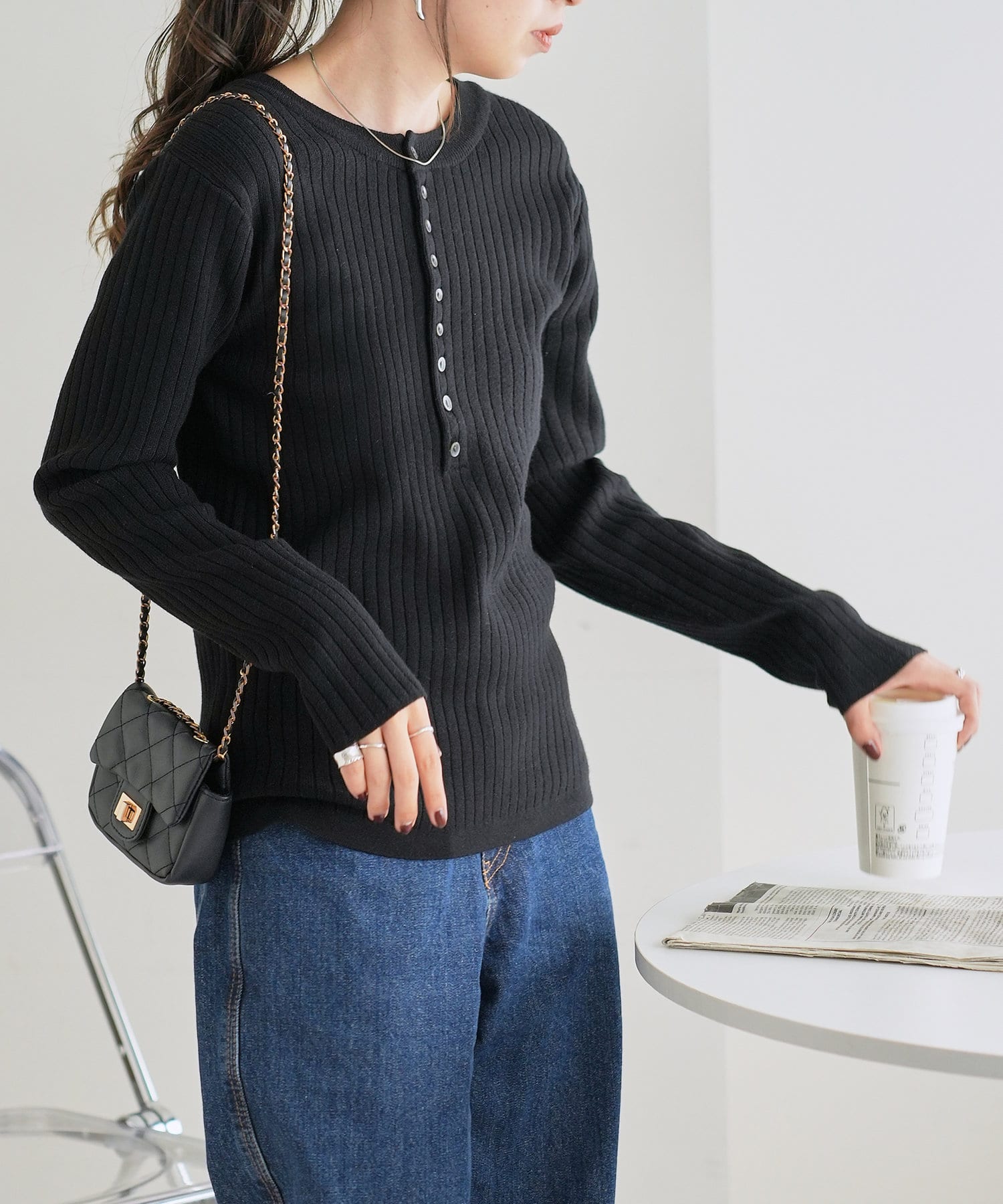 【WEB限定】リブ2WAY多釦プルオーバー