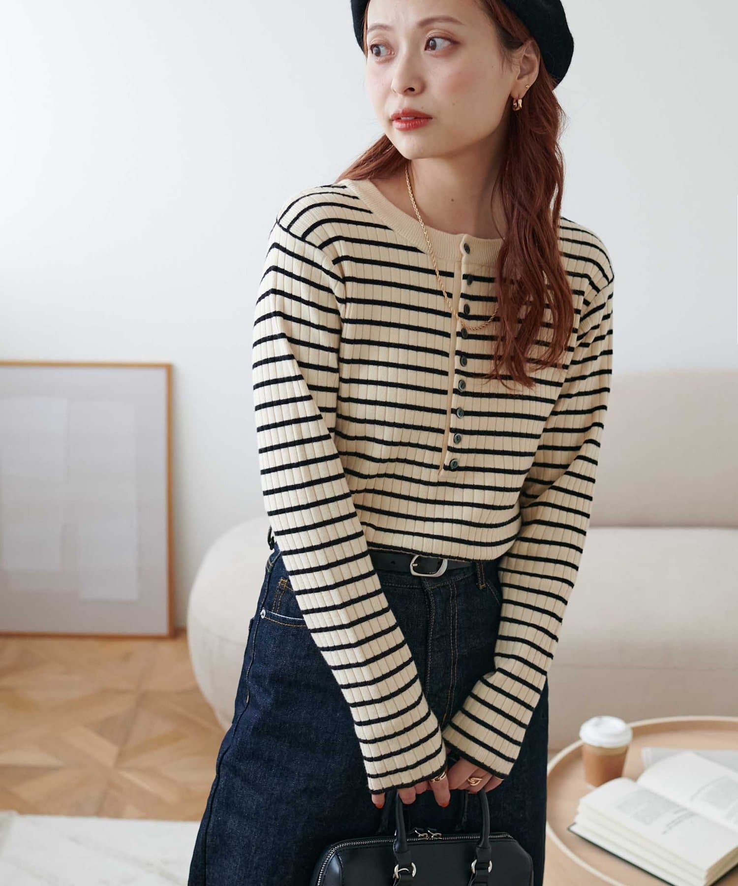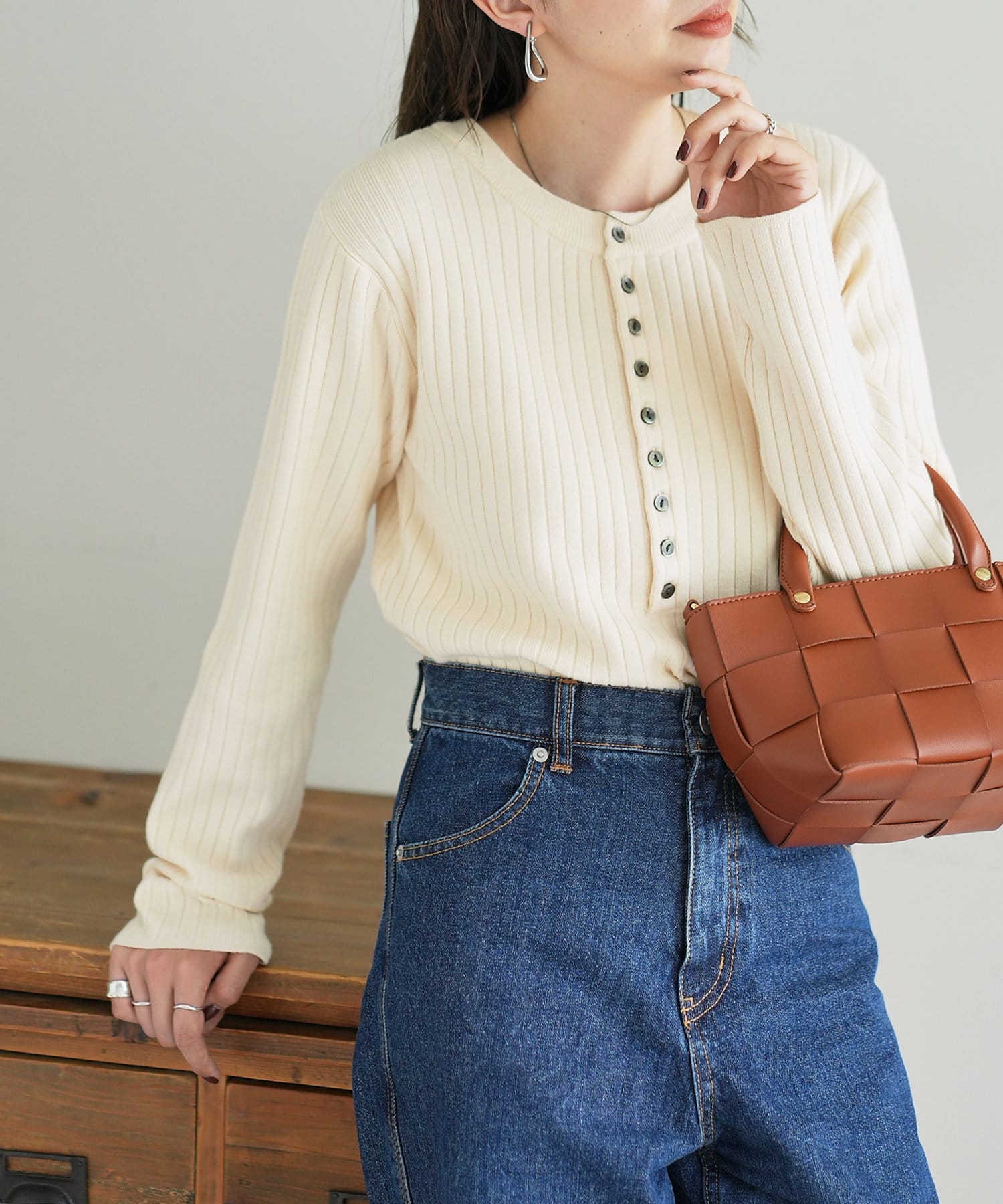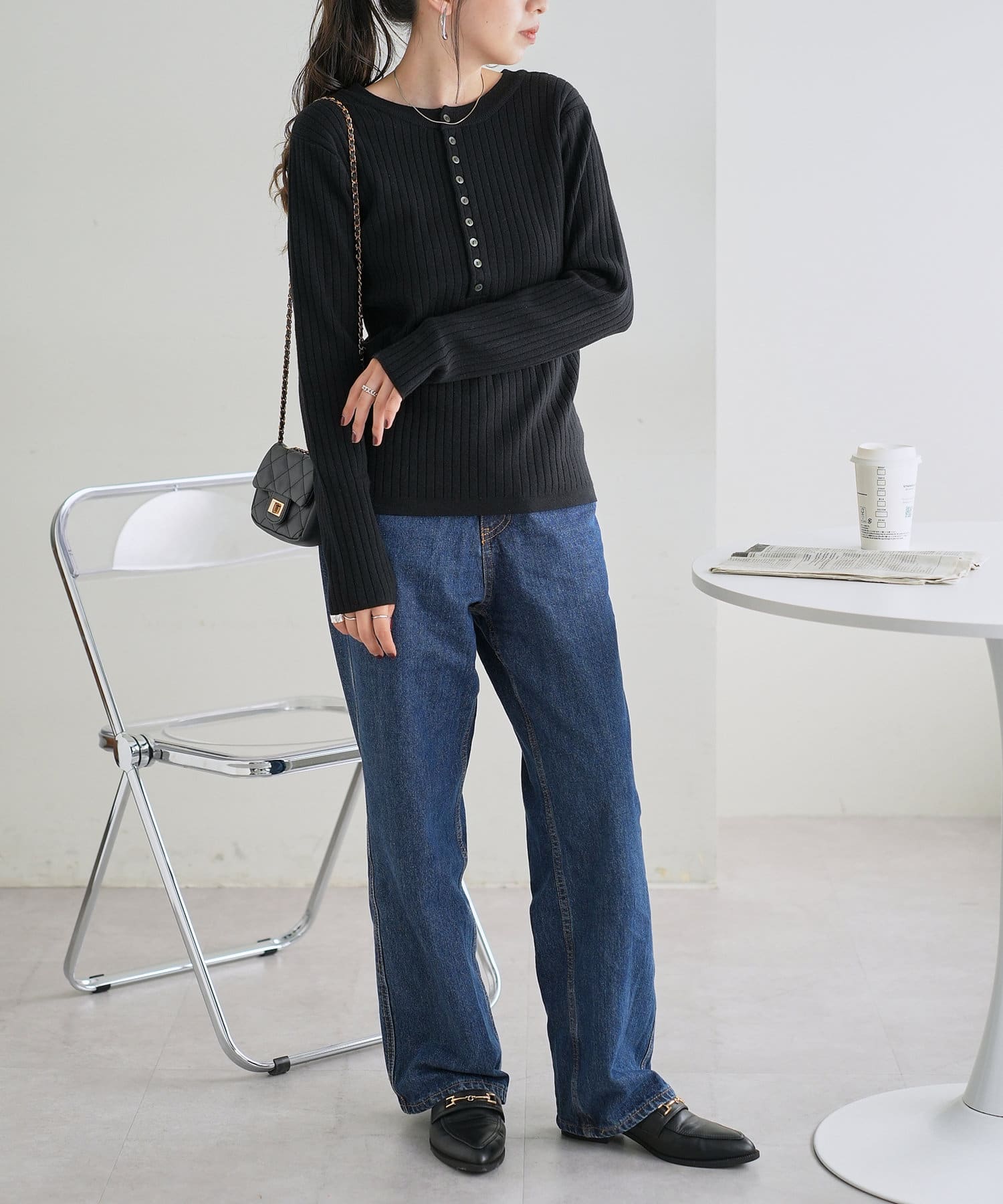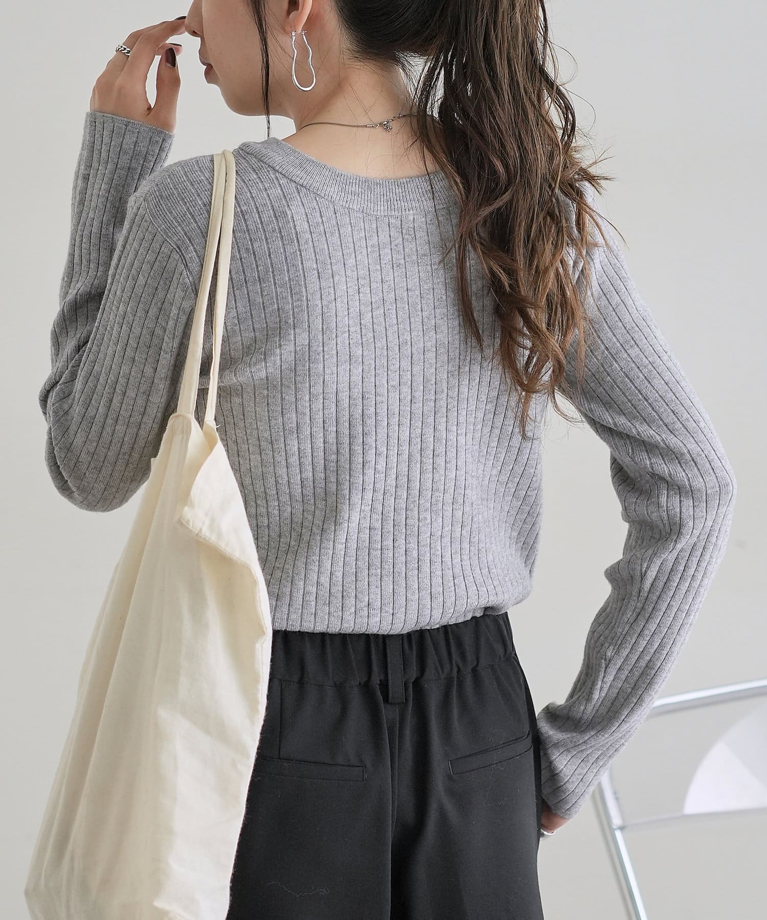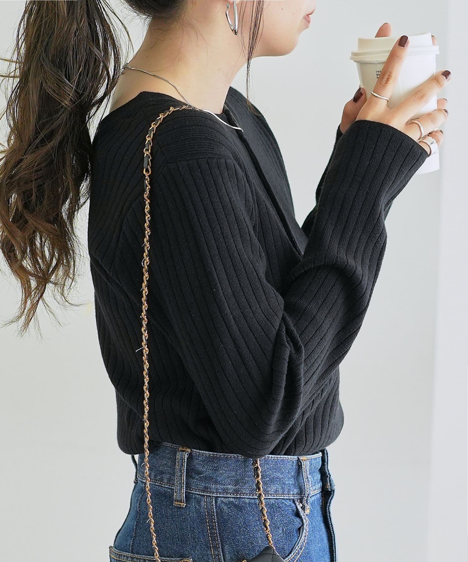 【WEB限定】リブ2WAY多釦プルオーバー