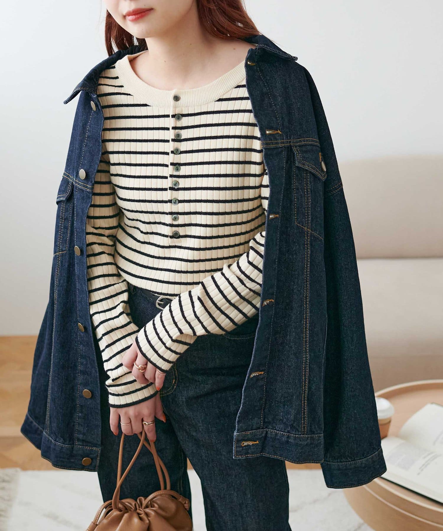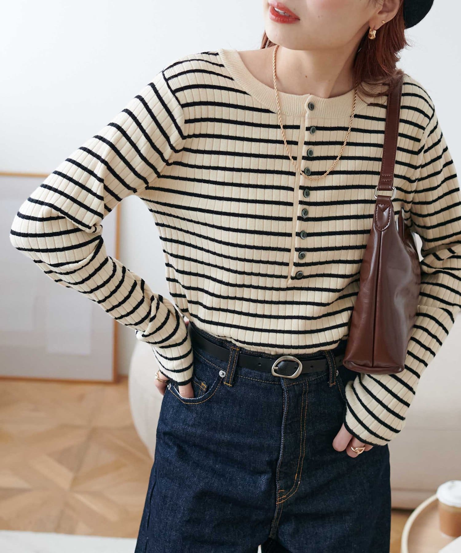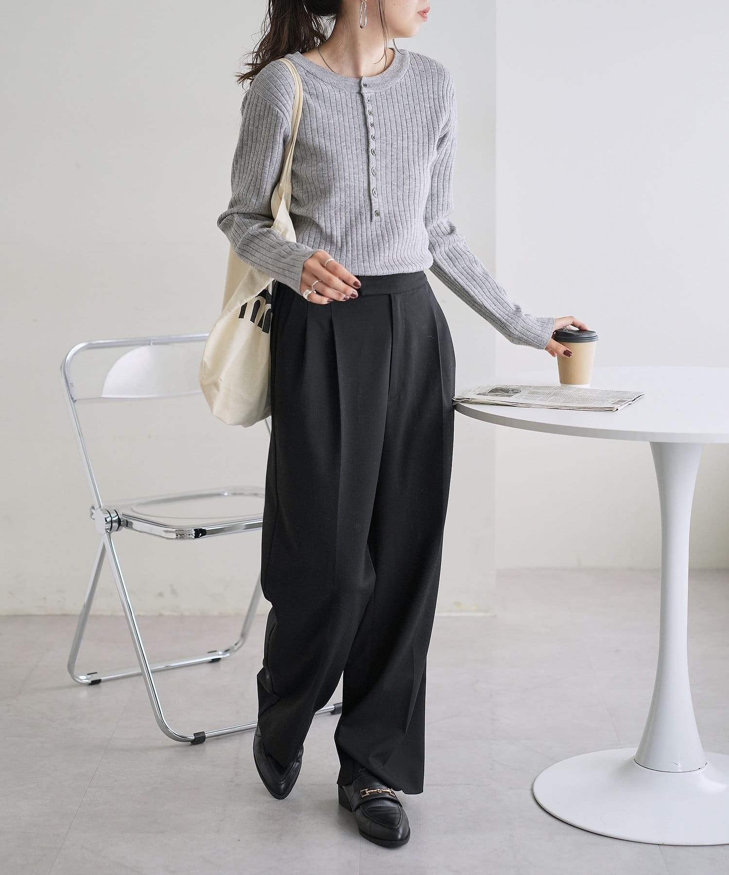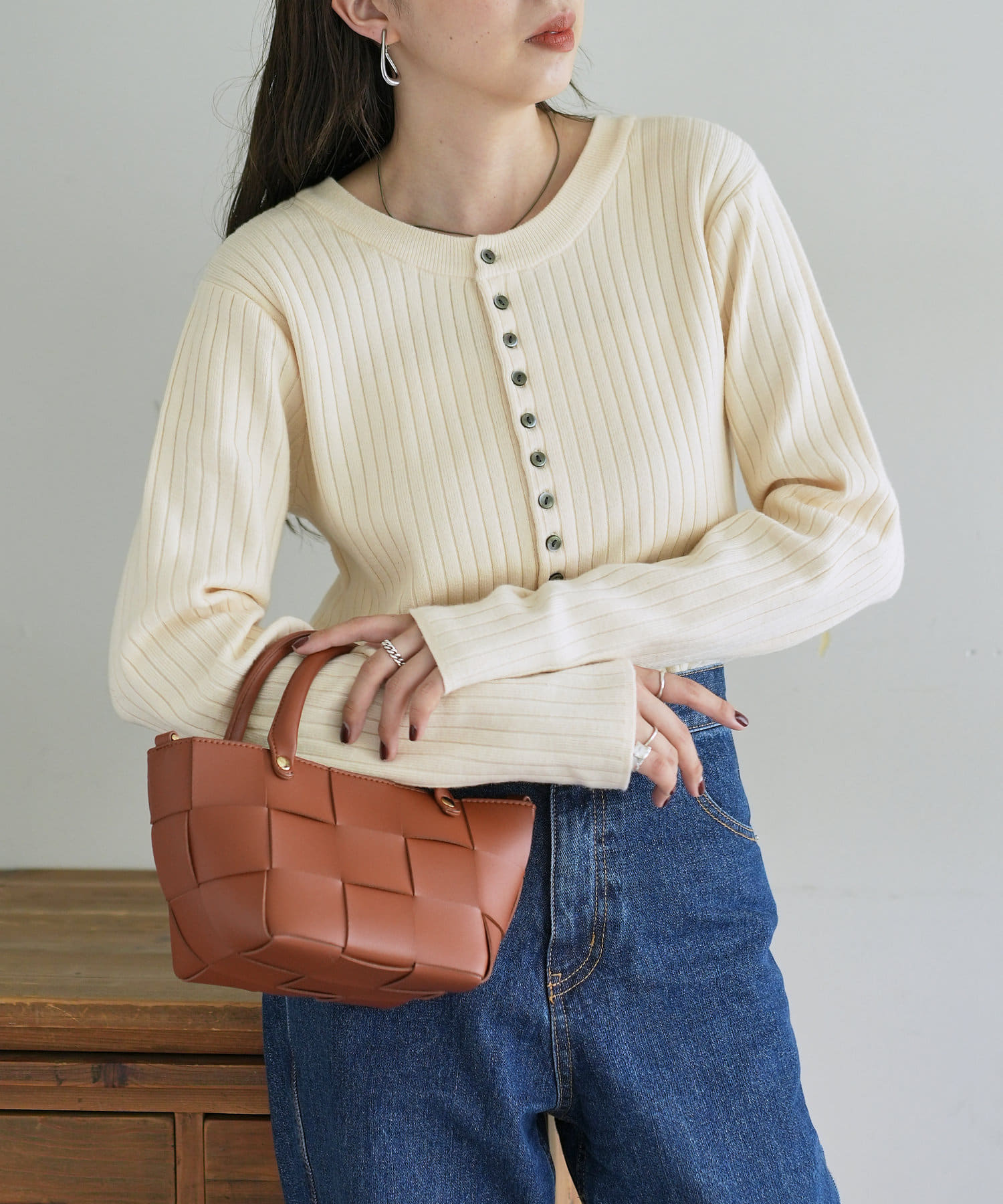 【WEB限定】リブ2WAY多釦プルオーバー