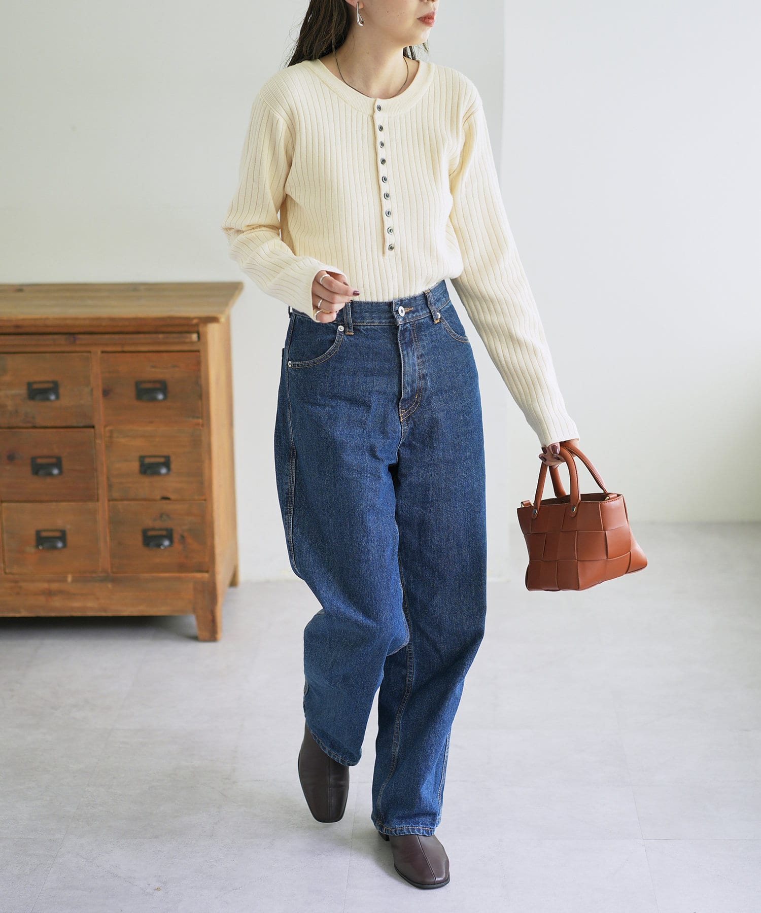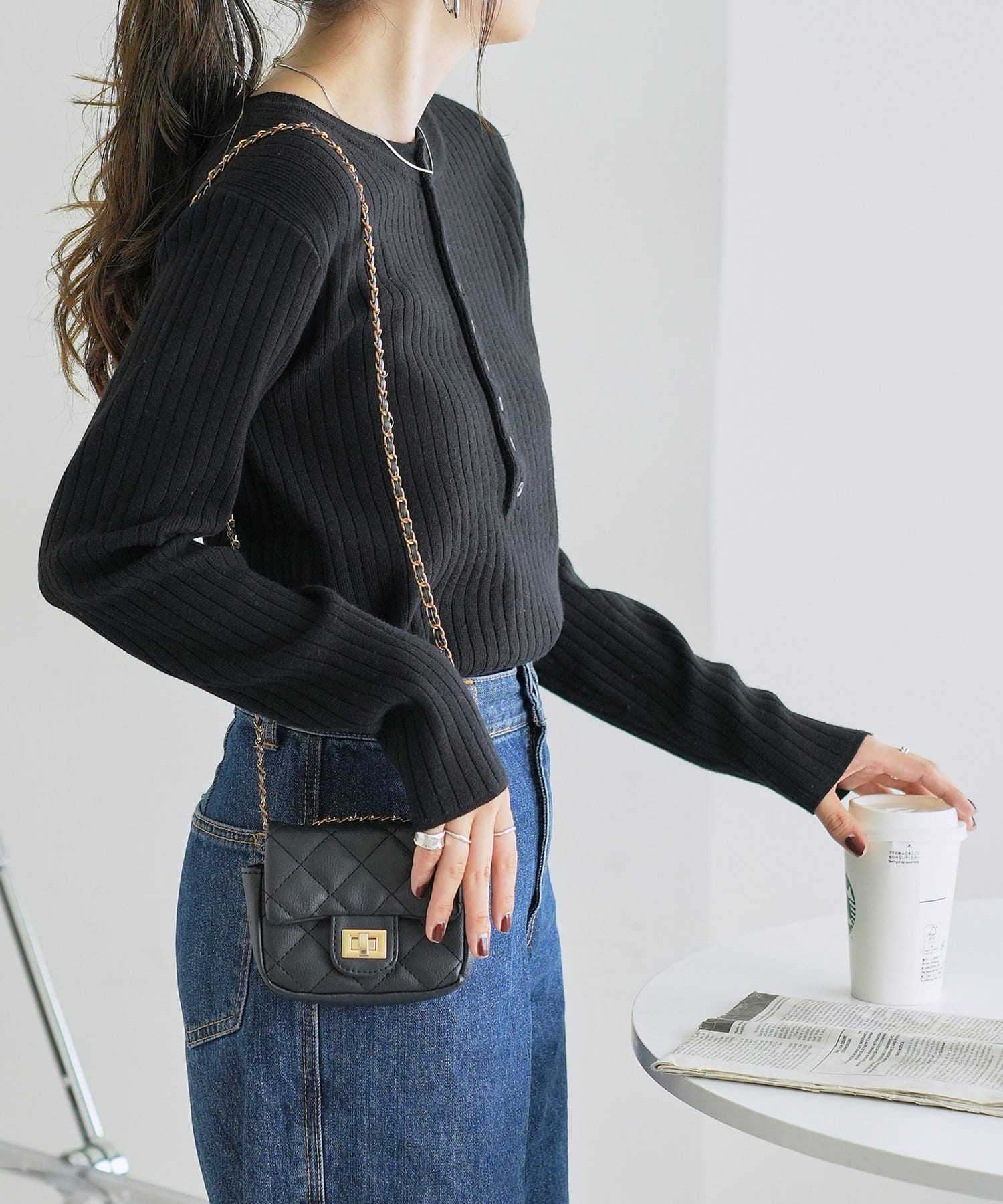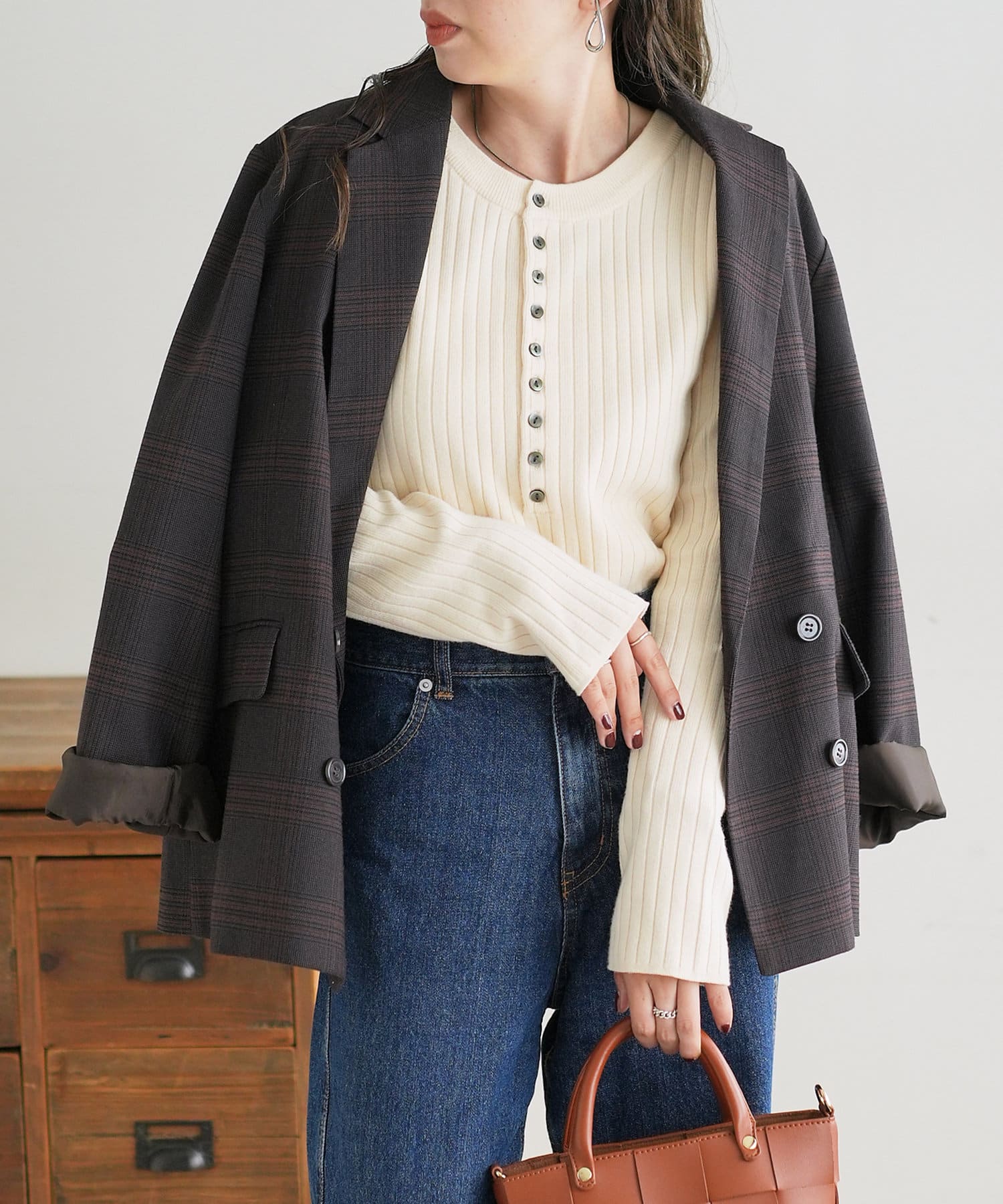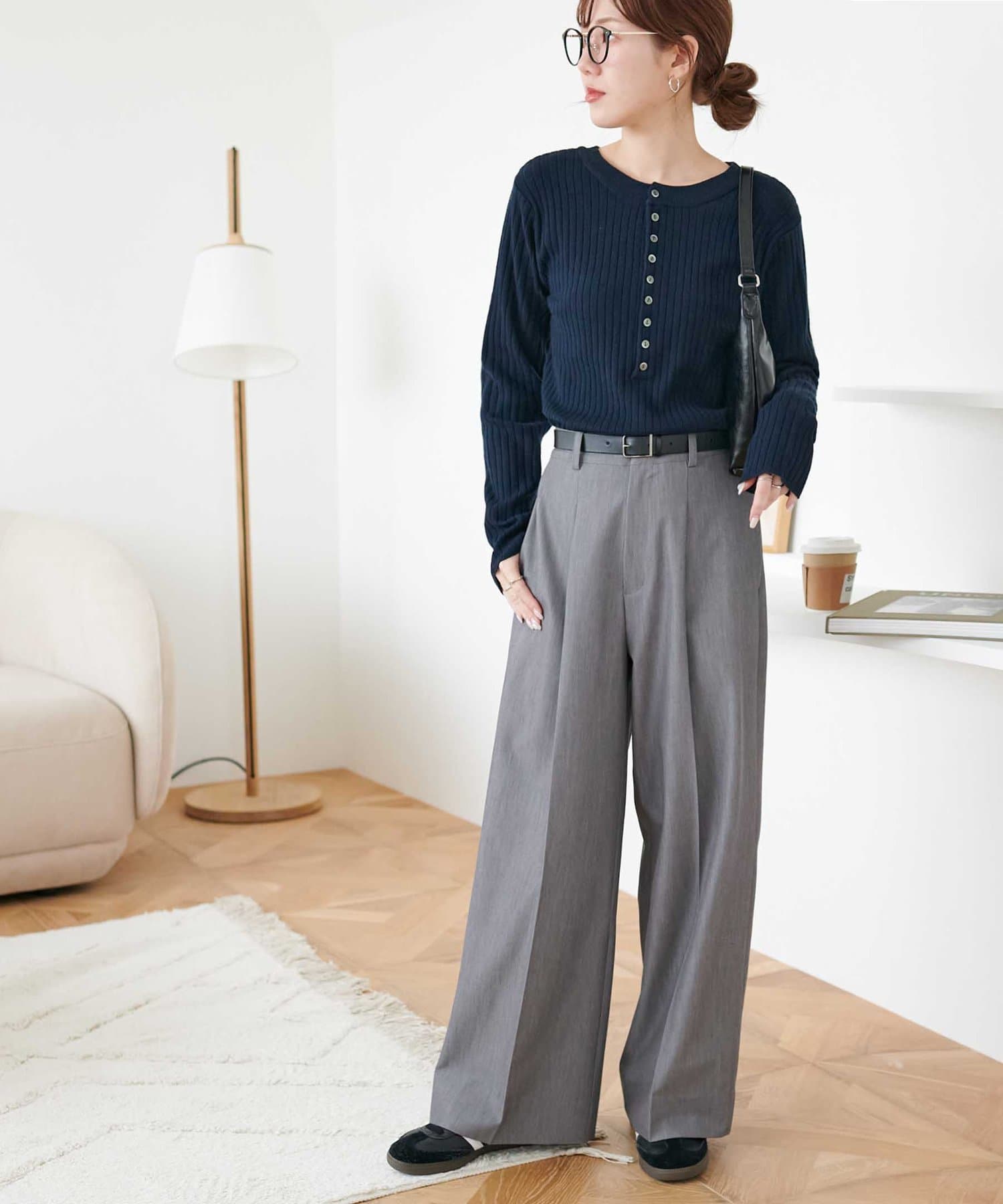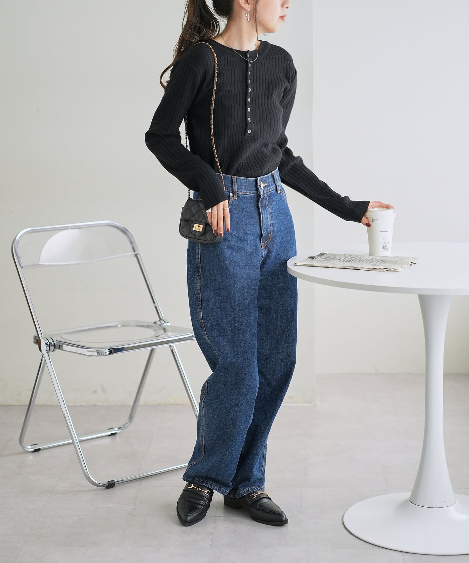 【WEB限定】リブ2WAY多釦プルオーバー