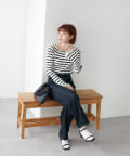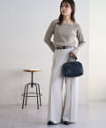 ・159cmスタッフ(Mサイズ着用):袖のフレアもスクエアネックもシルエットが綺麗で着るだけでスタイルアップして見えます♪シンプルなのでどんなコーディネートにも合わせやすく着回し万能なプルオーバー。
