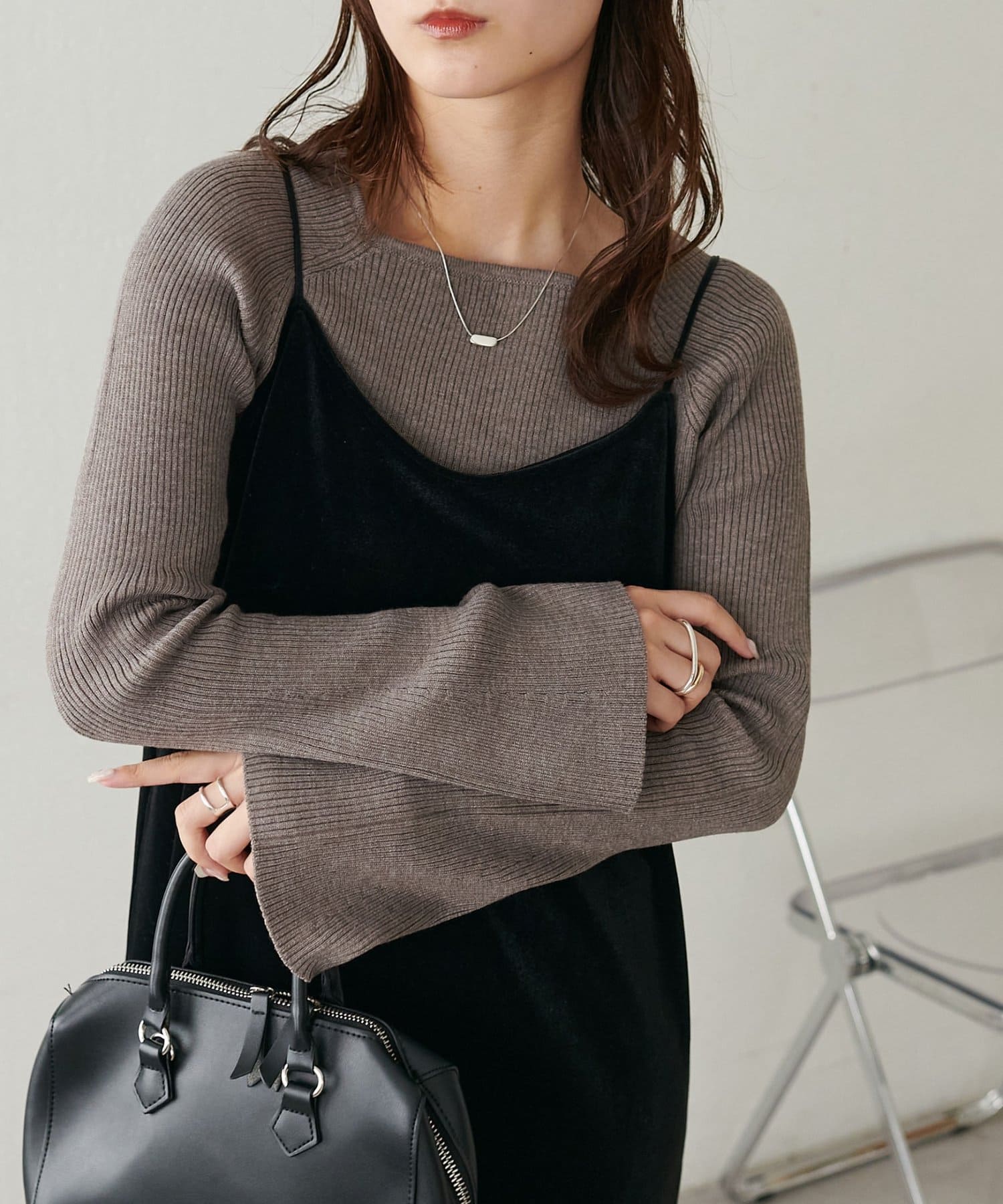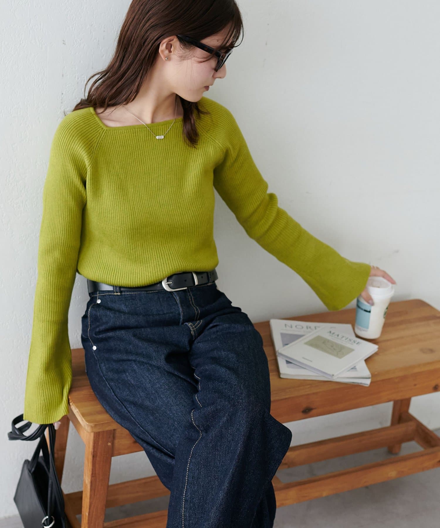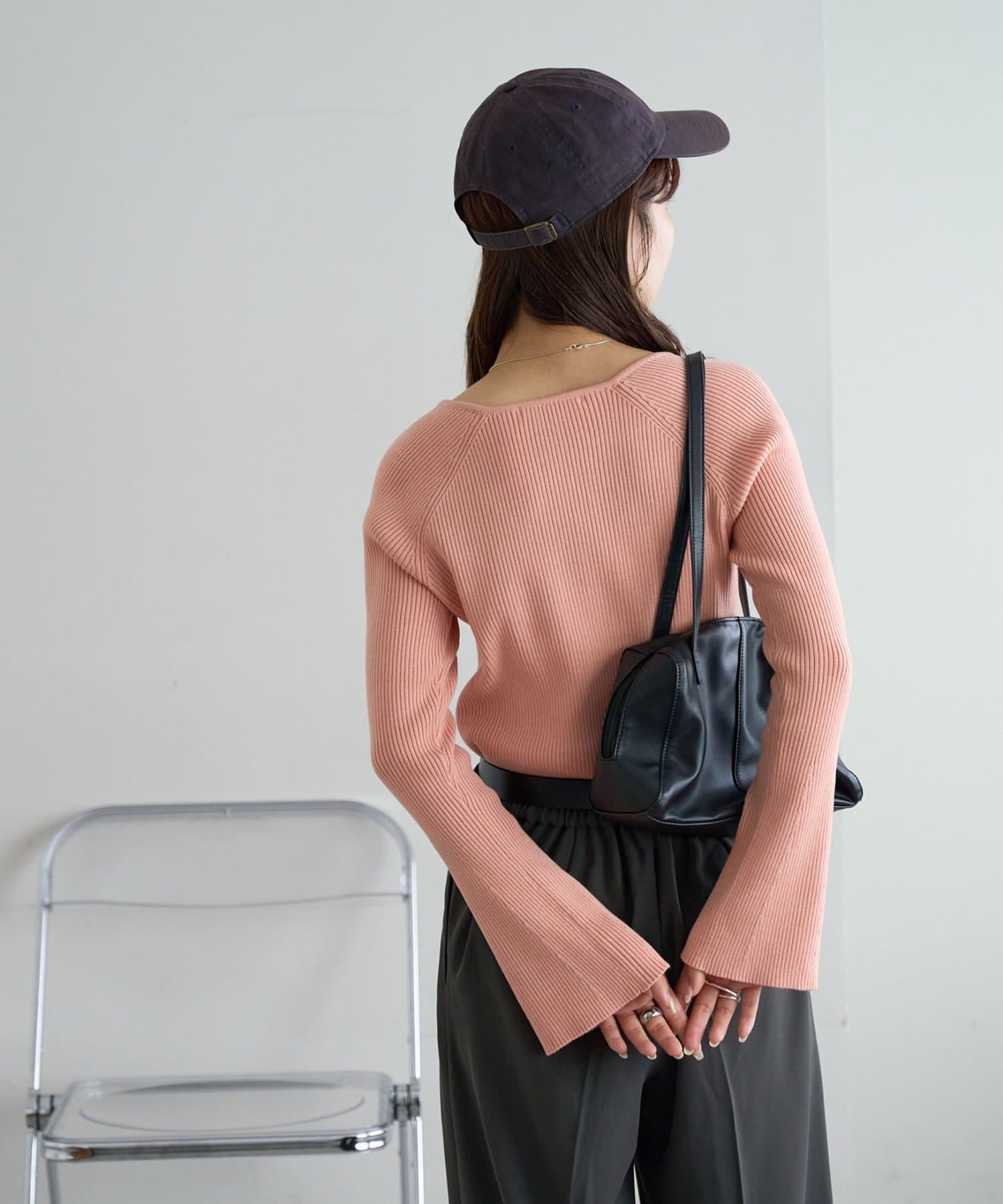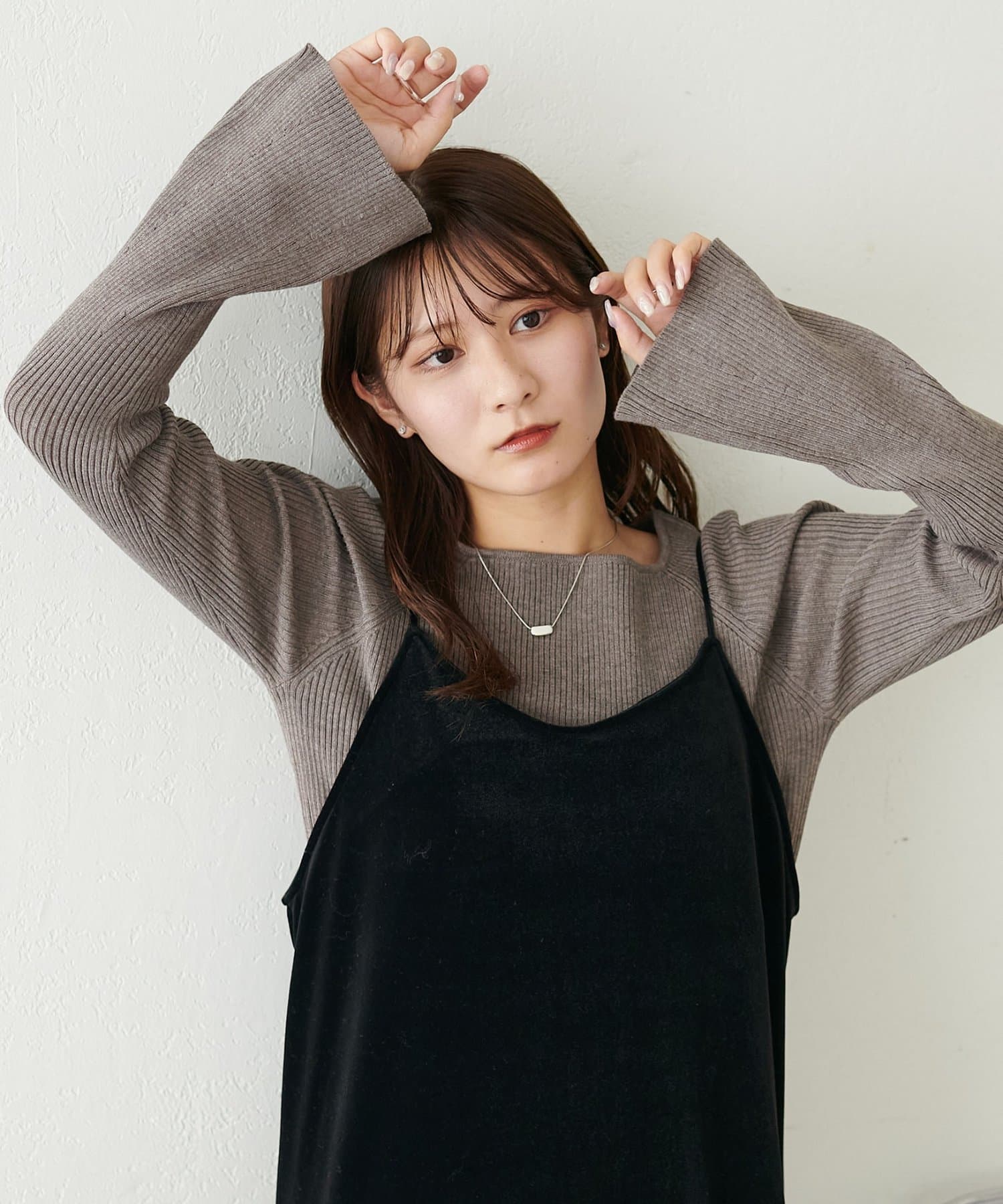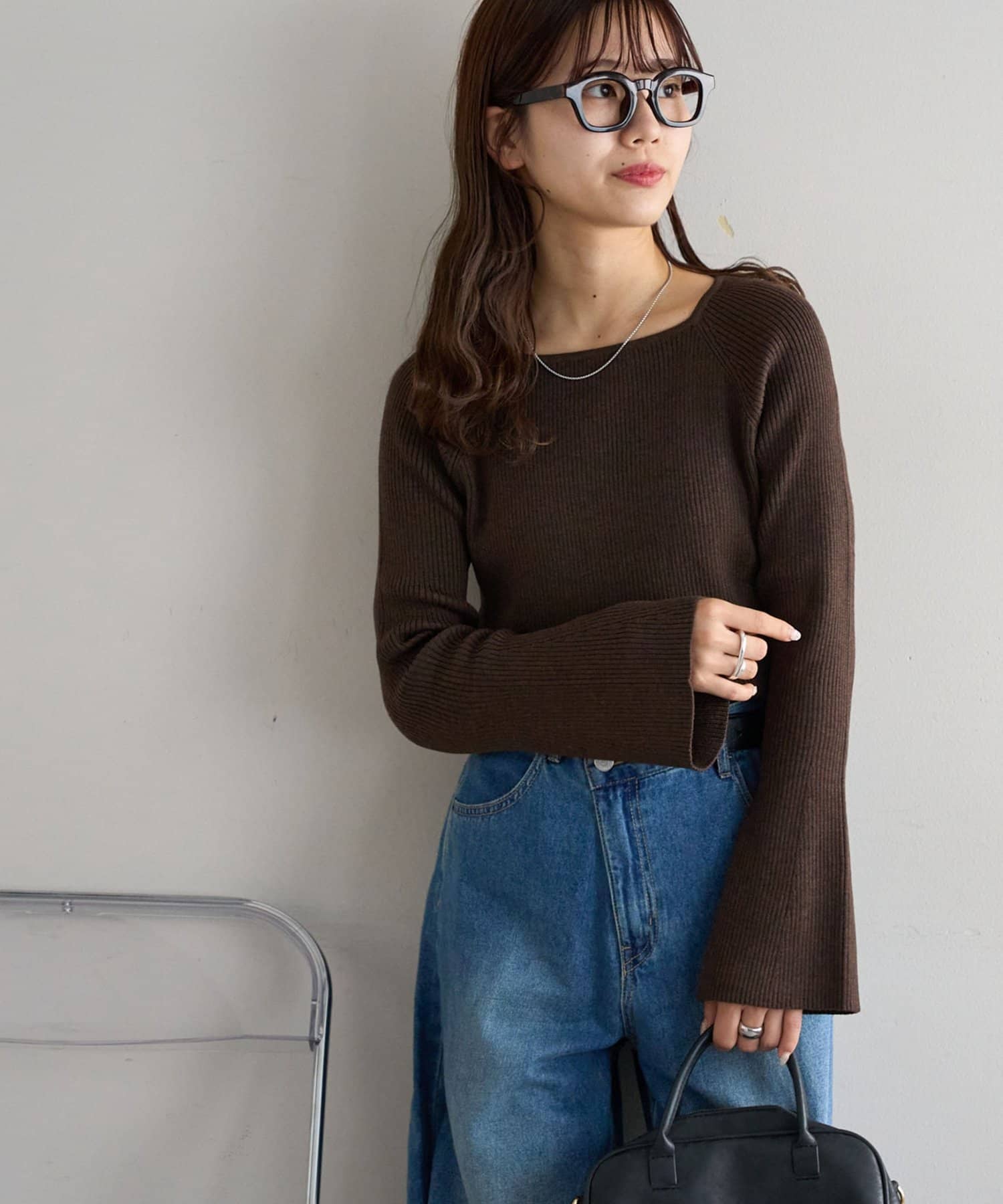 柔らかく伸縮性のある着心地のいいリブニット。袖口部分はフレアデザインなので1枚着でも様になります♪