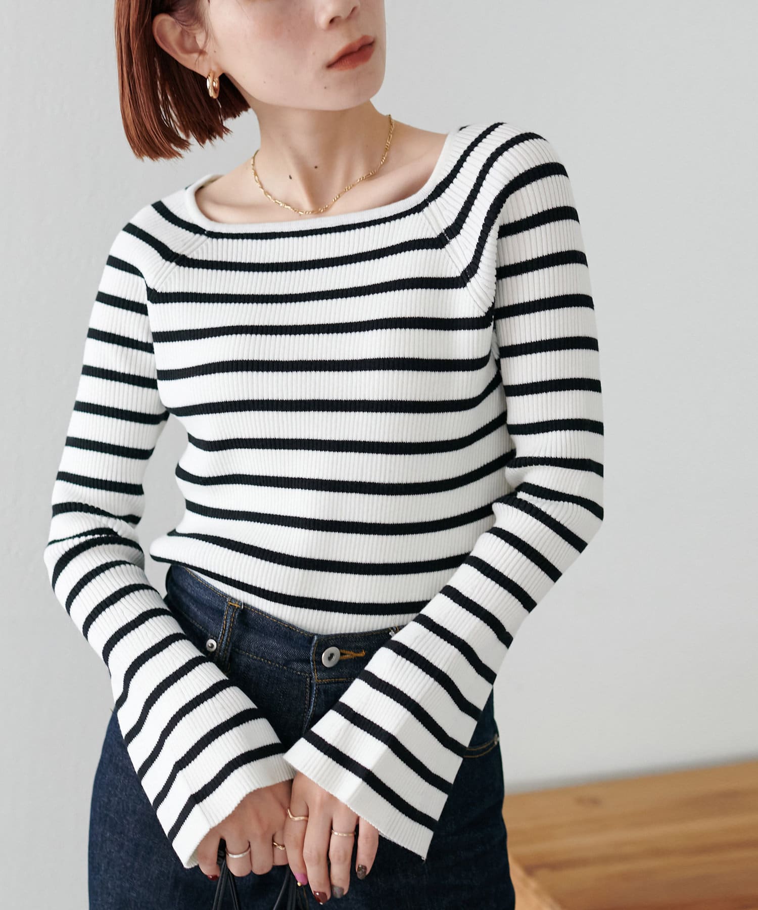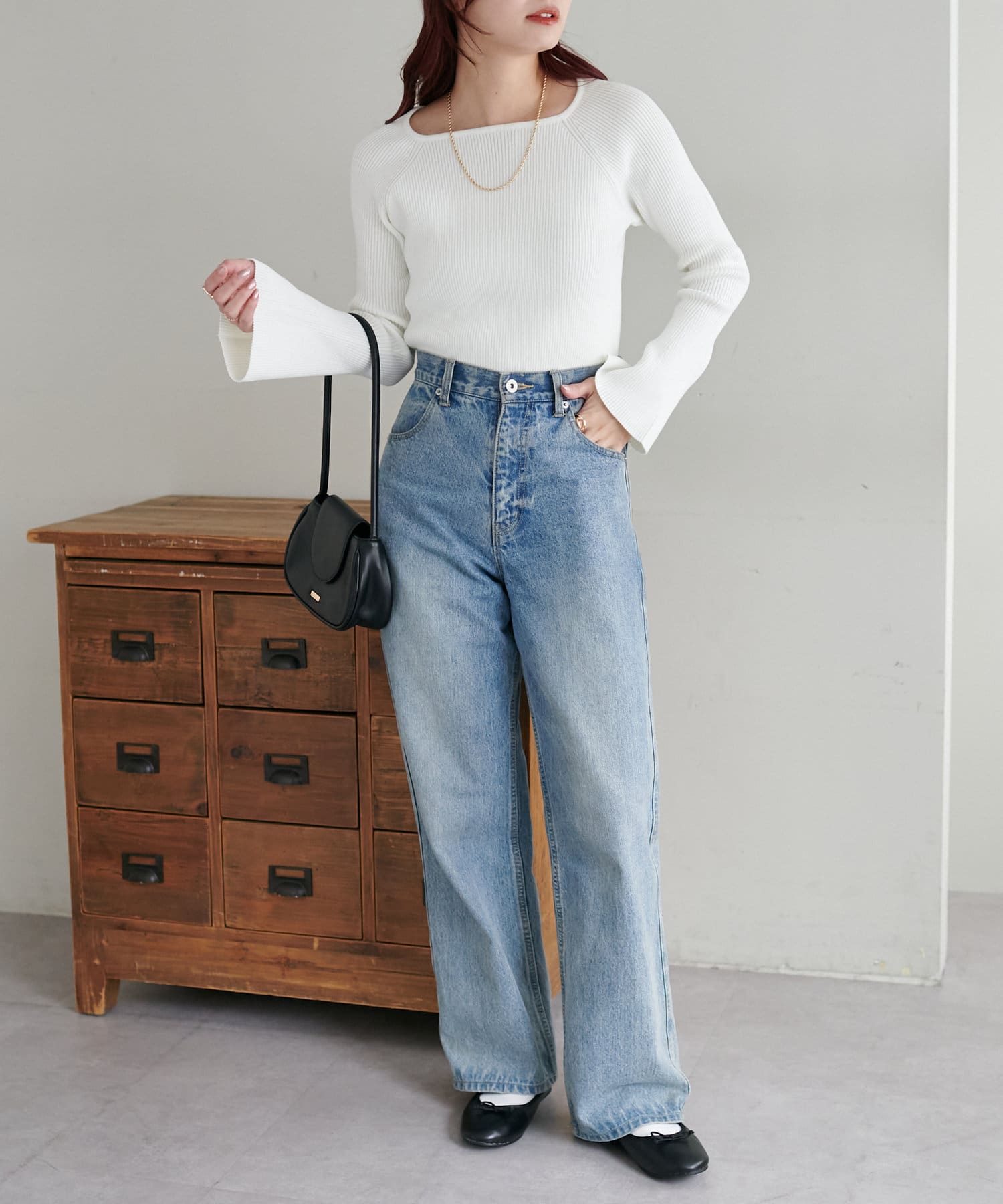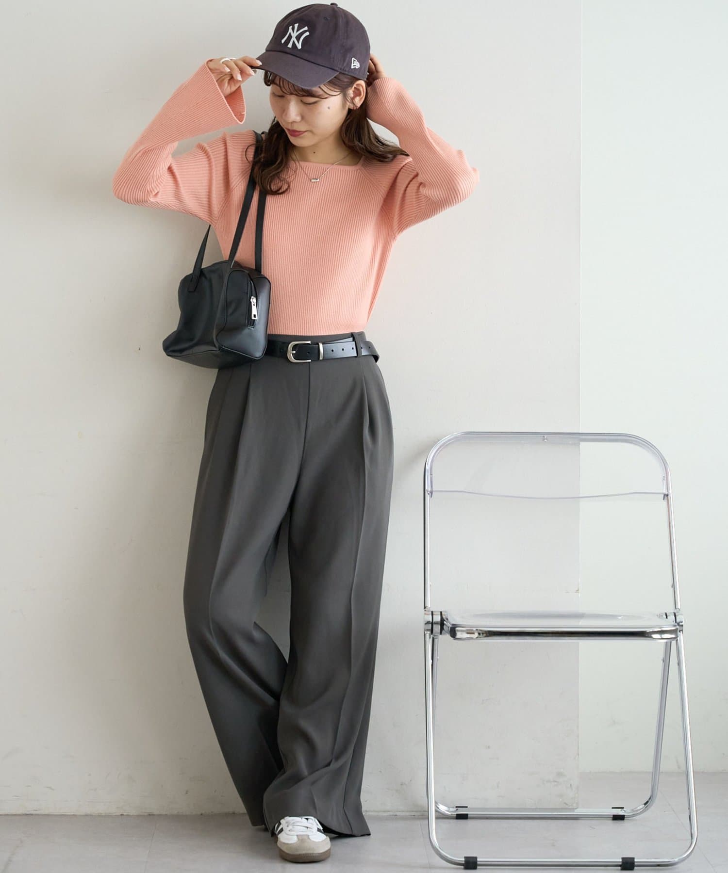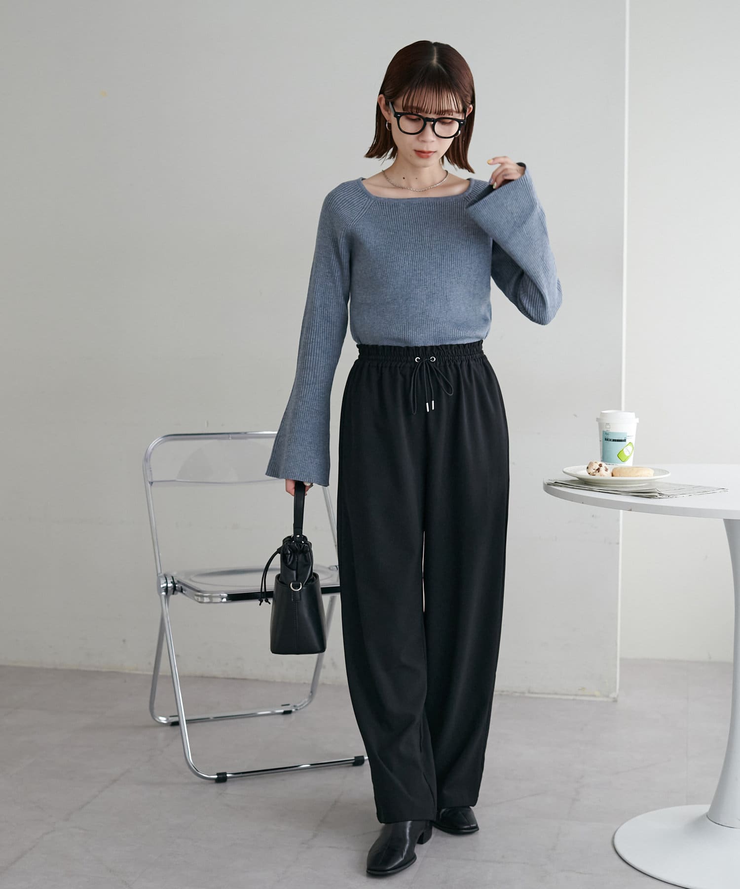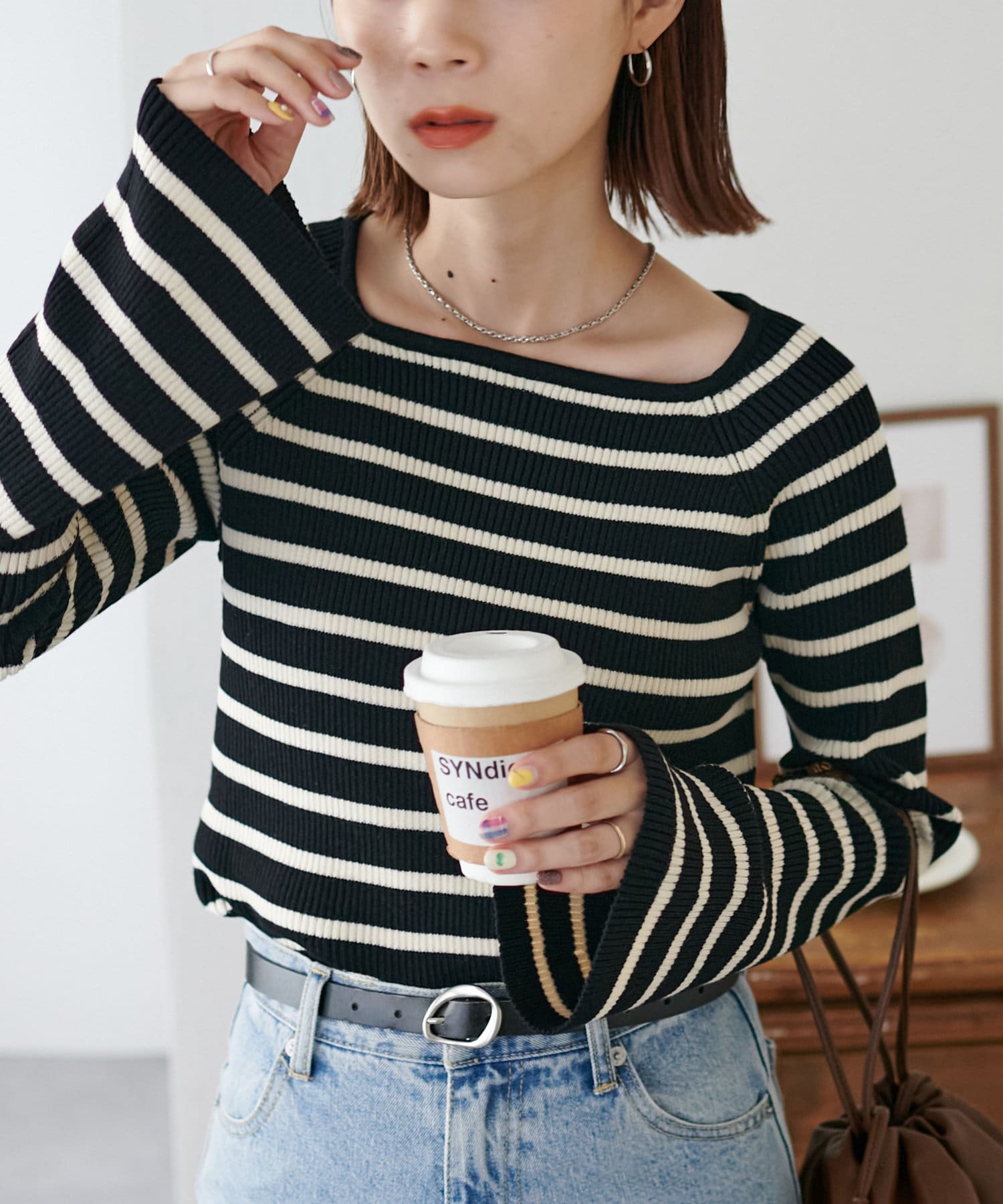 柔らかく伸縮性のある着心地のいいリブニット。袖口部分はフレアデザインなので1枚着でも様になります♪