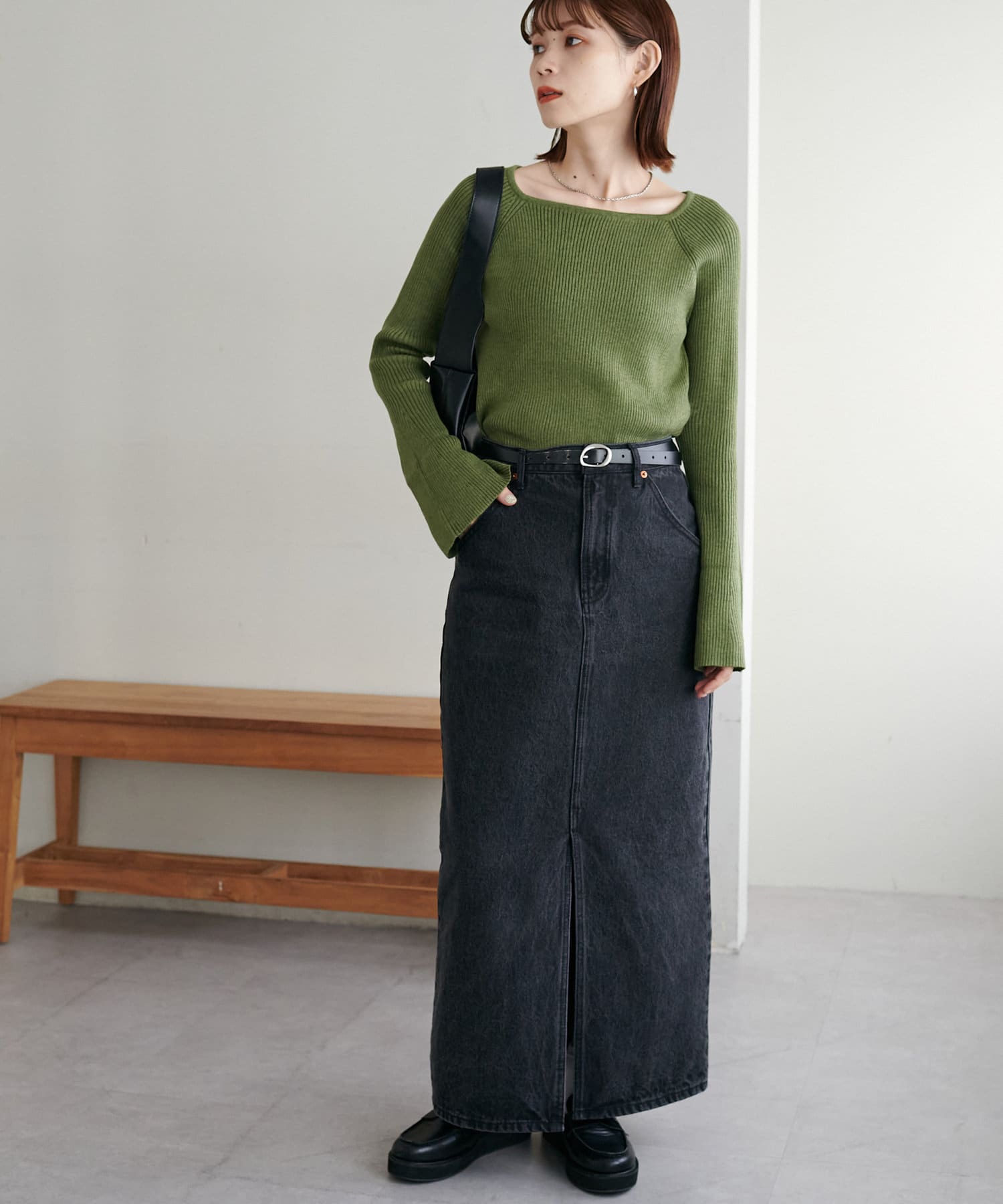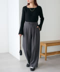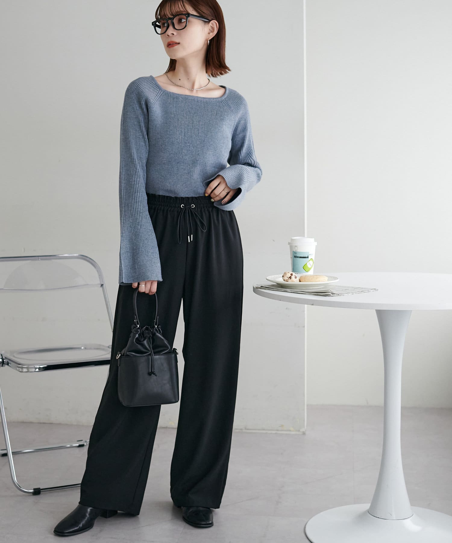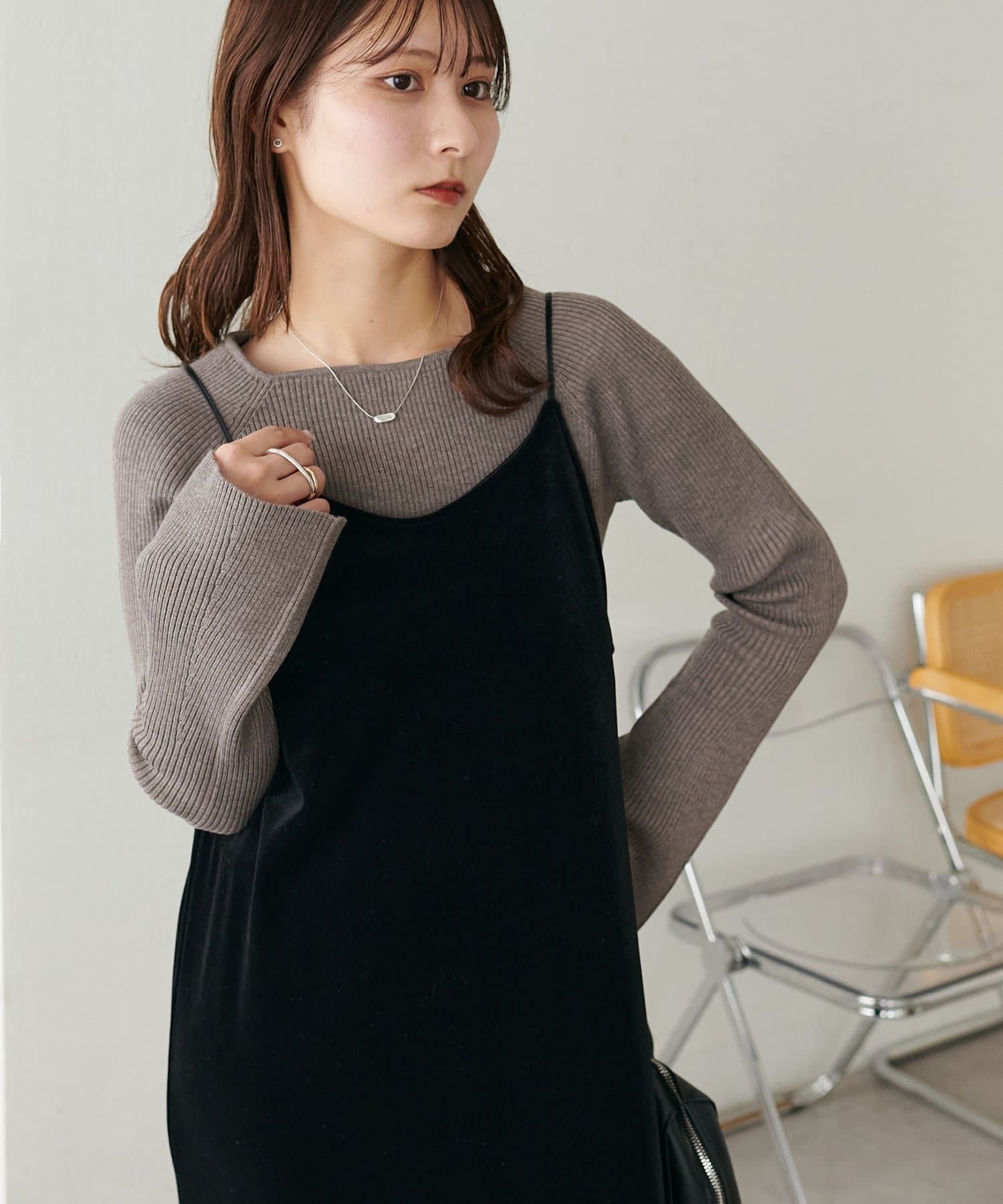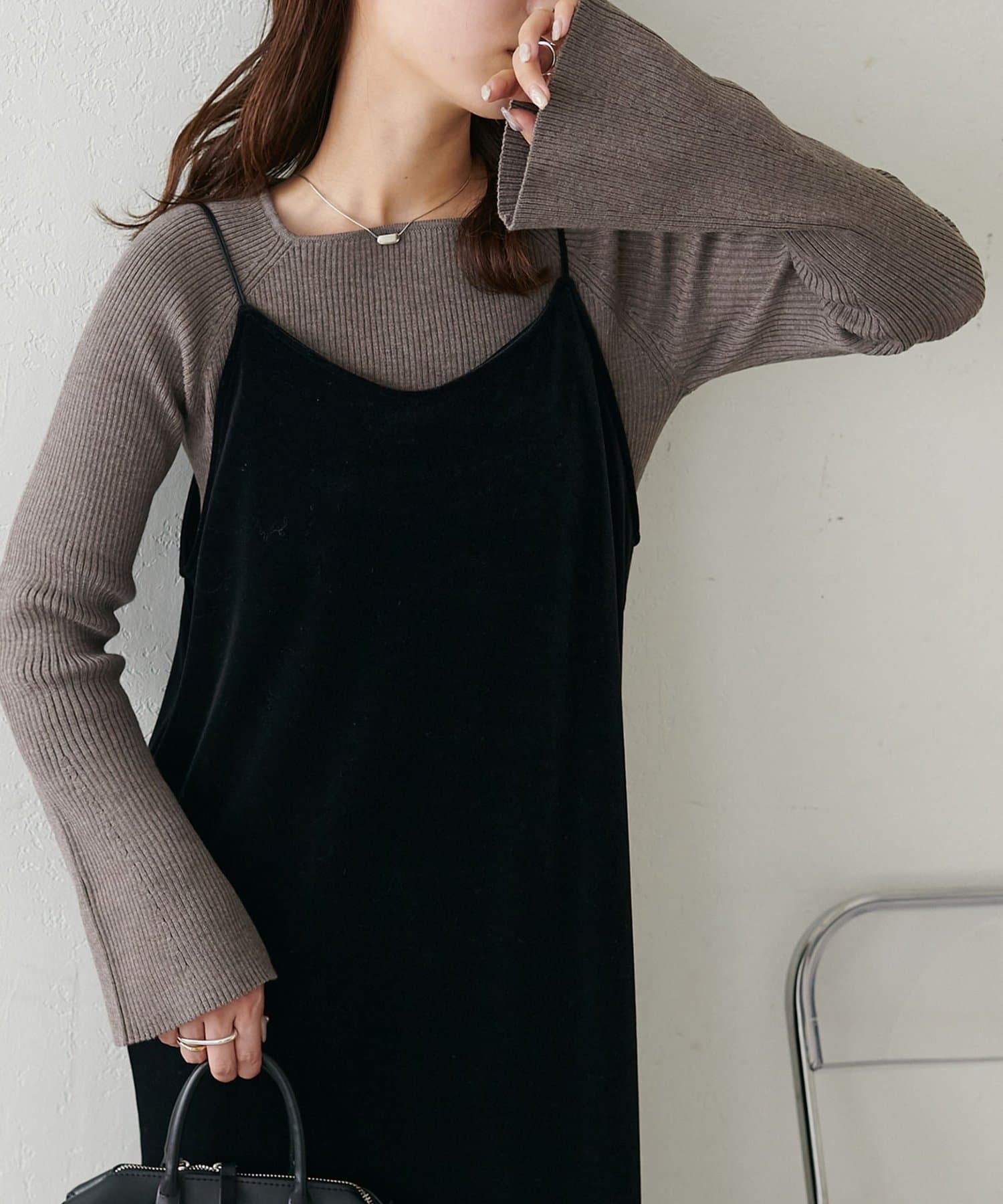 柔らかく伸縮性のある着心地のいいリブニット。袖口部分はフレアデザインなので1枚着でも様になります♪