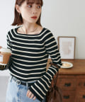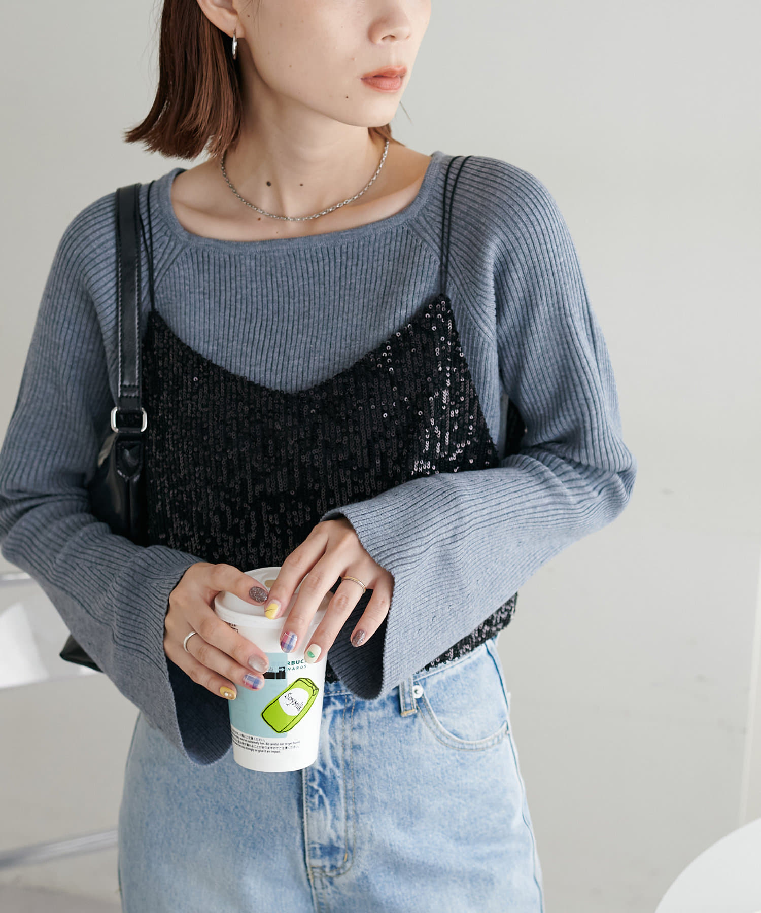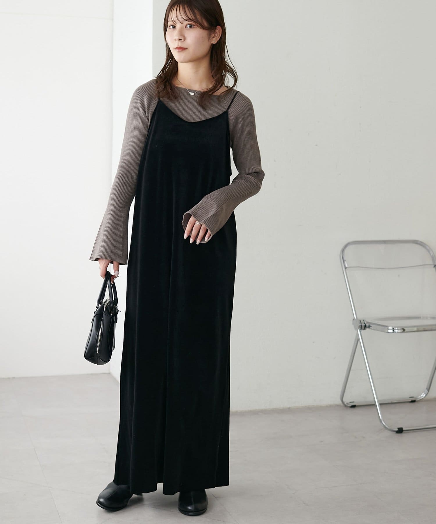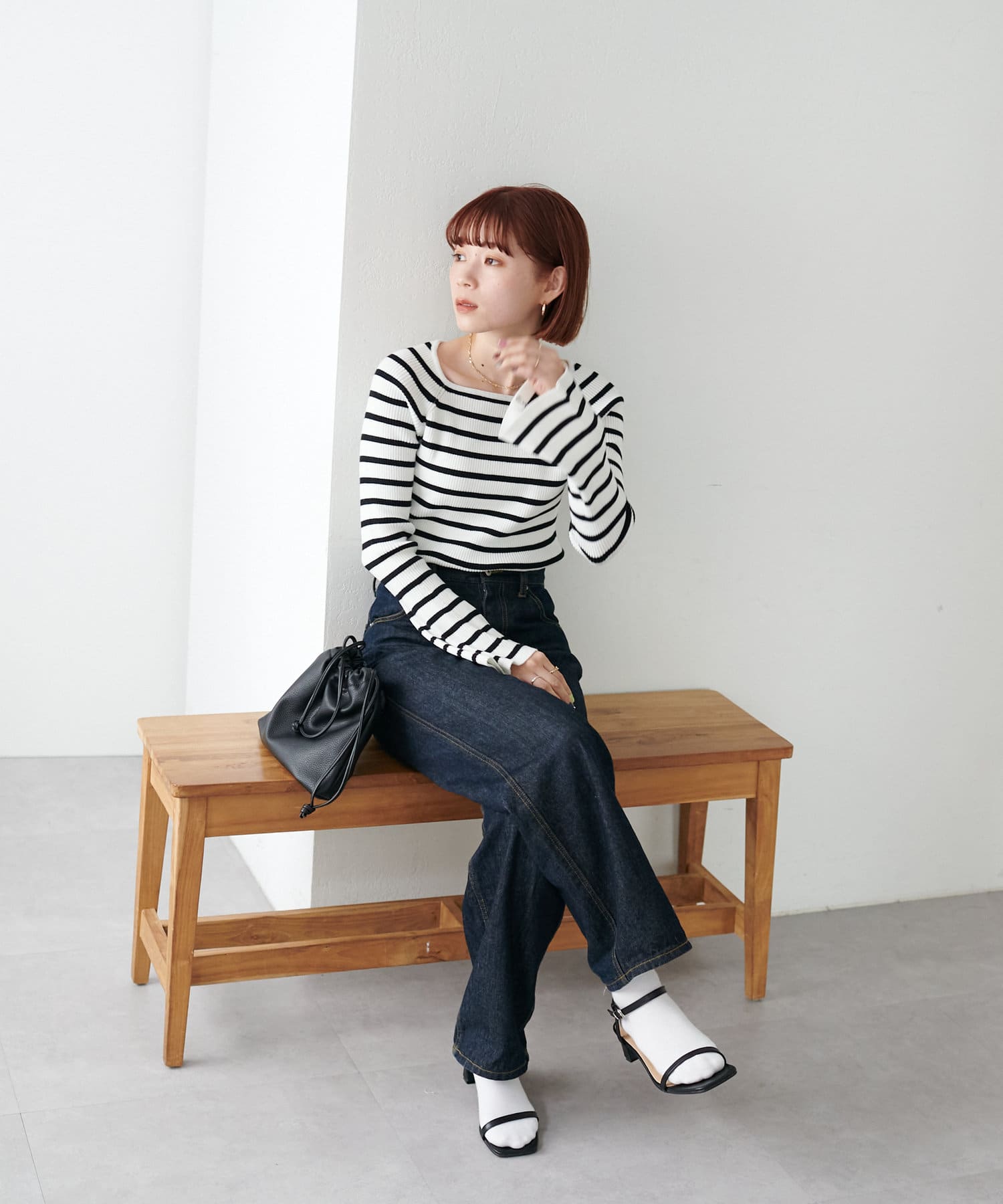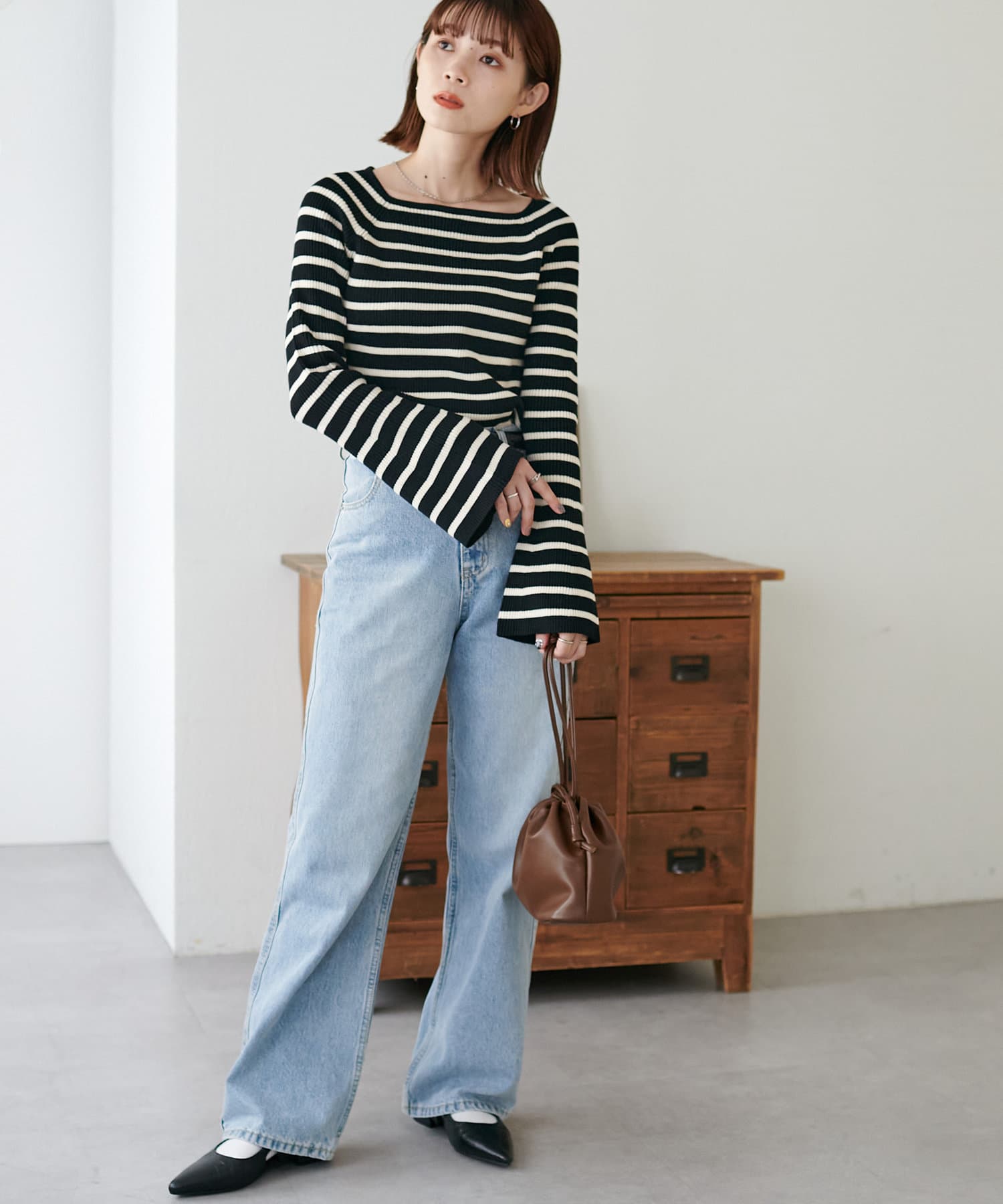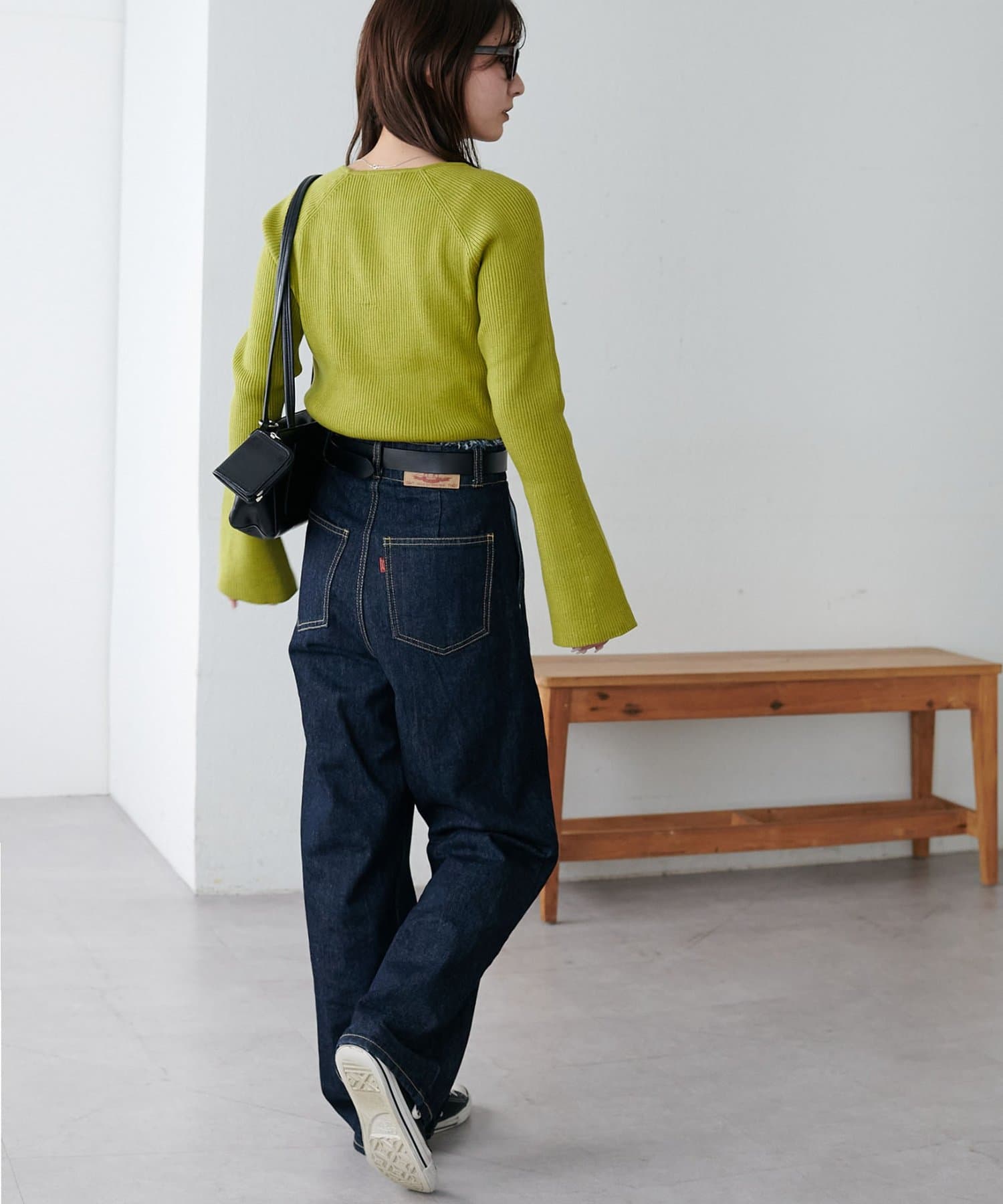 柔らかく伸縮性のある着心地のいいリブニット。袖口部分はフレアデザインなので1枚着でも様になります♪