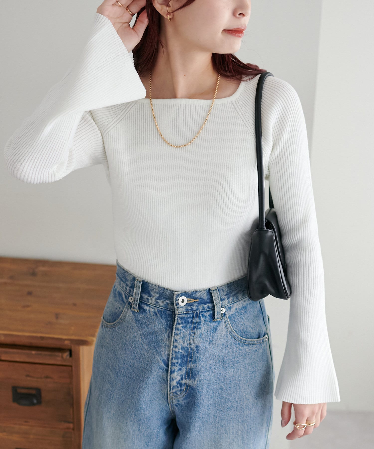 【新色追加!/WEB限定】リブスクエアネックプルオーバー