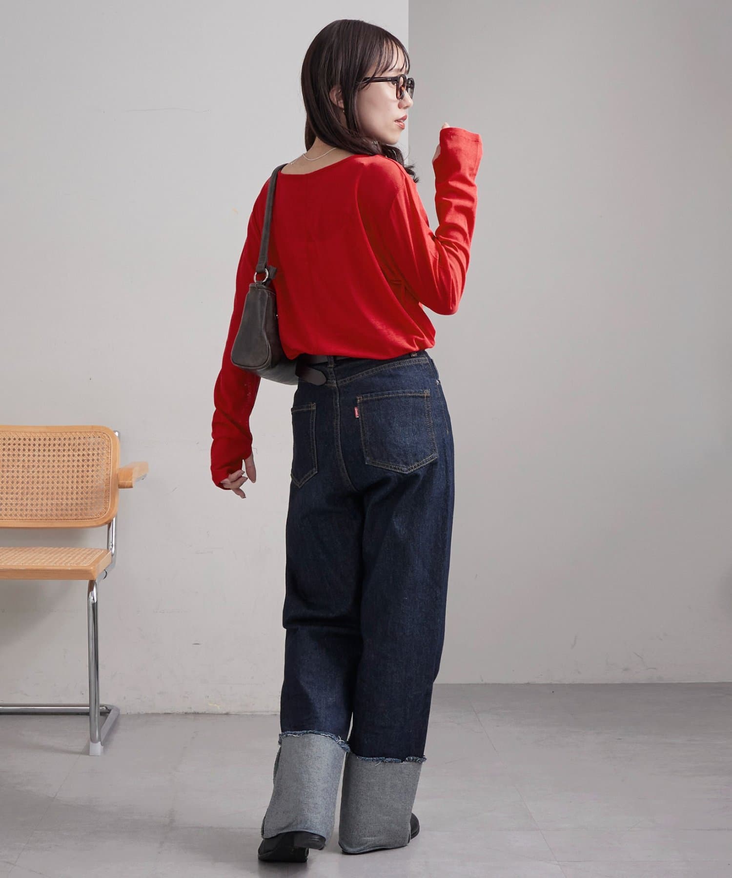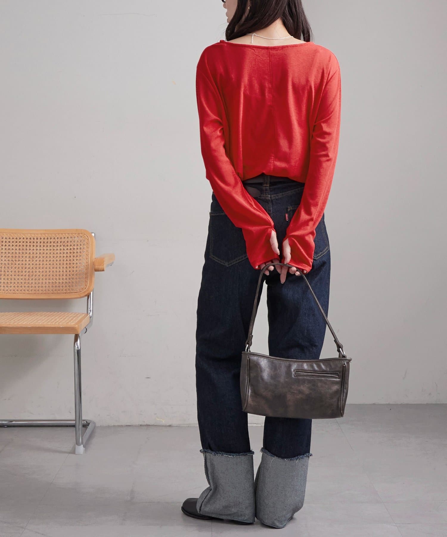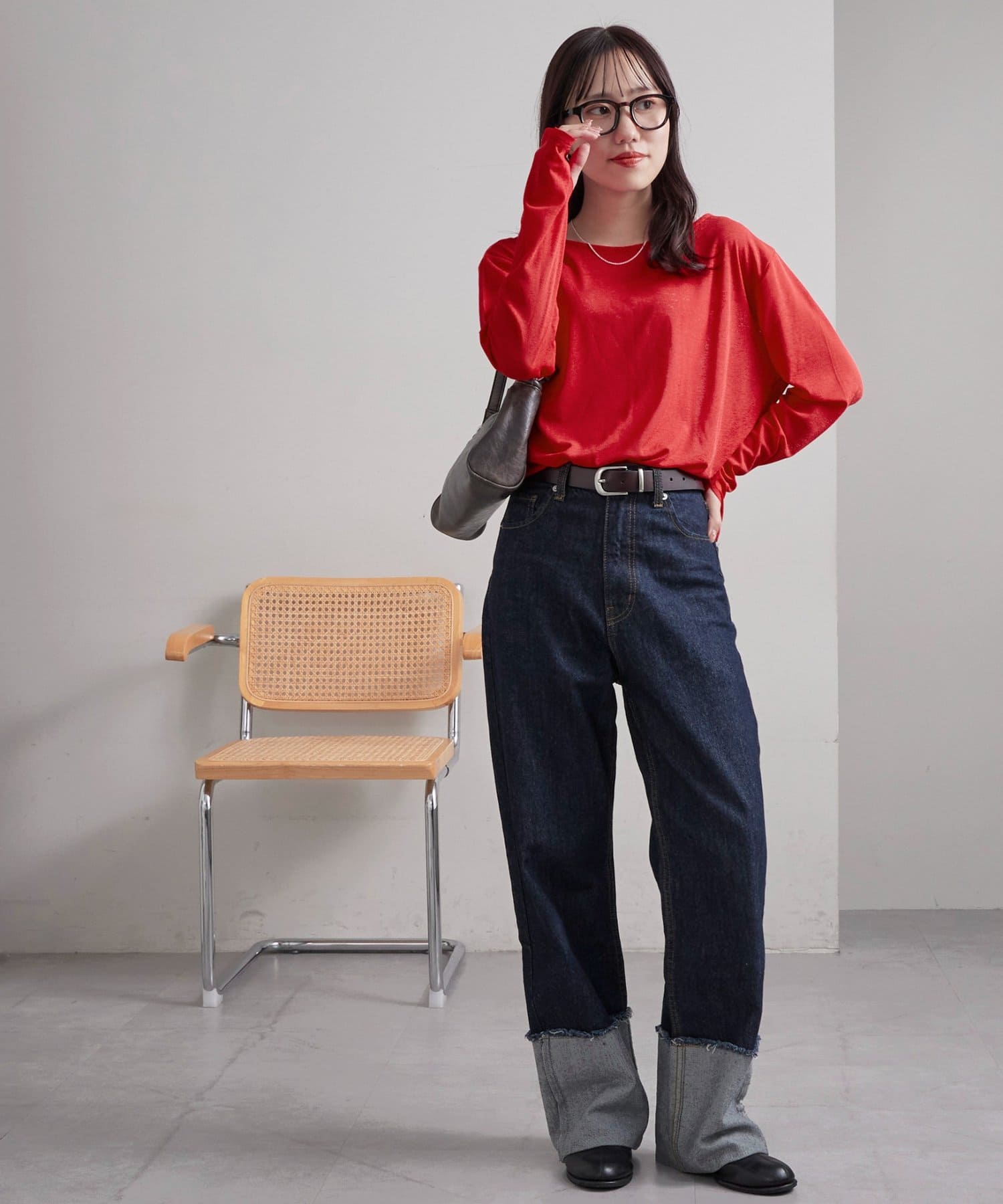 155cmスタッフ:ごわつきにくい生地感なので、ジャケットやキャミワンピース、スウェットのインナーとしても楽しめます○コーデにアクセントが欲しいときにぴったりのアイテムです○