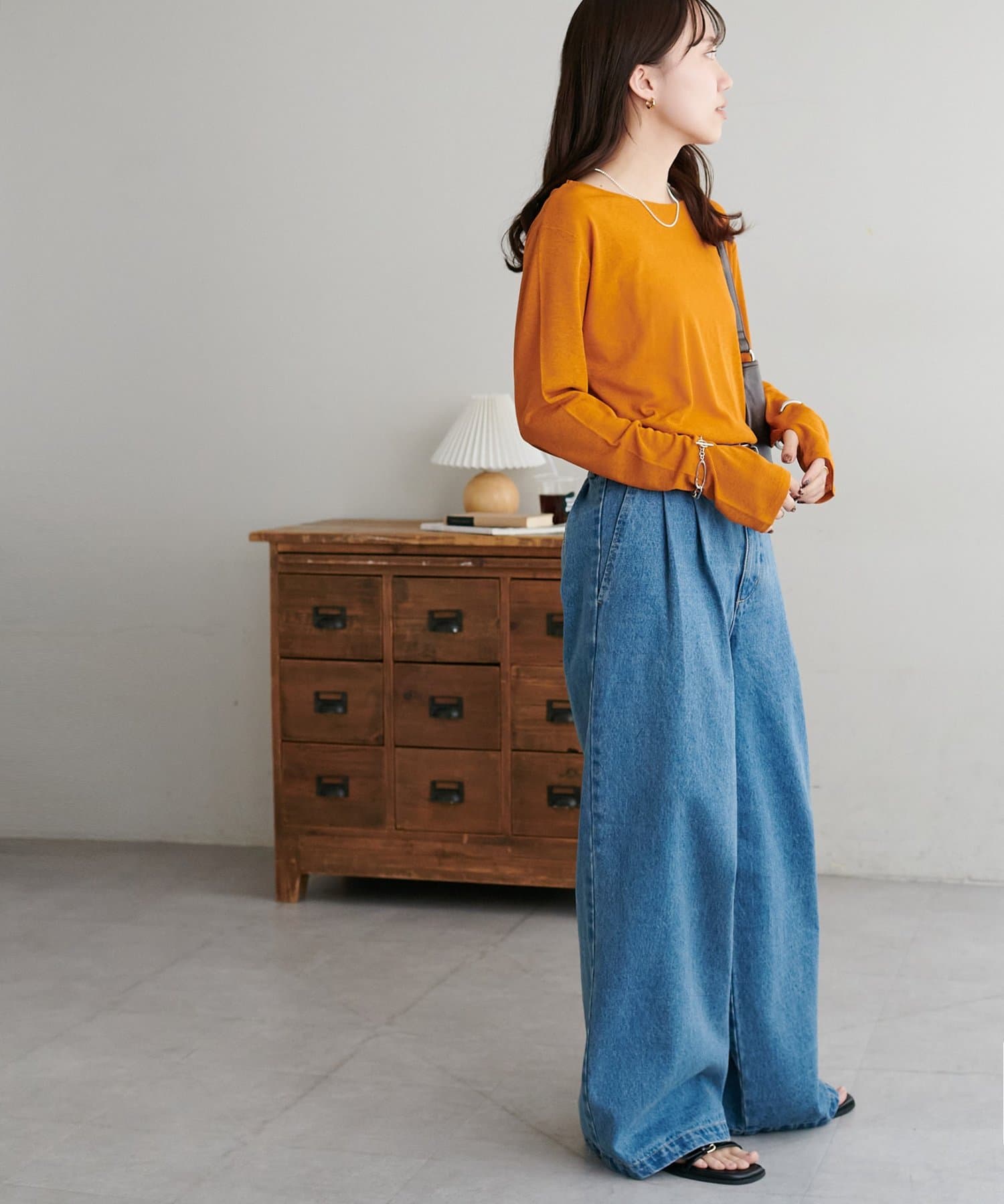 155cmスタッフ:ごわつきにくい生地感なので、ジャケットやキャミワンピース、スウェットのインナーとしても楽しめます○コーデにアクセントが欲しいときにぴったりのアイテムです○