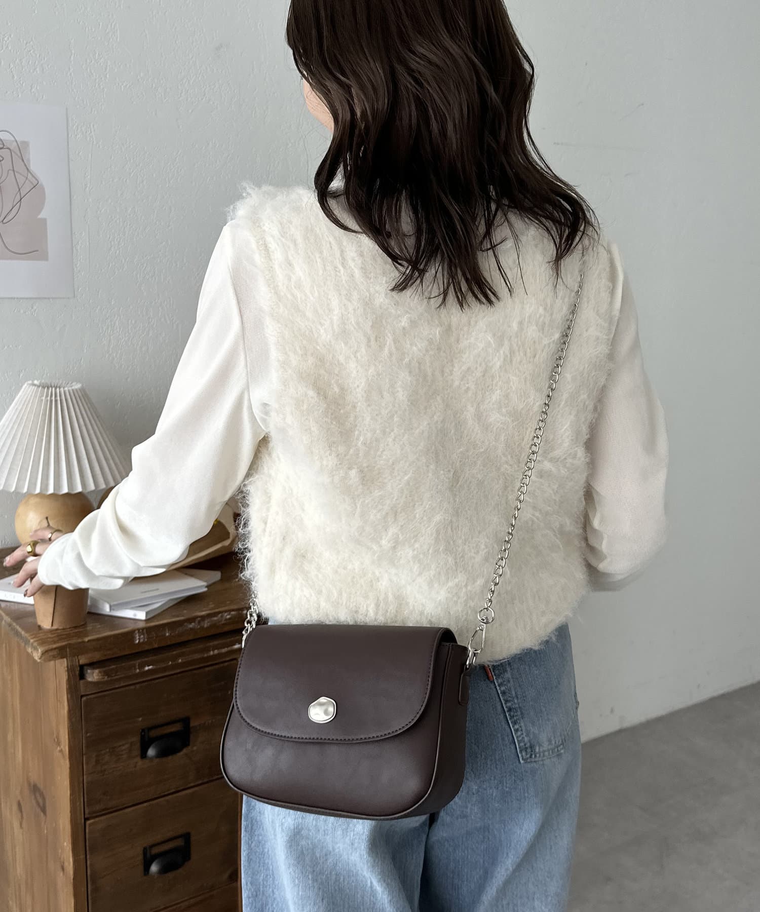 ・オケージョンシーンに→チェーンショルダーがアクセサリーのような輝きを放ち、ニュアンス金具がさりげないアクセントに◎