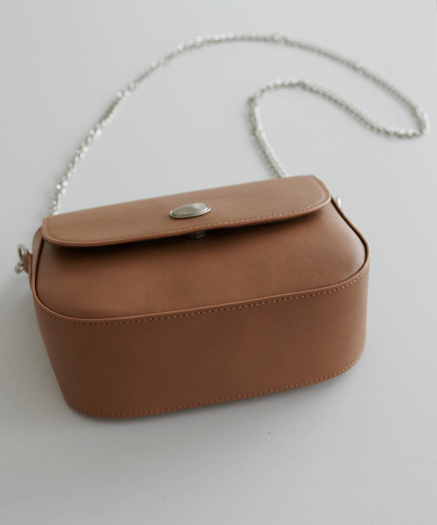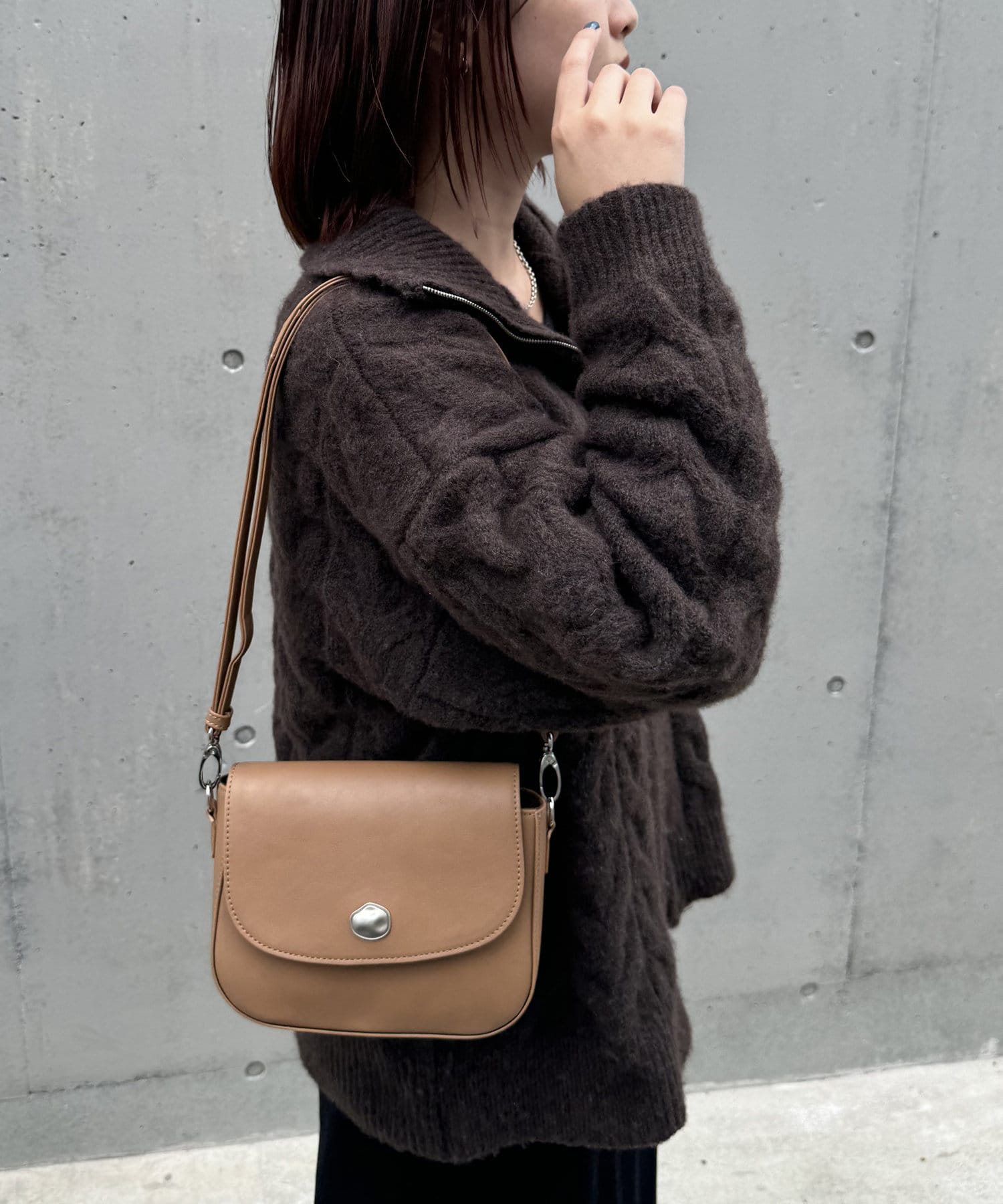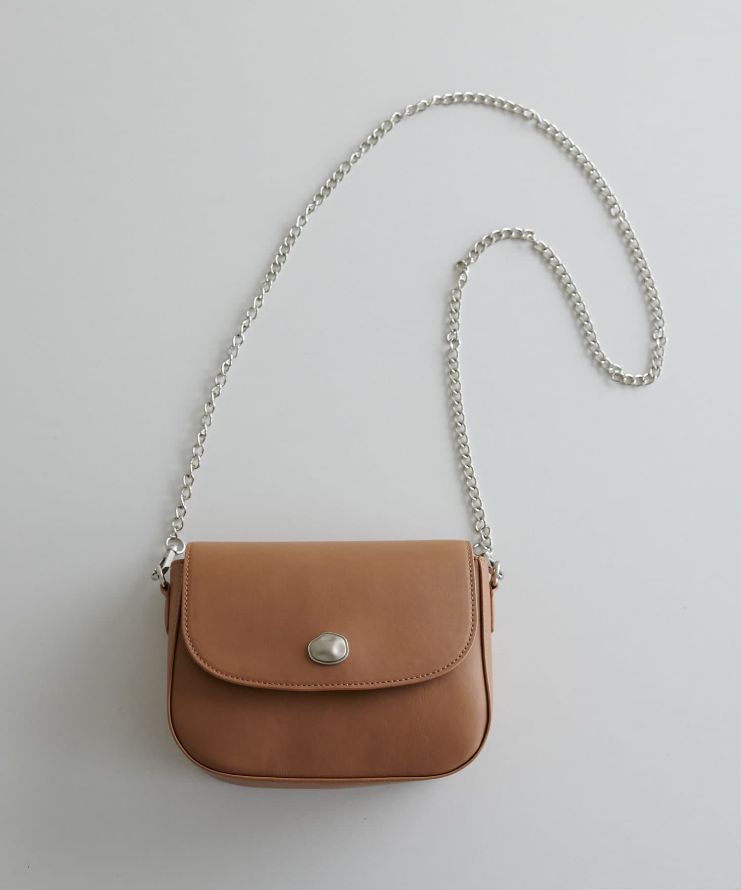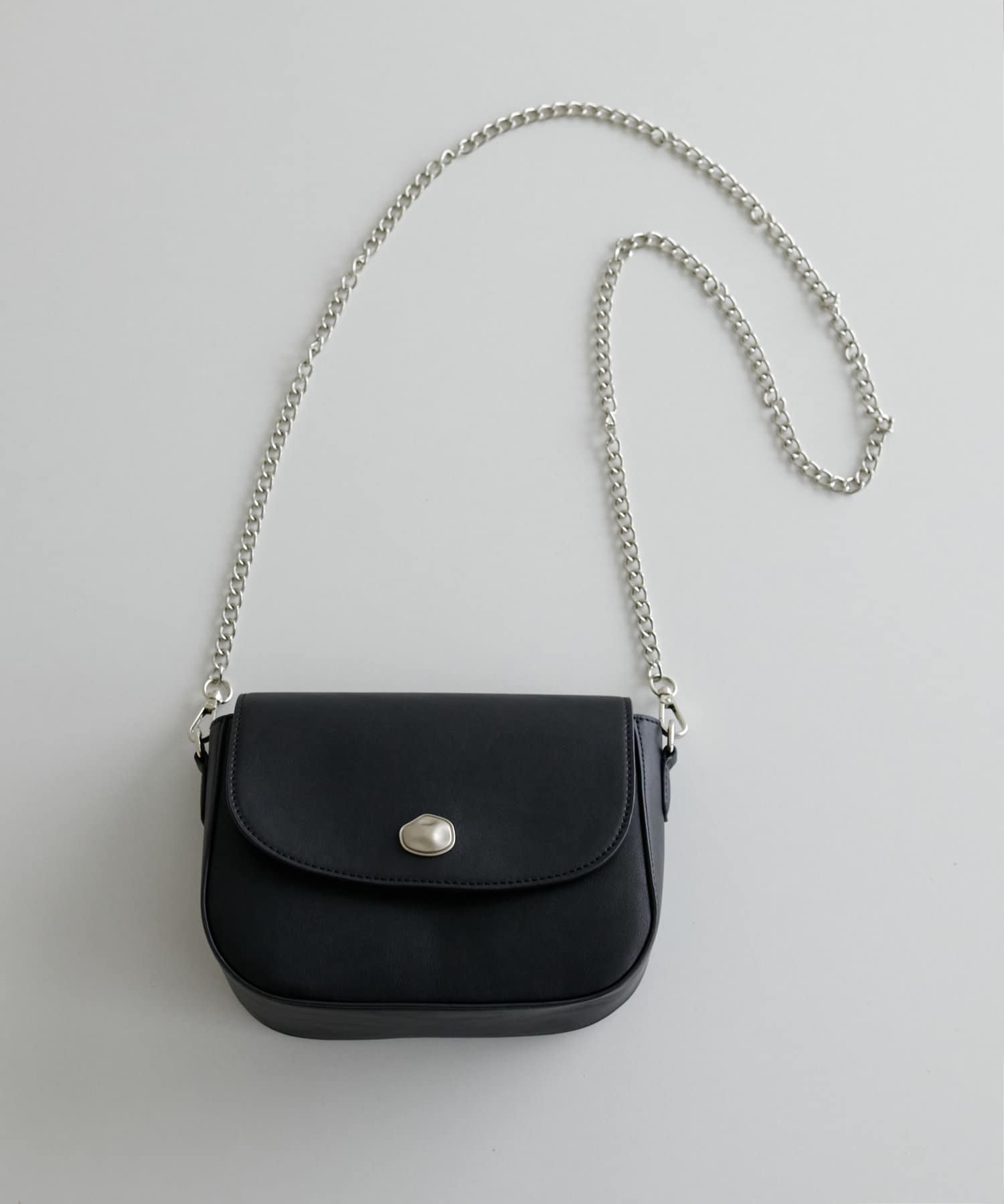 メタリックなニュアンス金具が目を引く、上品なフラップショルダーバッグ。丸みのあるかわいいフォルムに、程よい光沢感のある素材を使用し、おしゃれ見えが叶います♪チェーンショルダーがアクセサリーのようにスタイリングを引き立て、デイリーからきれいめコーデまで幅広く活躍します。長さ調節をしてハンドバッグとしても使うことができます。開閉はマグネットボタン式でスムーズに出し入れができ、見た目だけでなく機能性も◎コンパクトながらも財布やキーケース、リップなどの必需品が収納できるサイズ感で、外側のオープンポケットには携帯もすっぽり収まるので、身軽なお出かけにぴったりです。