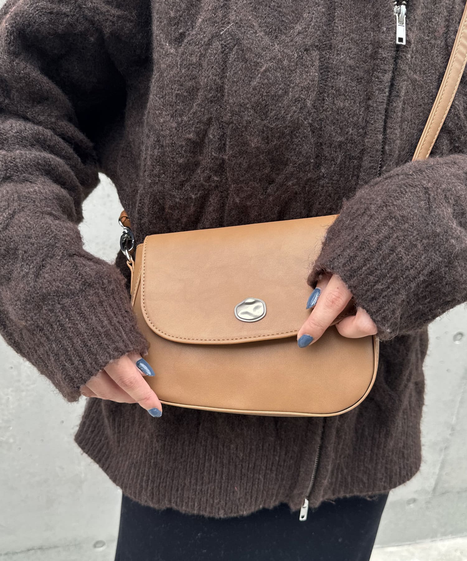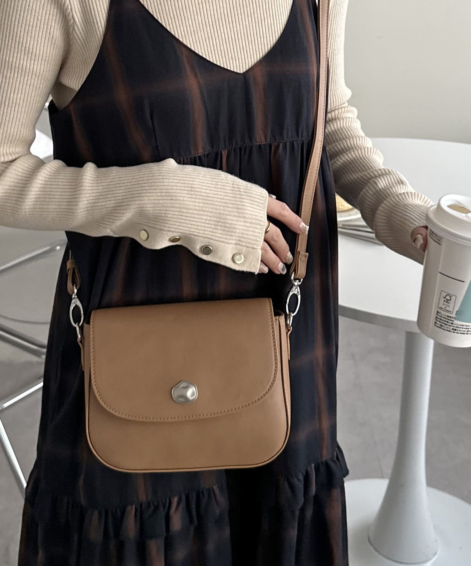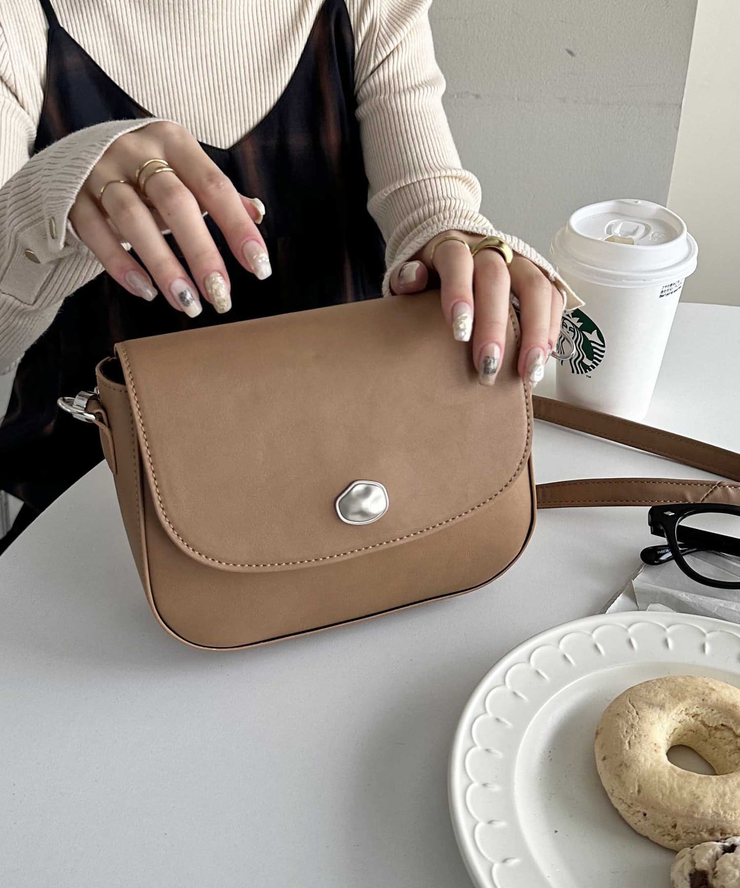 ニュアンス金具フラップショルダーバッグ