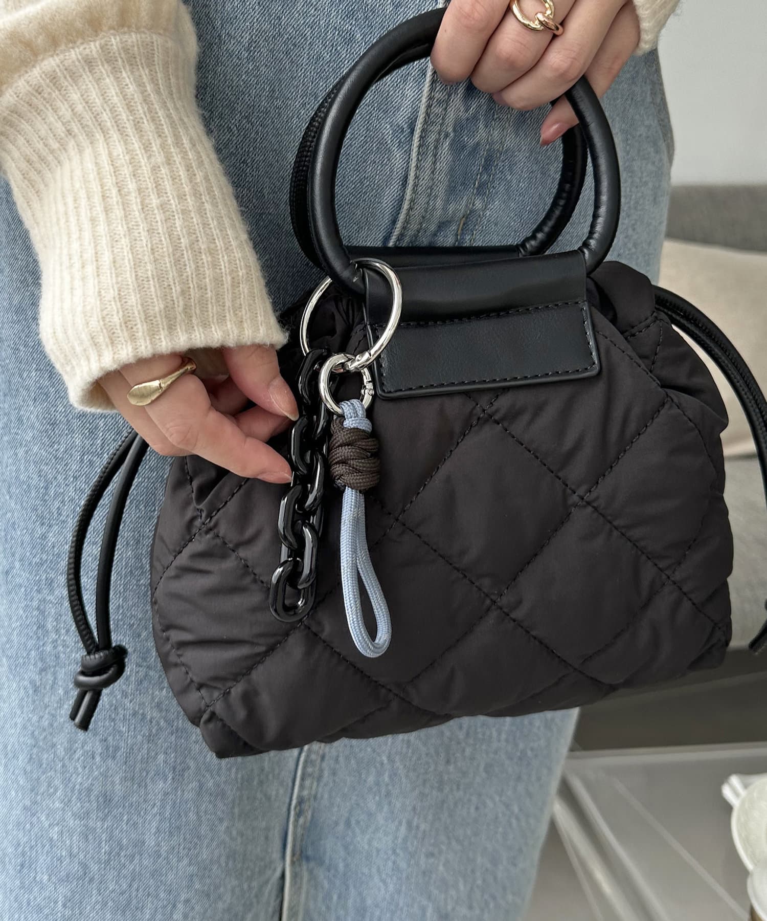 【175g・超軽量/ちょっとしたお出かけにピッタリなミニマムサイズ】チャーム付きキルティングミニショルダーバッグ