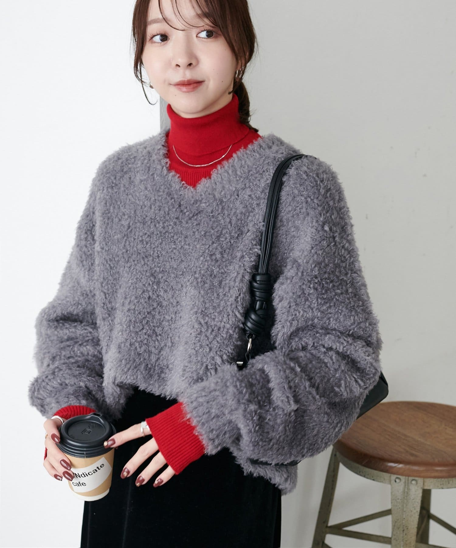 赤のニットを探していて真っ赤じゃなくて馴染みやすいボルドーぽい赤なので大人でもきれいに着られるなと思いました。