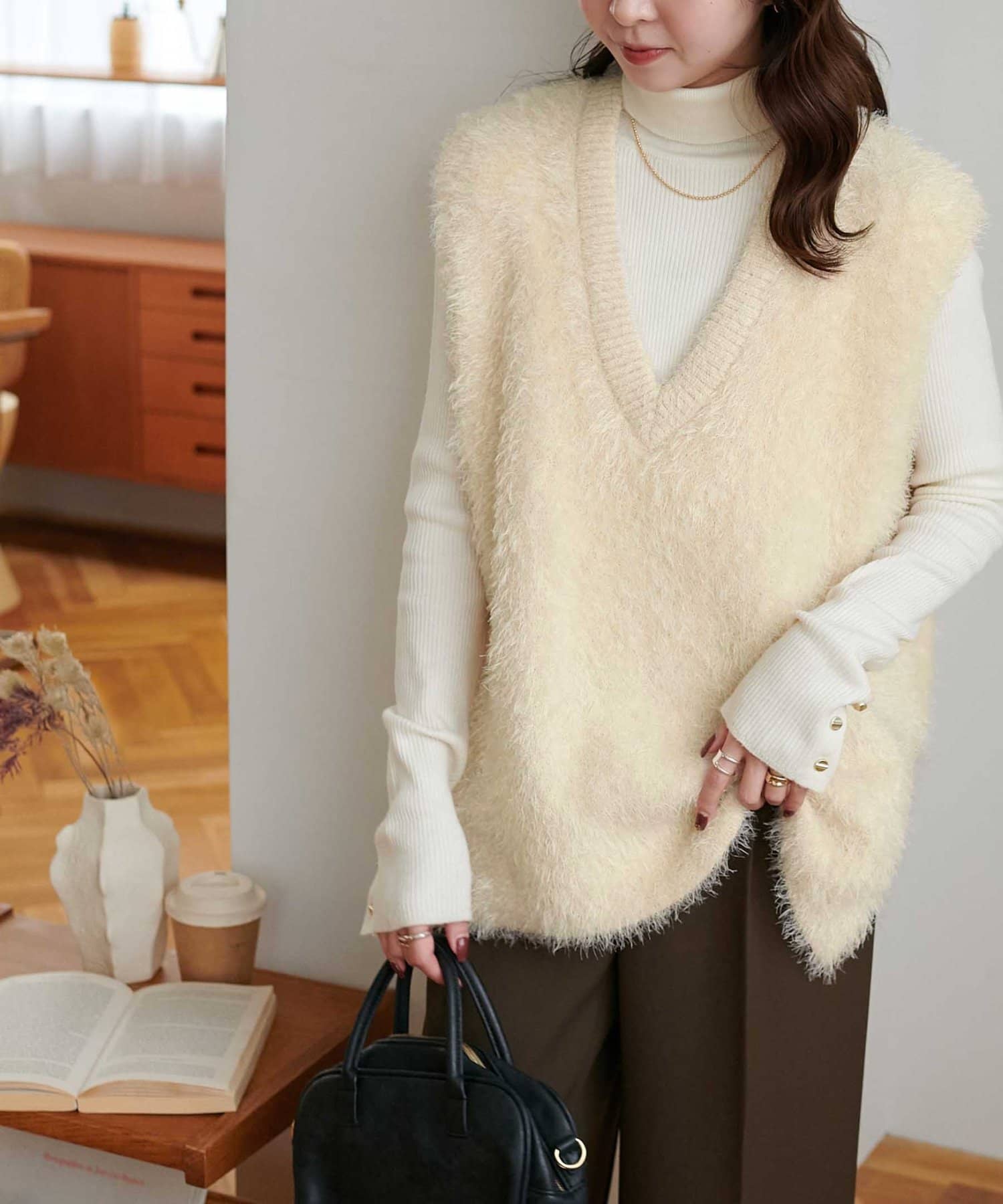 体に程よくフィットするリブ編みで、伸縮性もあるので着心地も抜群◎タートルネックで首元まで暖かく防寒性にも優れています。