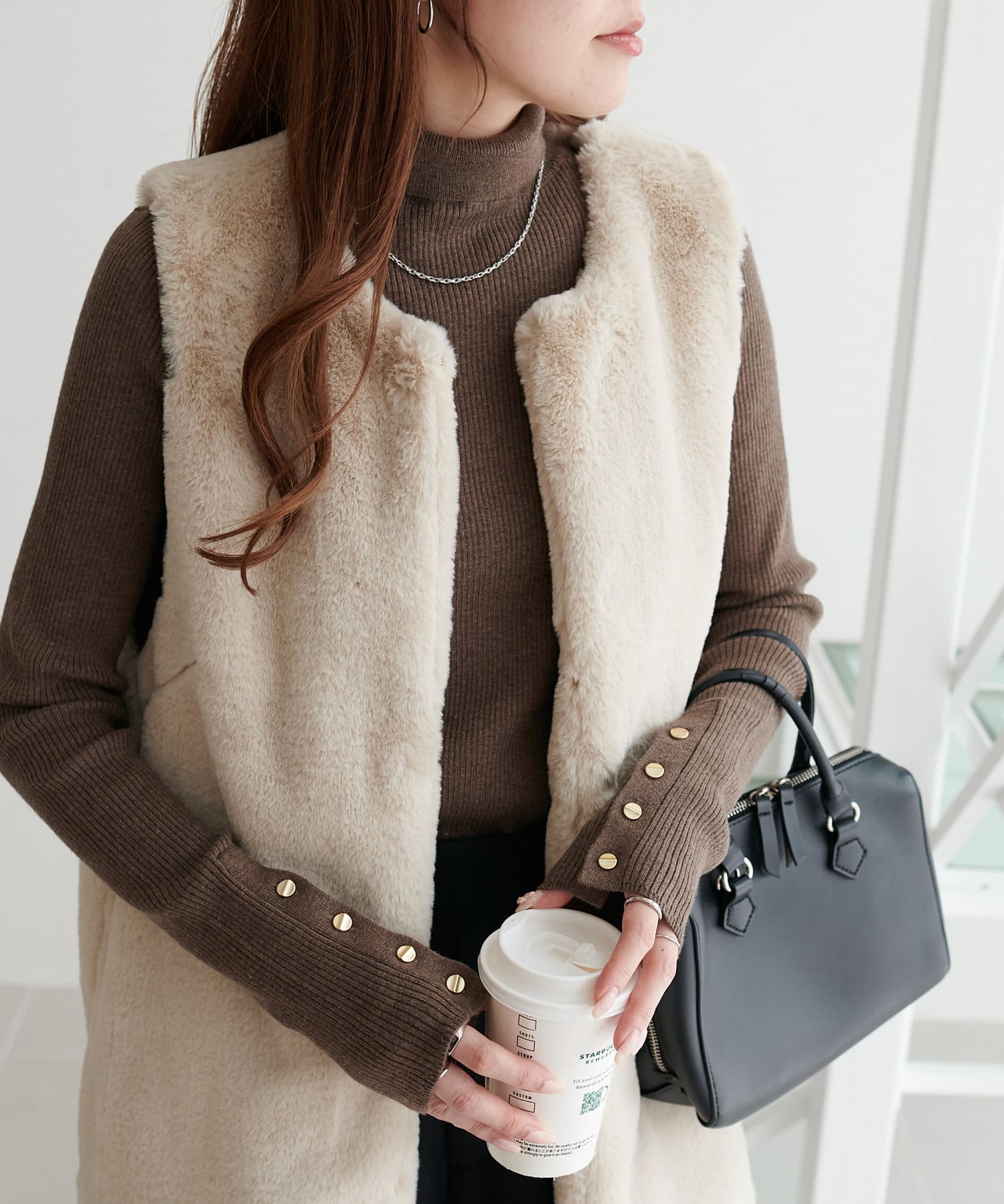 【newボタン/25色展開】リブ袖口ボタンタートル《WEB限定カラーあり》