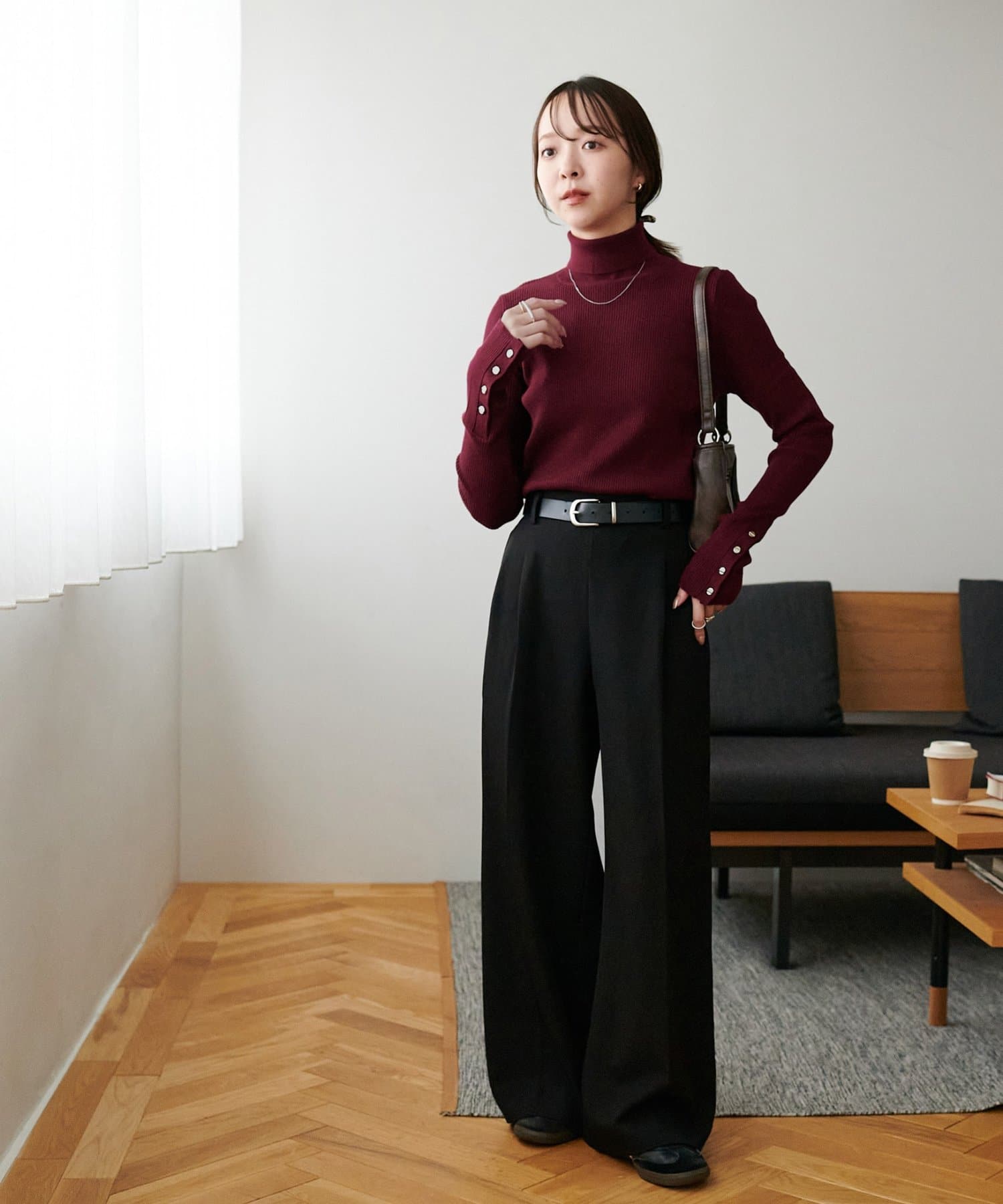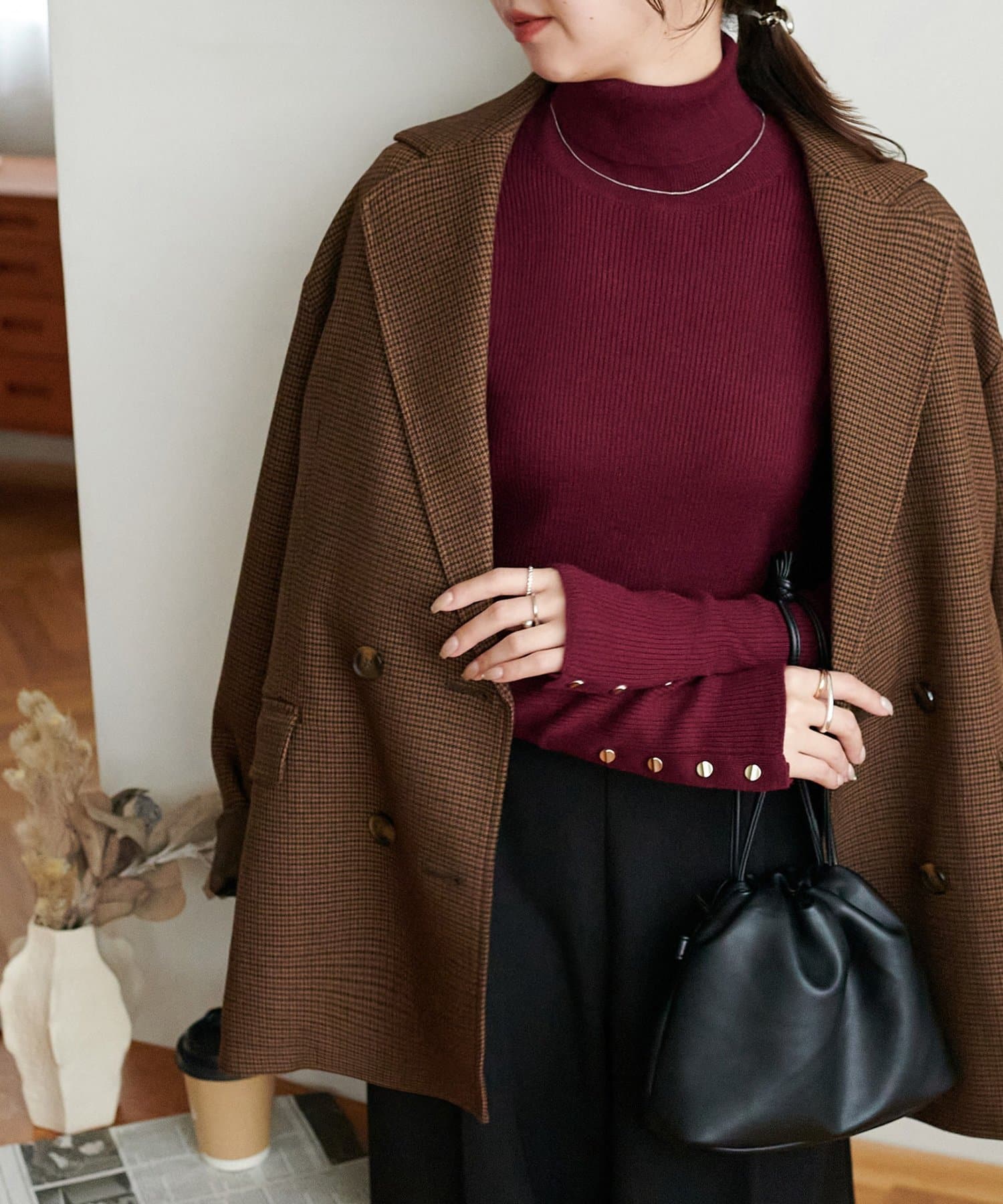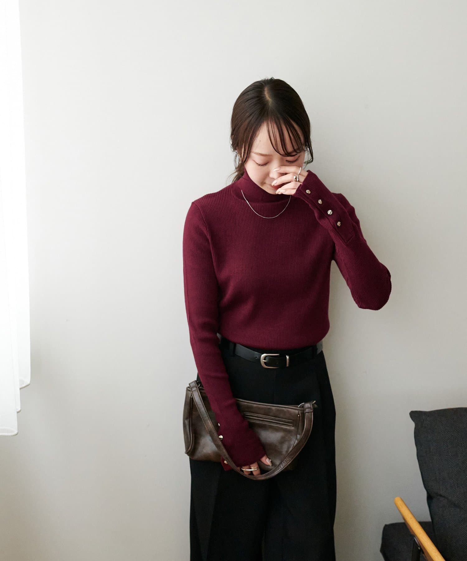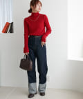 赤のニットを探していて真っ赤じゃなくて馴染みやすいボルドーぽい赤なので大人でもきれいに着られるなと思いました。