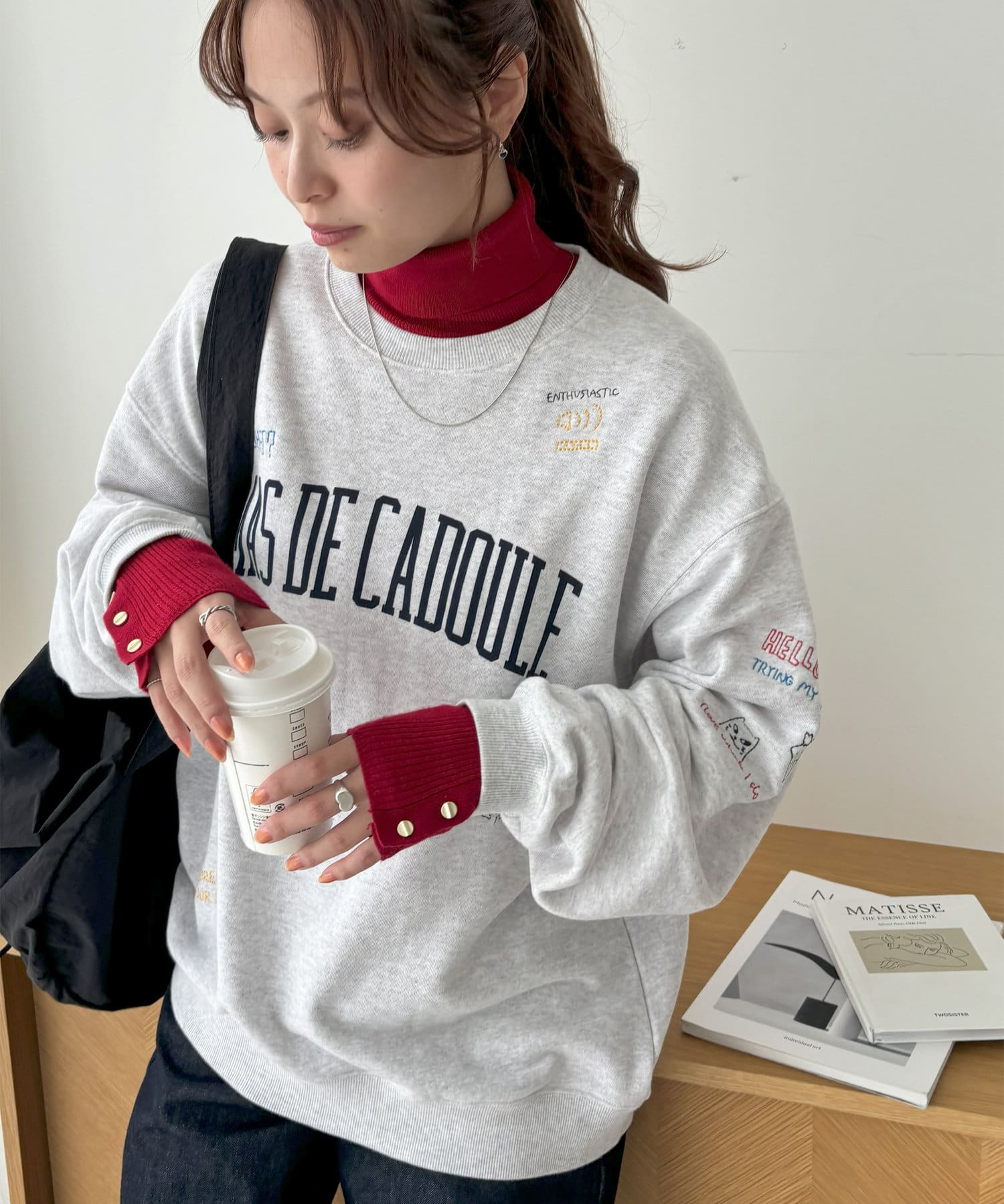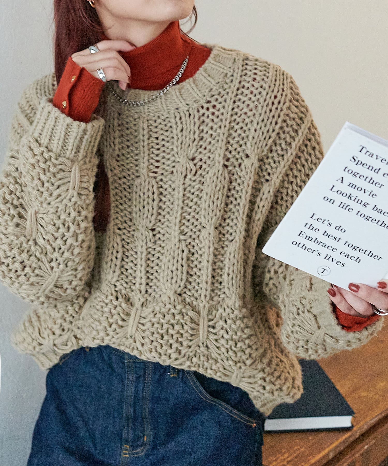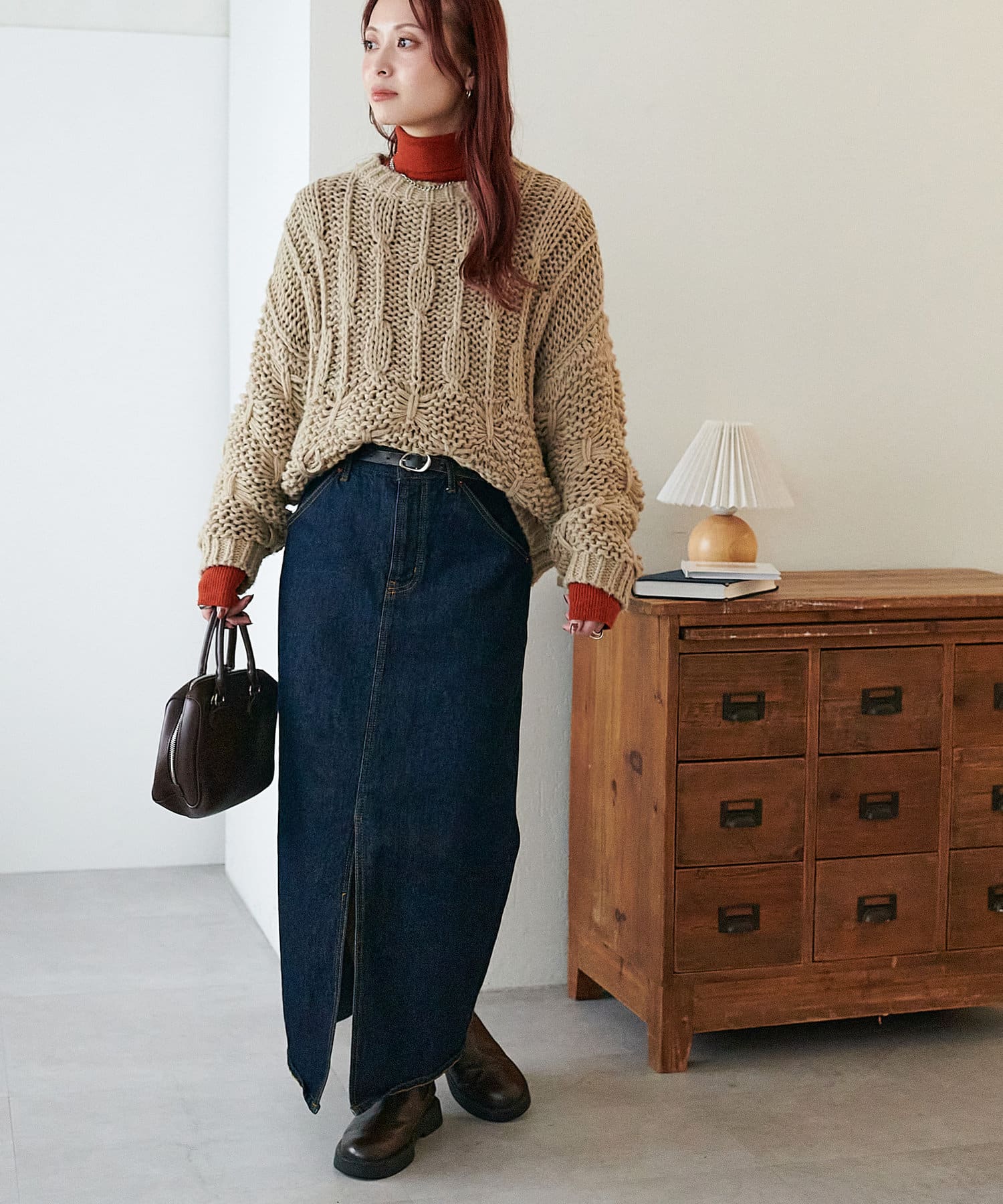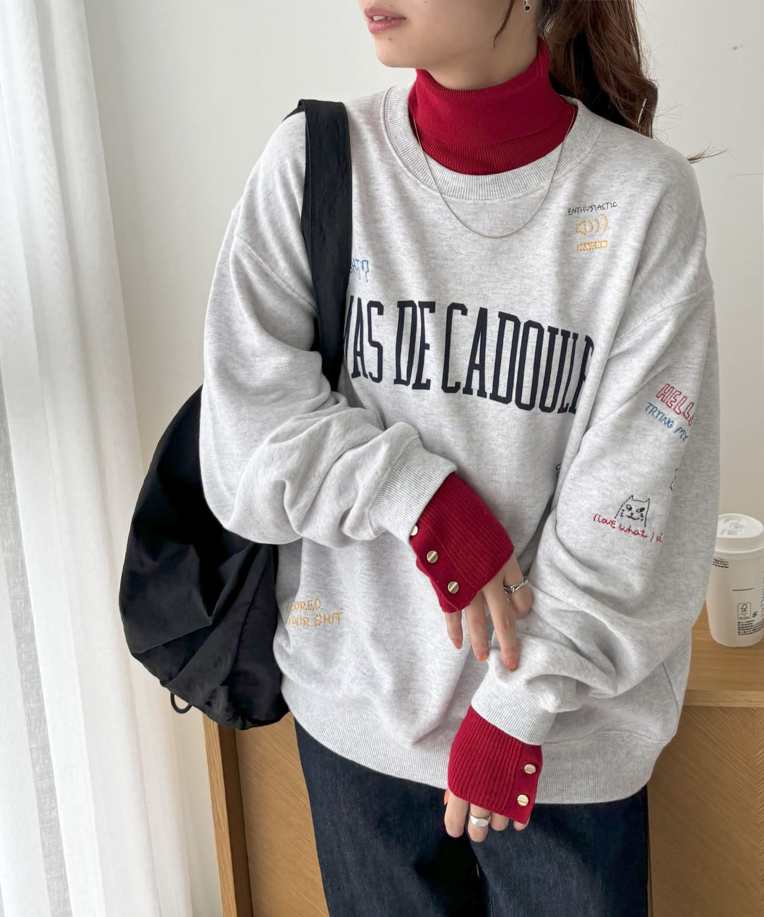 赤のニットを探していて真っ赤じゃなくて馴染みやすいボルドーぽい赤なので大人でもきれいに着られるなと思いました。
