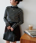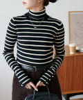 コーディネートのベースとなるシンプルなTシャツから、トレンドライクなハイネックデザインが登場。着心地のよさにもこだわり、柔らかな風合いのレーヨンコットン素材を使用しました。メインとしてはもちろん、インナーレイヤードにもおすすめ。着回しに役立つボーダー柄をご用意しました★