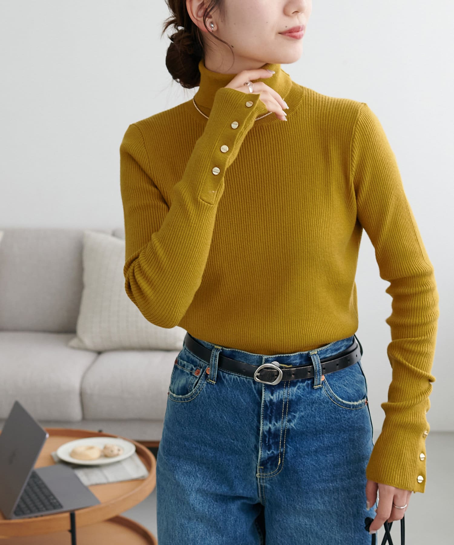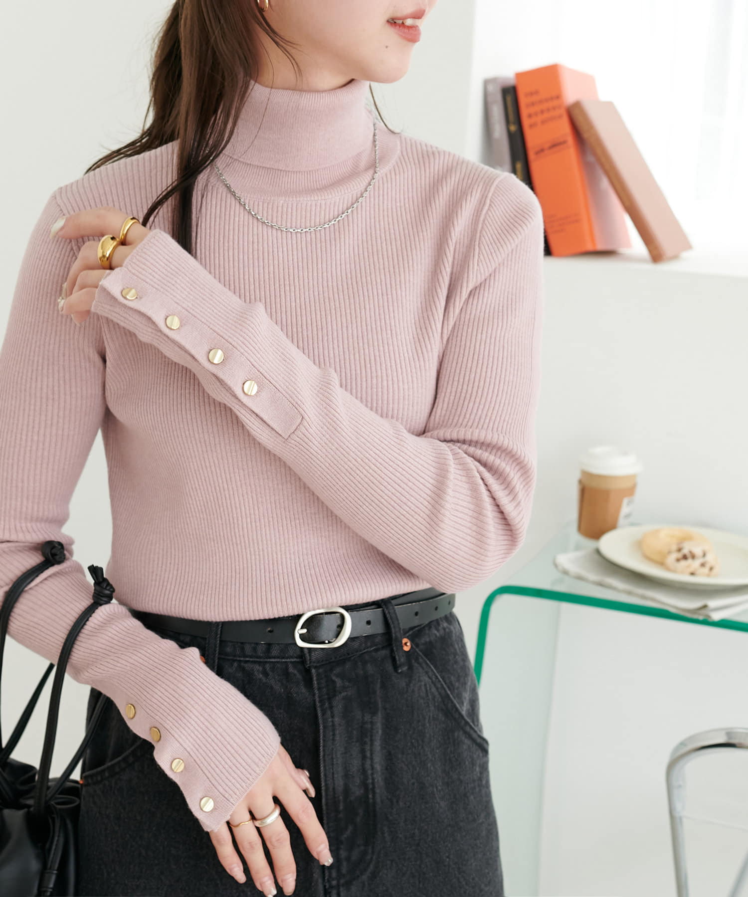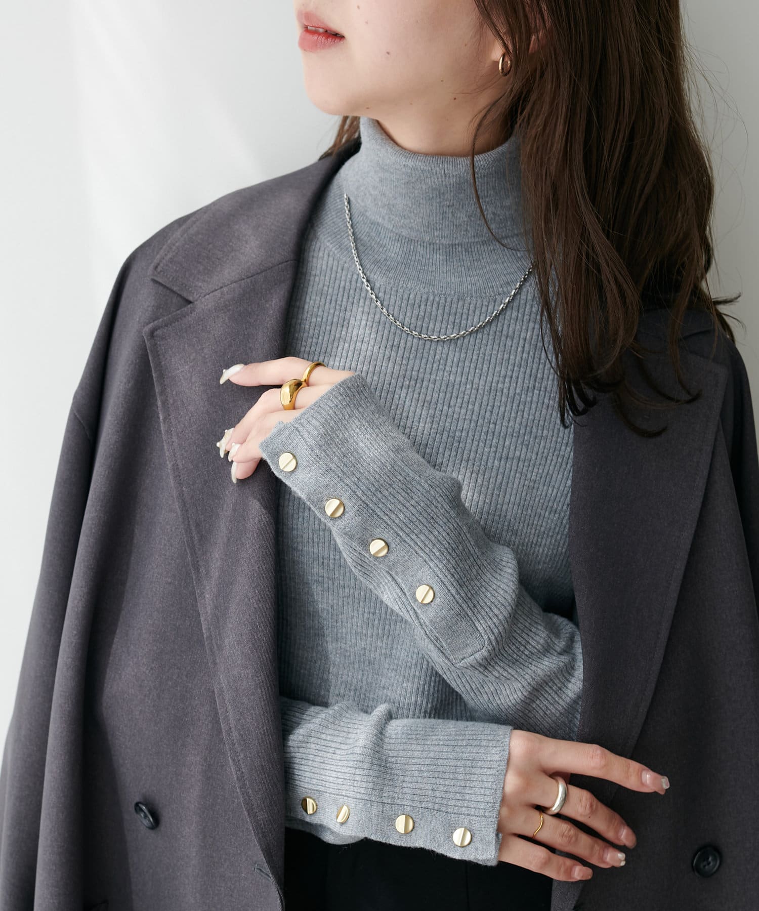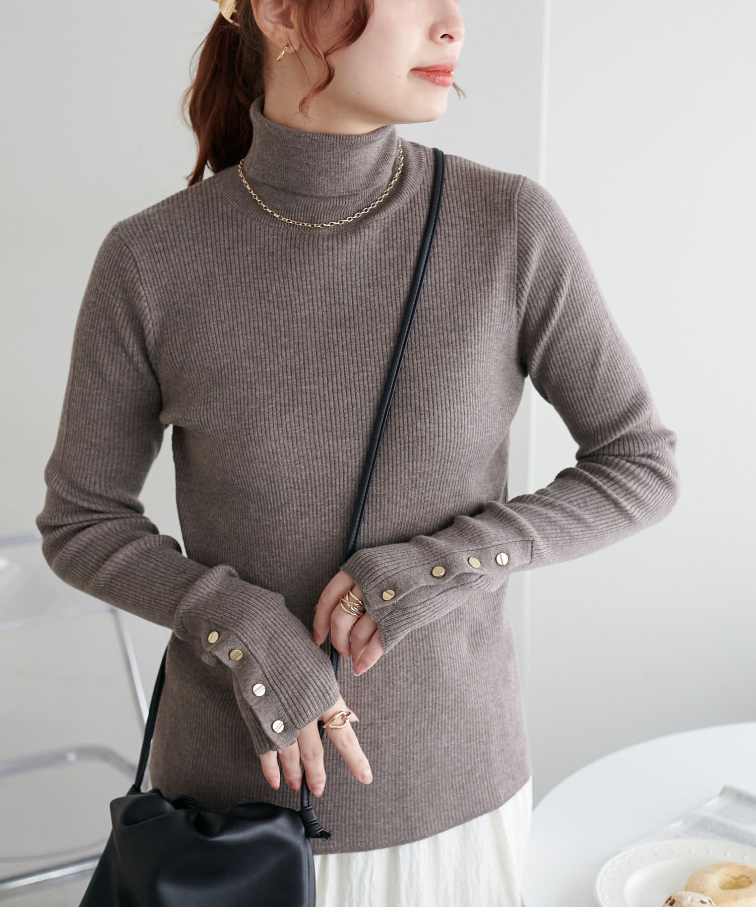 【新色追加/25色展開!】リブ袖口ボタンタートル《WEB限定カラーあり》