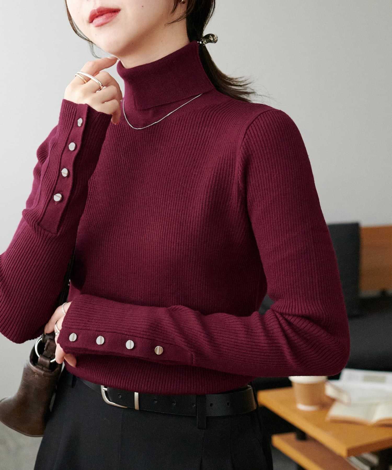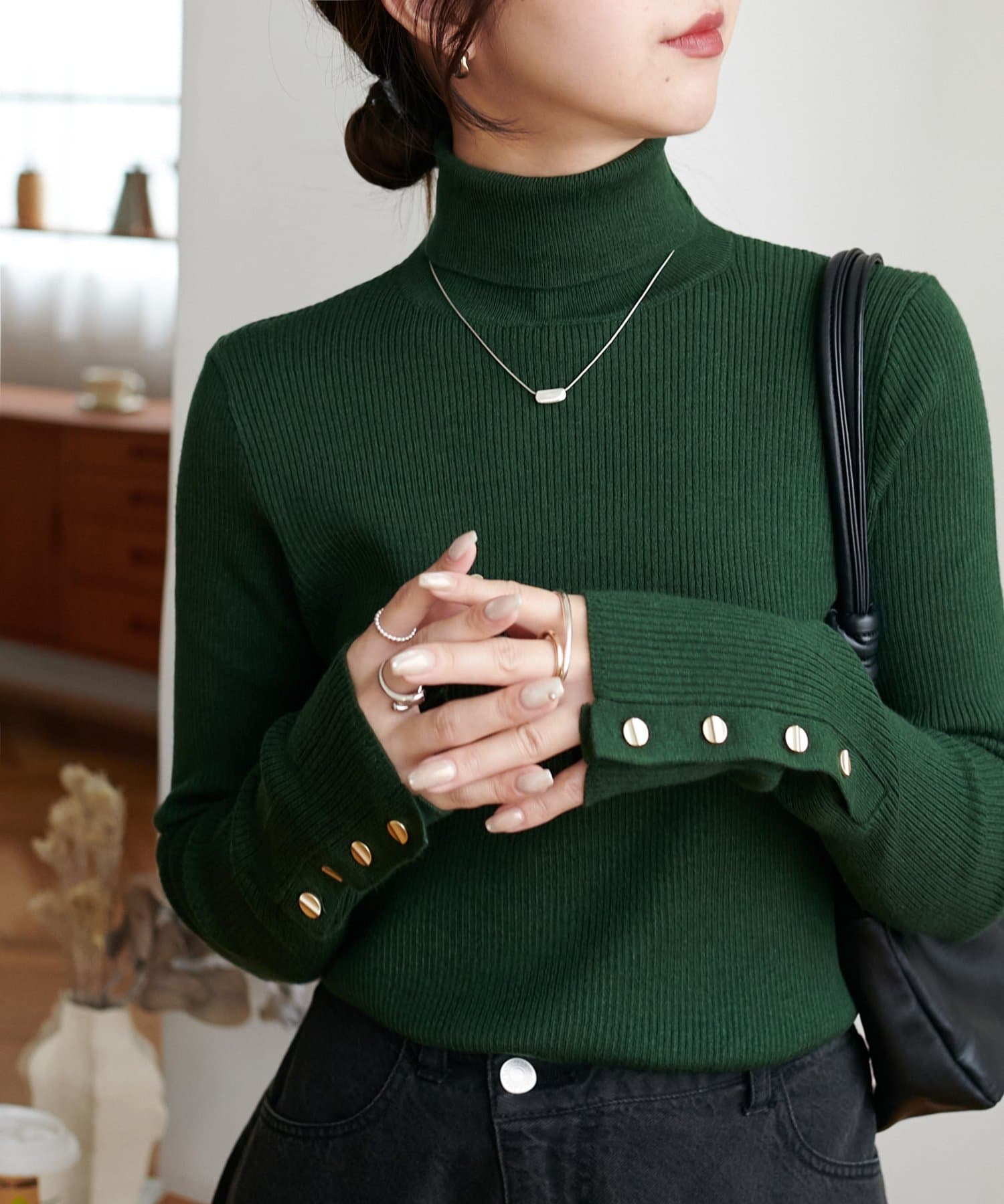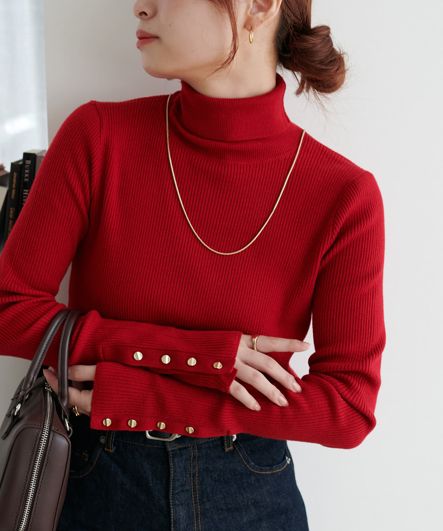 【新色追加/25色展開!】リブ袖口ボタンタートル《WEB限定カラーあり》