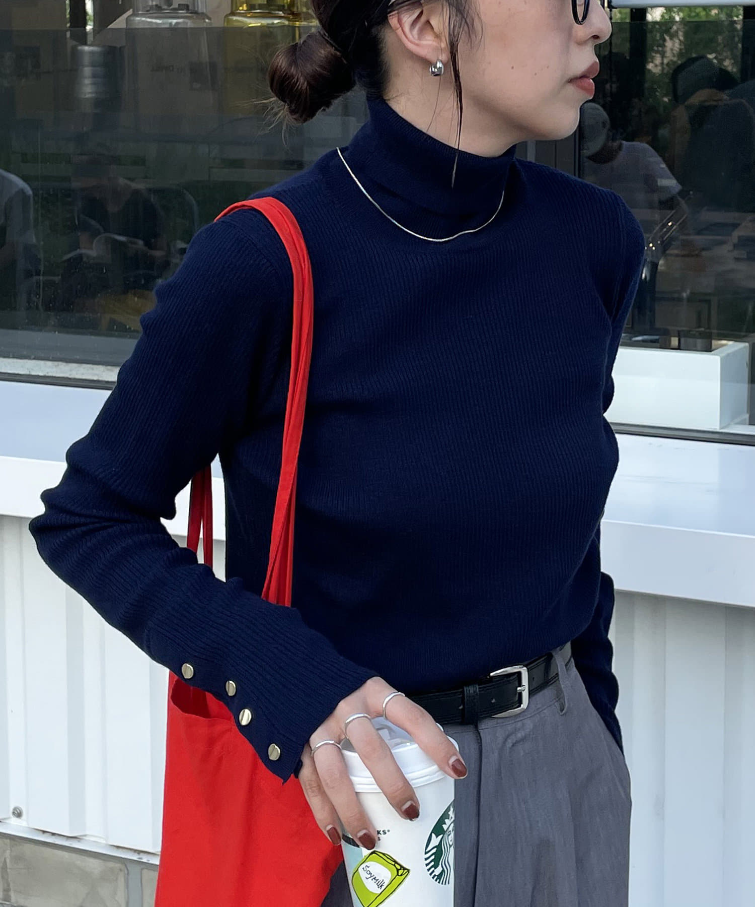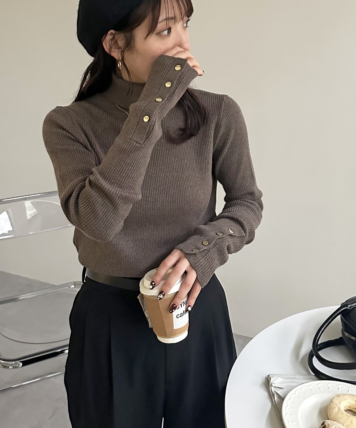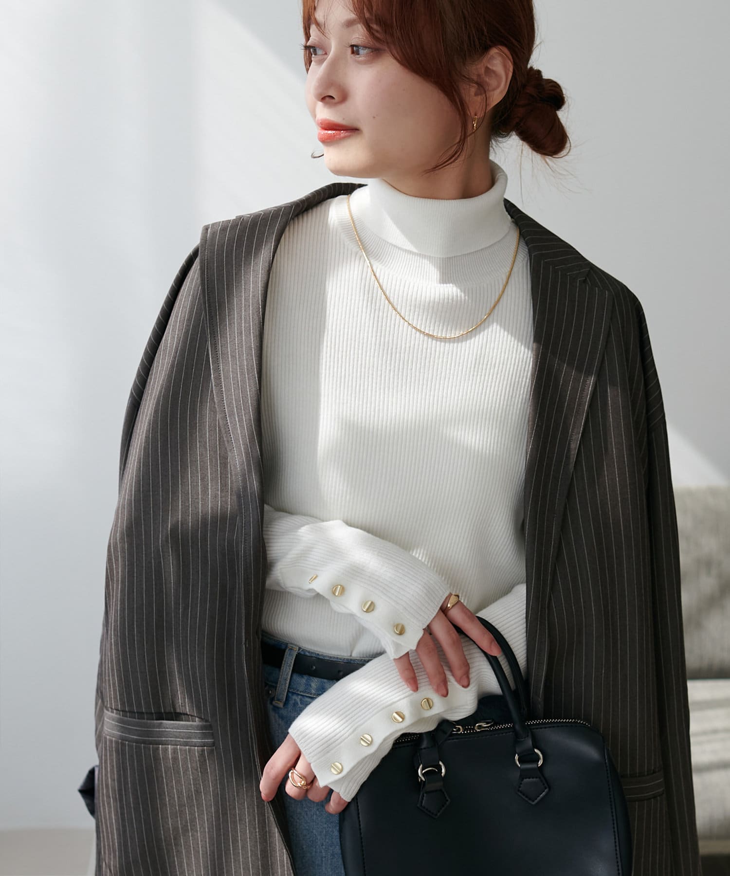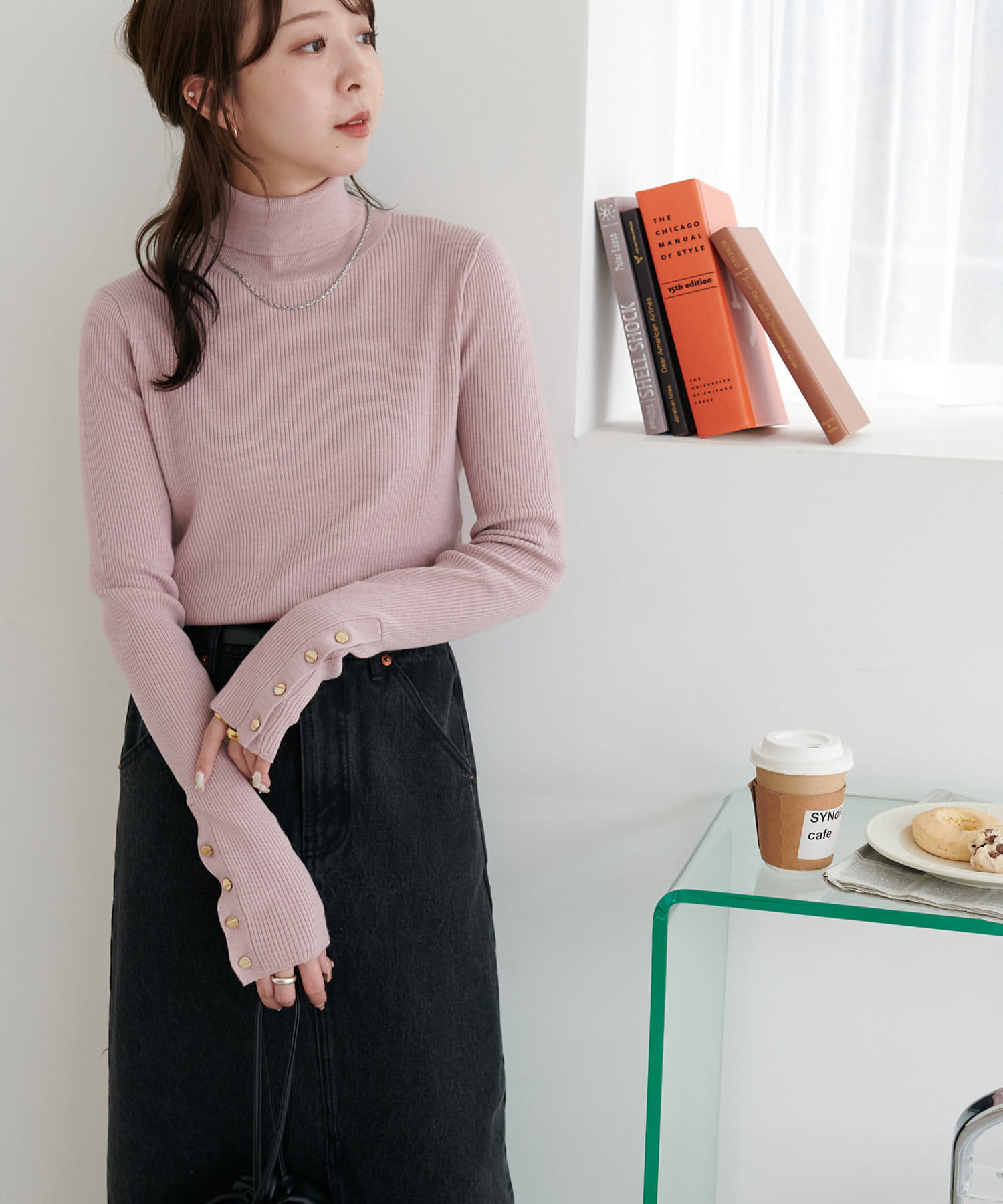 【新色追加/25色展開!】リブ袖口ボタンタートル《WEB限定カラーあり》