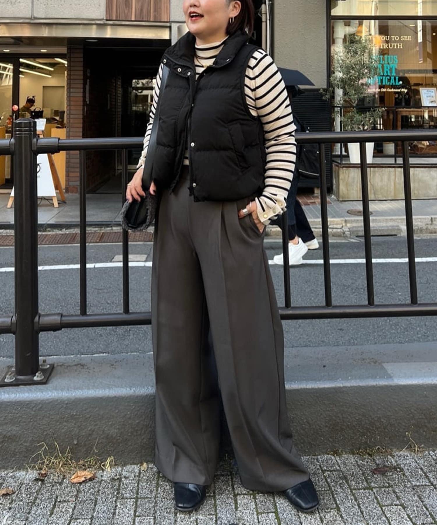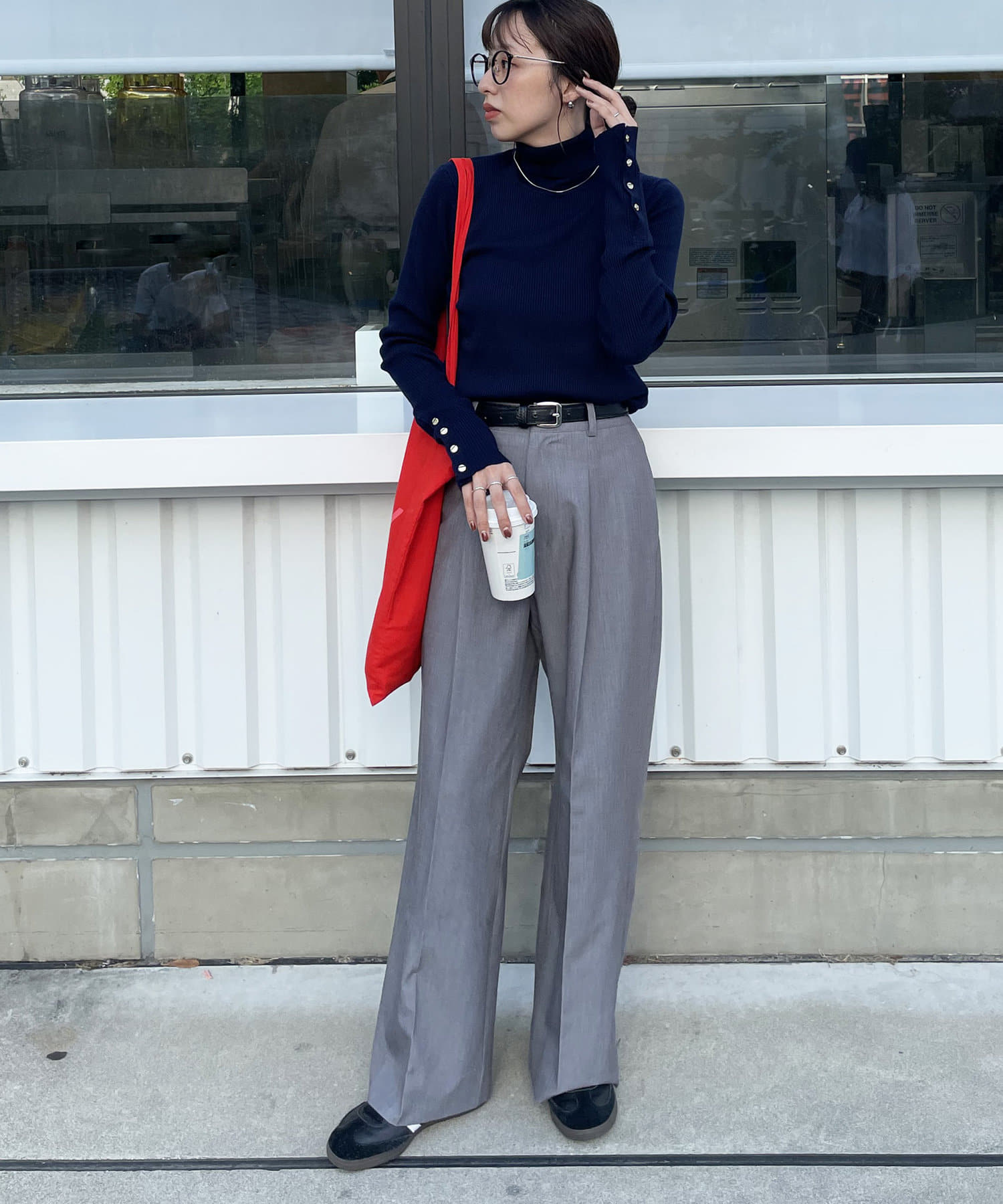 ネイビーはインスタでスタッフのゆゆさんが着用されていて、引き締まった印象になられていたので、まずはネイビーを購入しました。