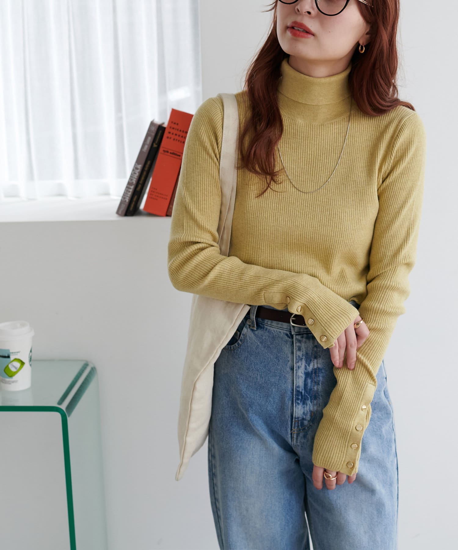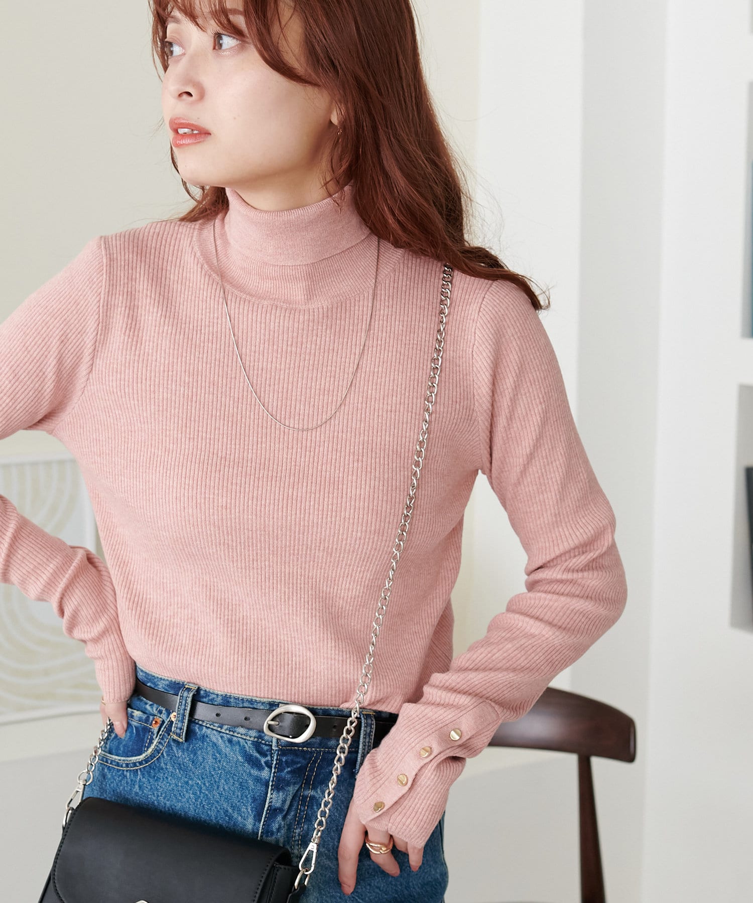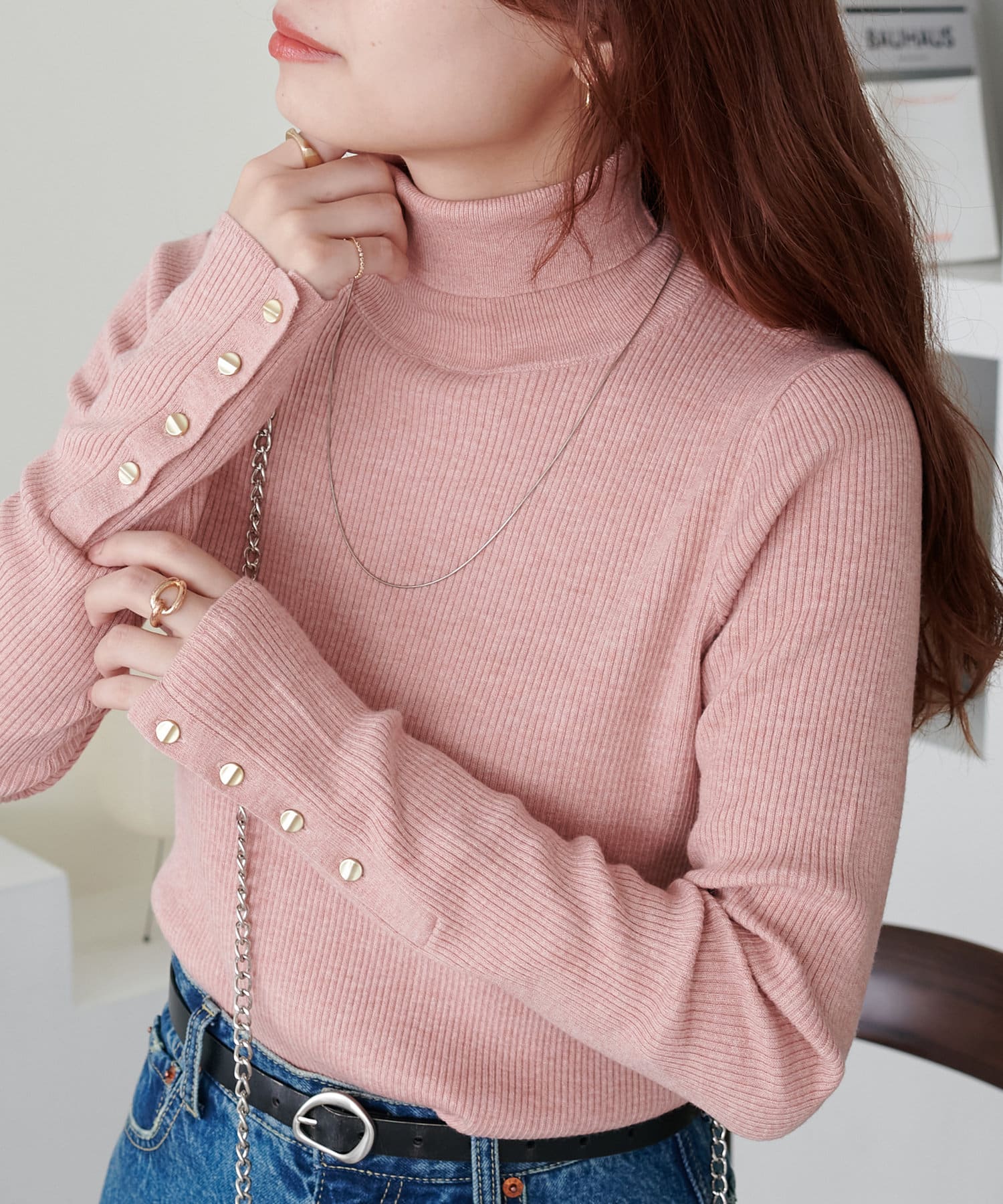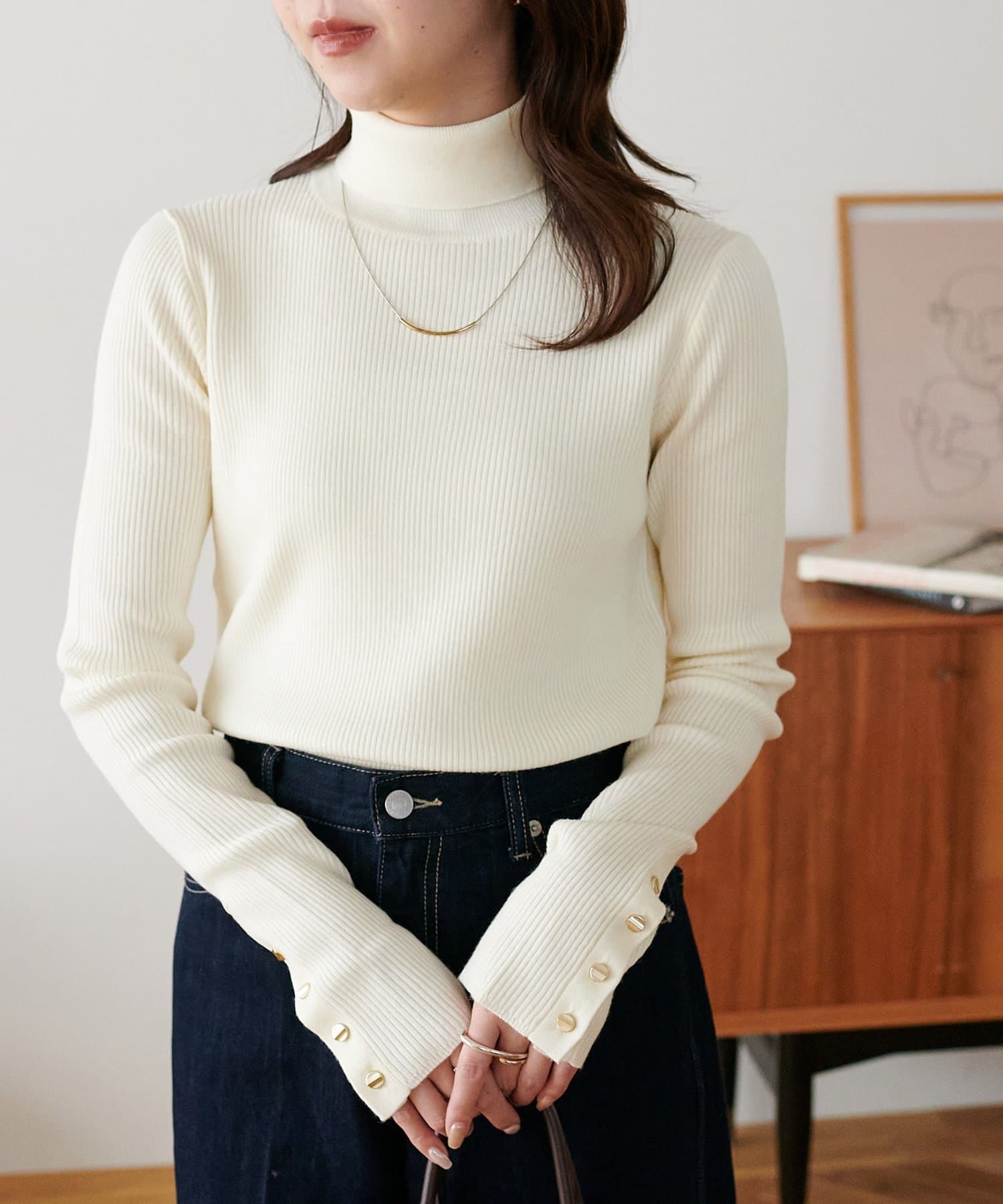【リバイバル/WEB限定】リブ袖口ボタンタートルネックプルオーバー