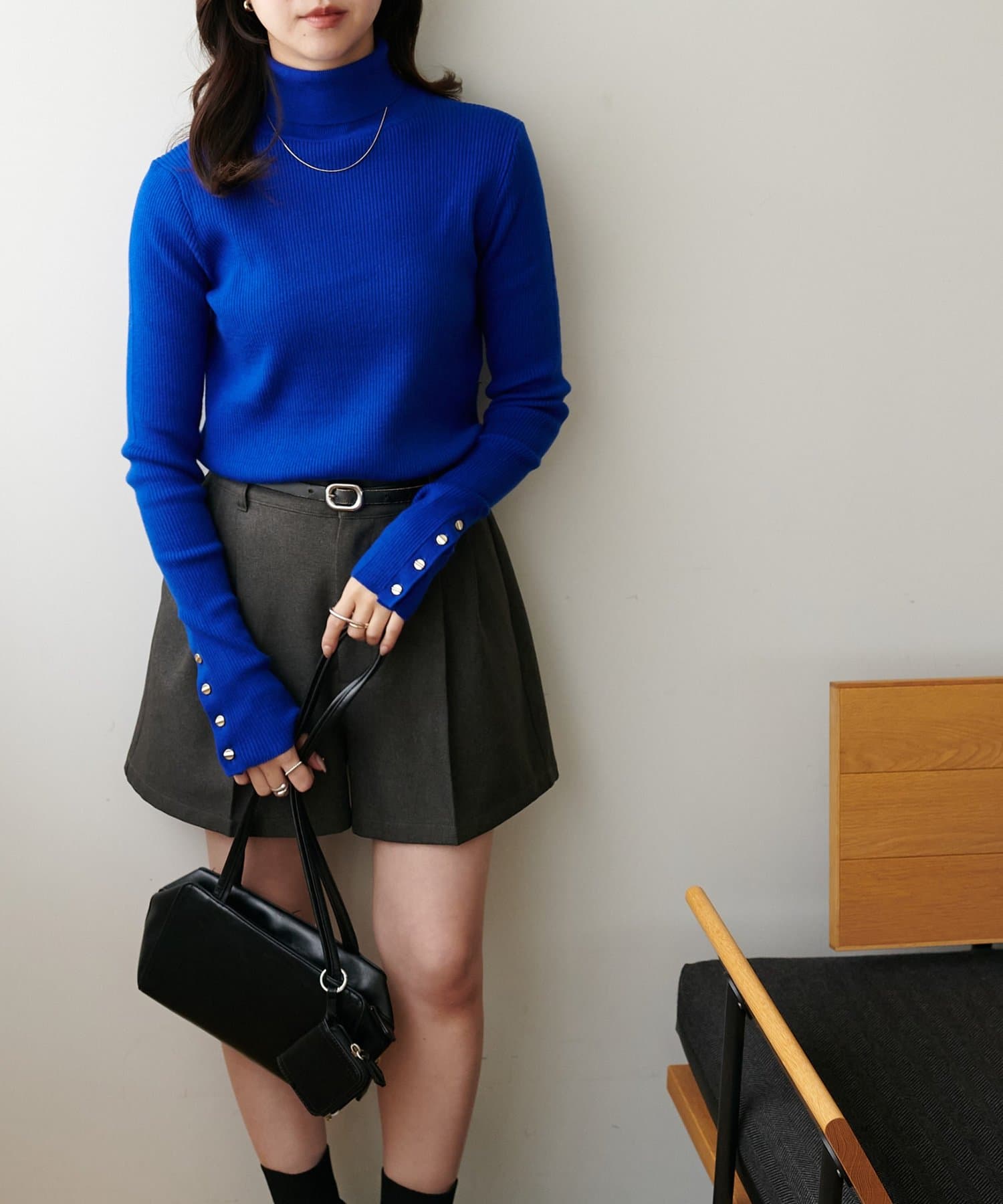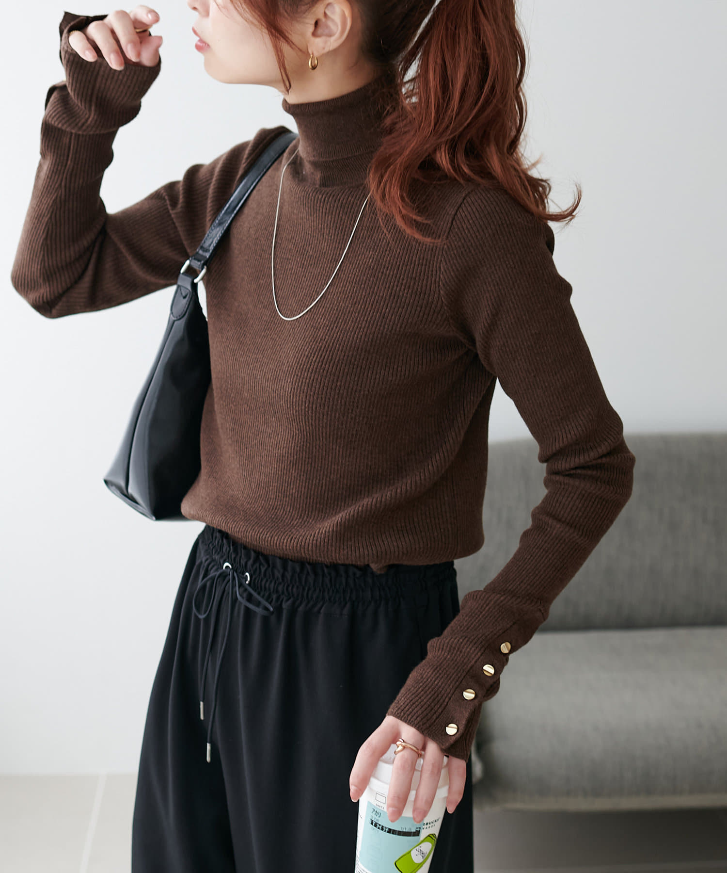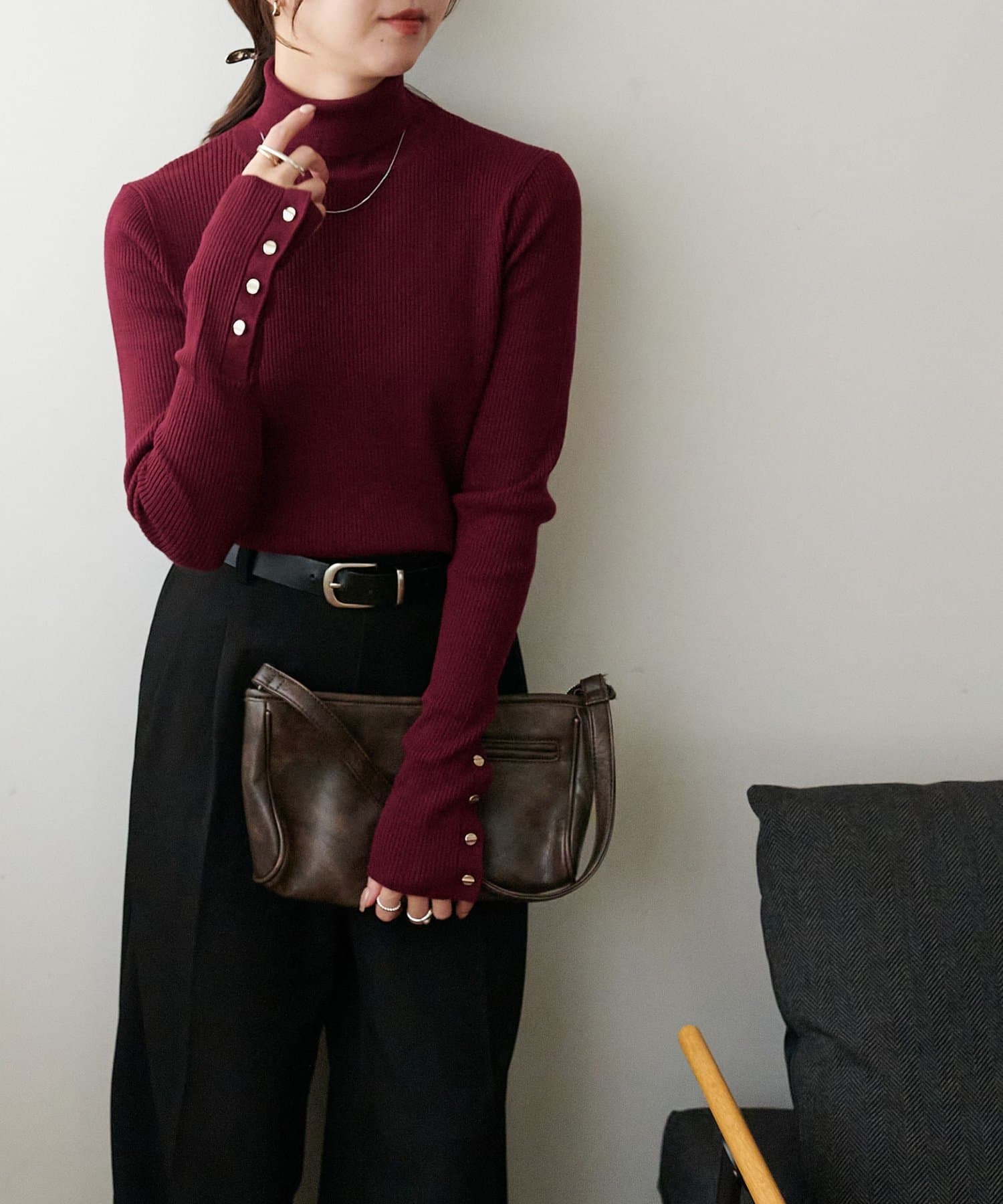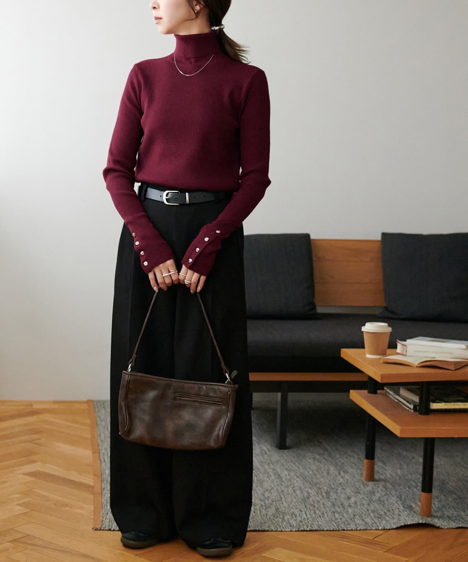 【リバイバル/WEB限定】リブ袖口ボタンタートルネックプルオーバー