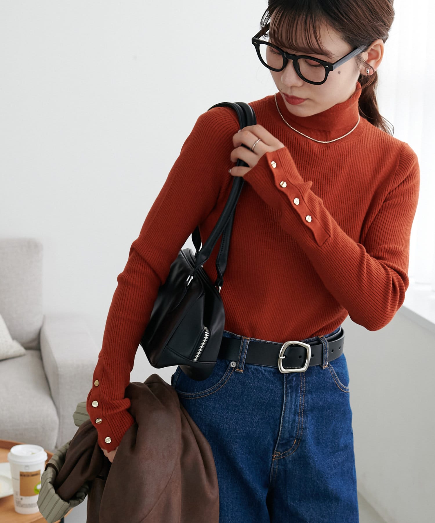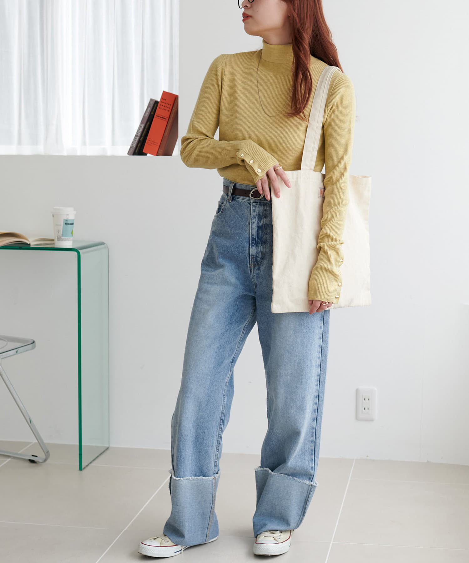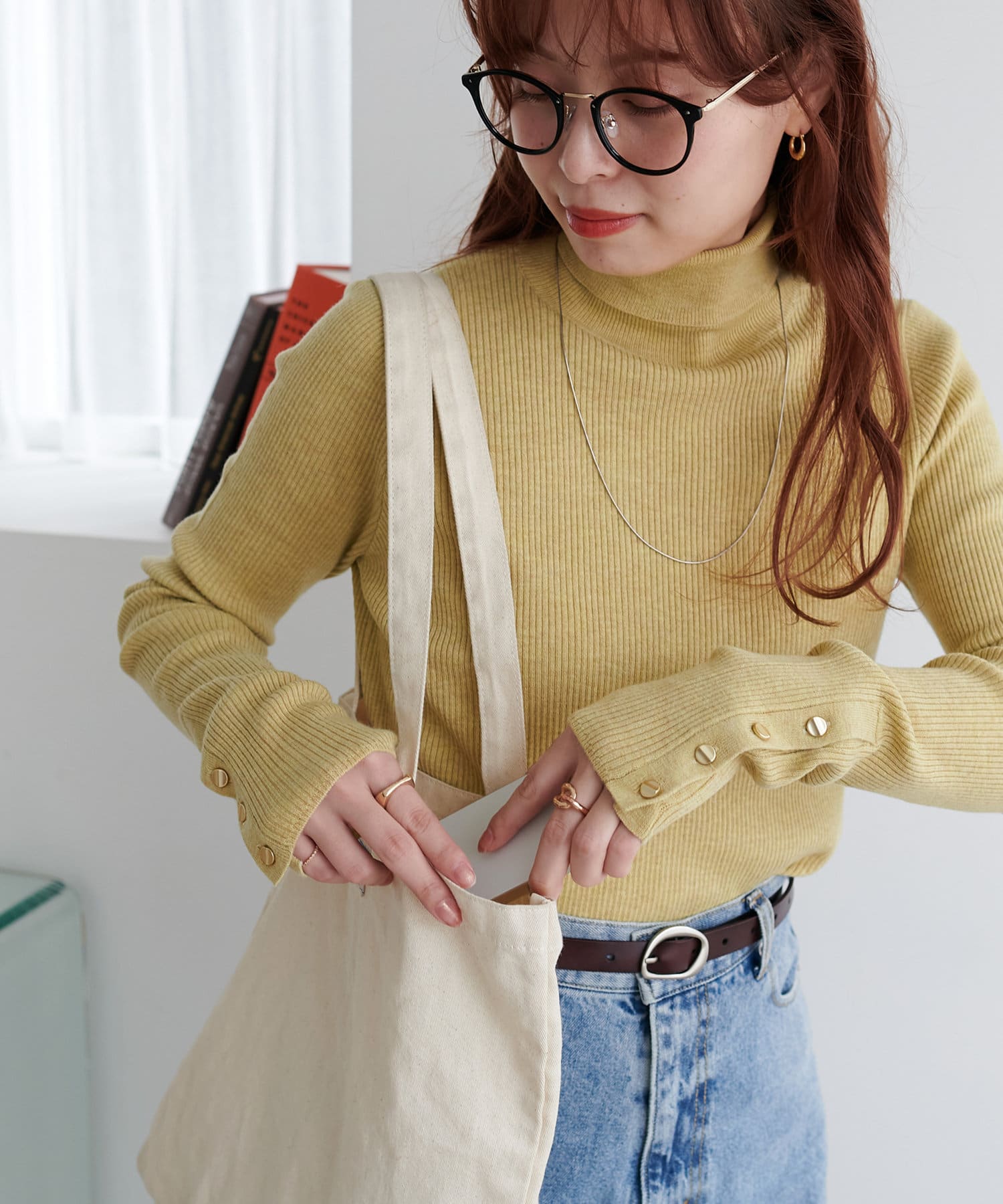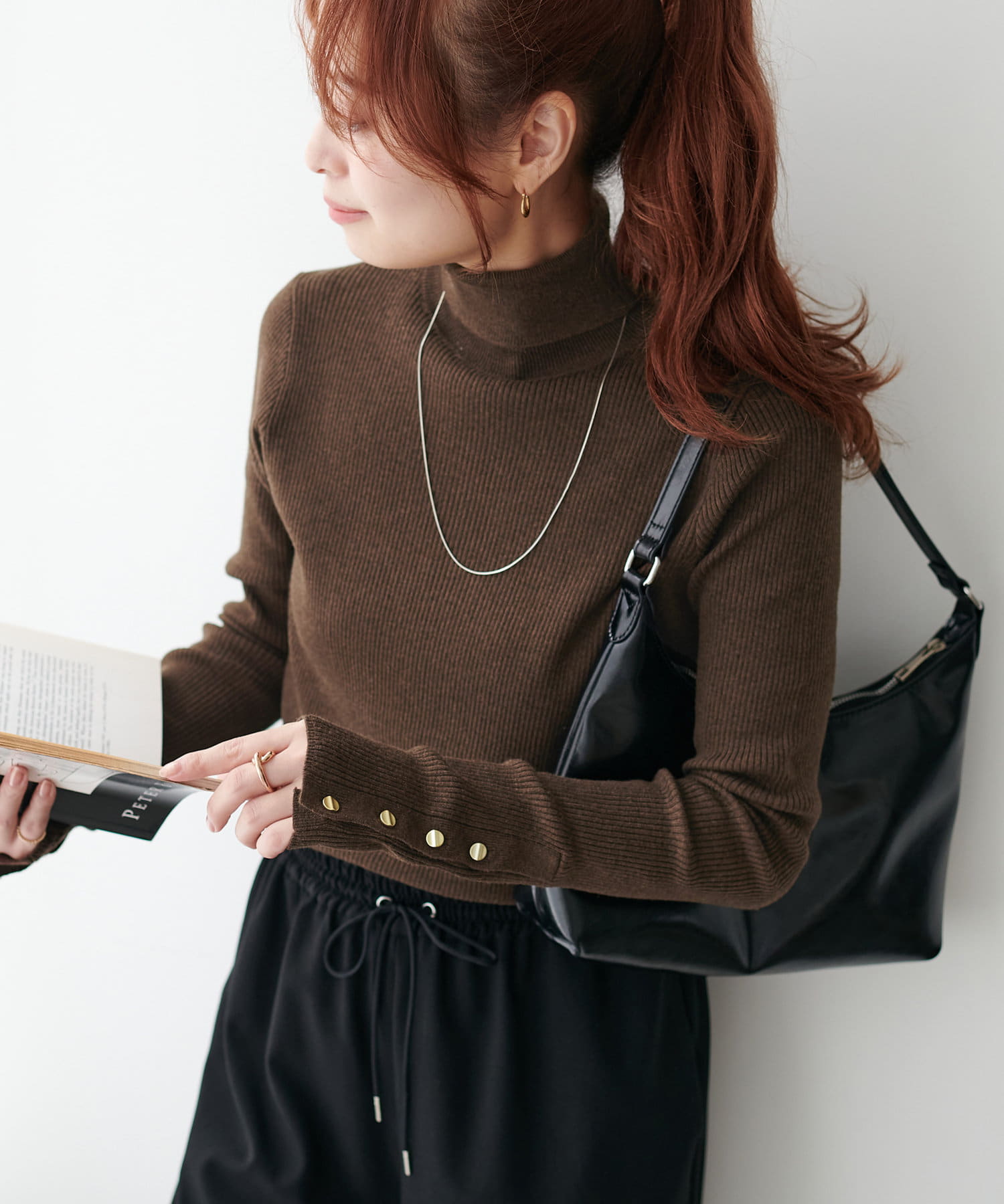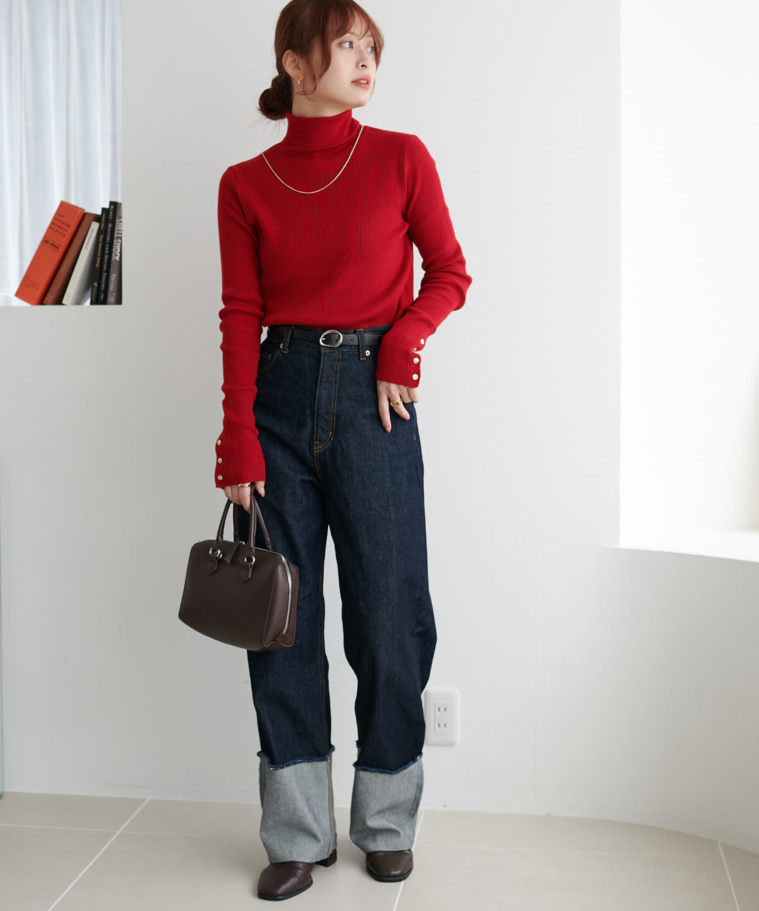 【リバイバル/WEB限定】リブ袖口ボタンタートルネックプルオーバー
