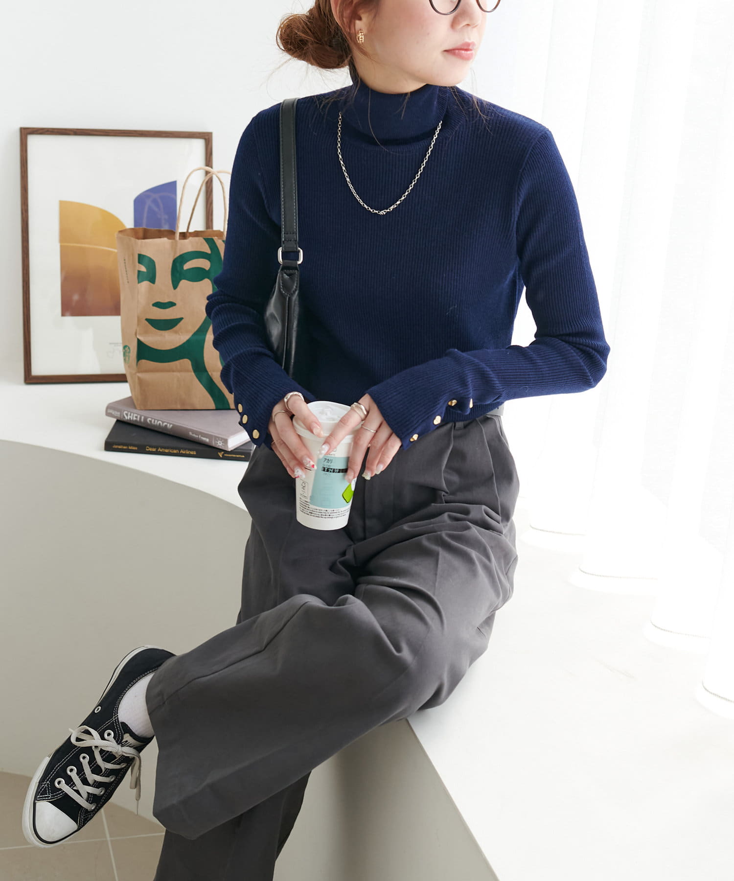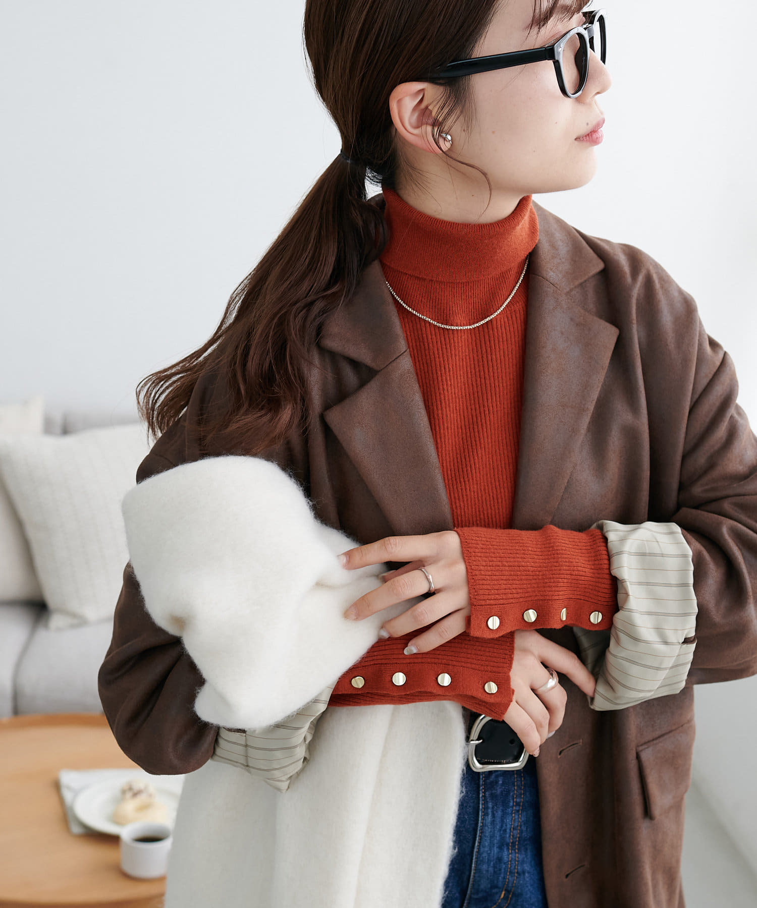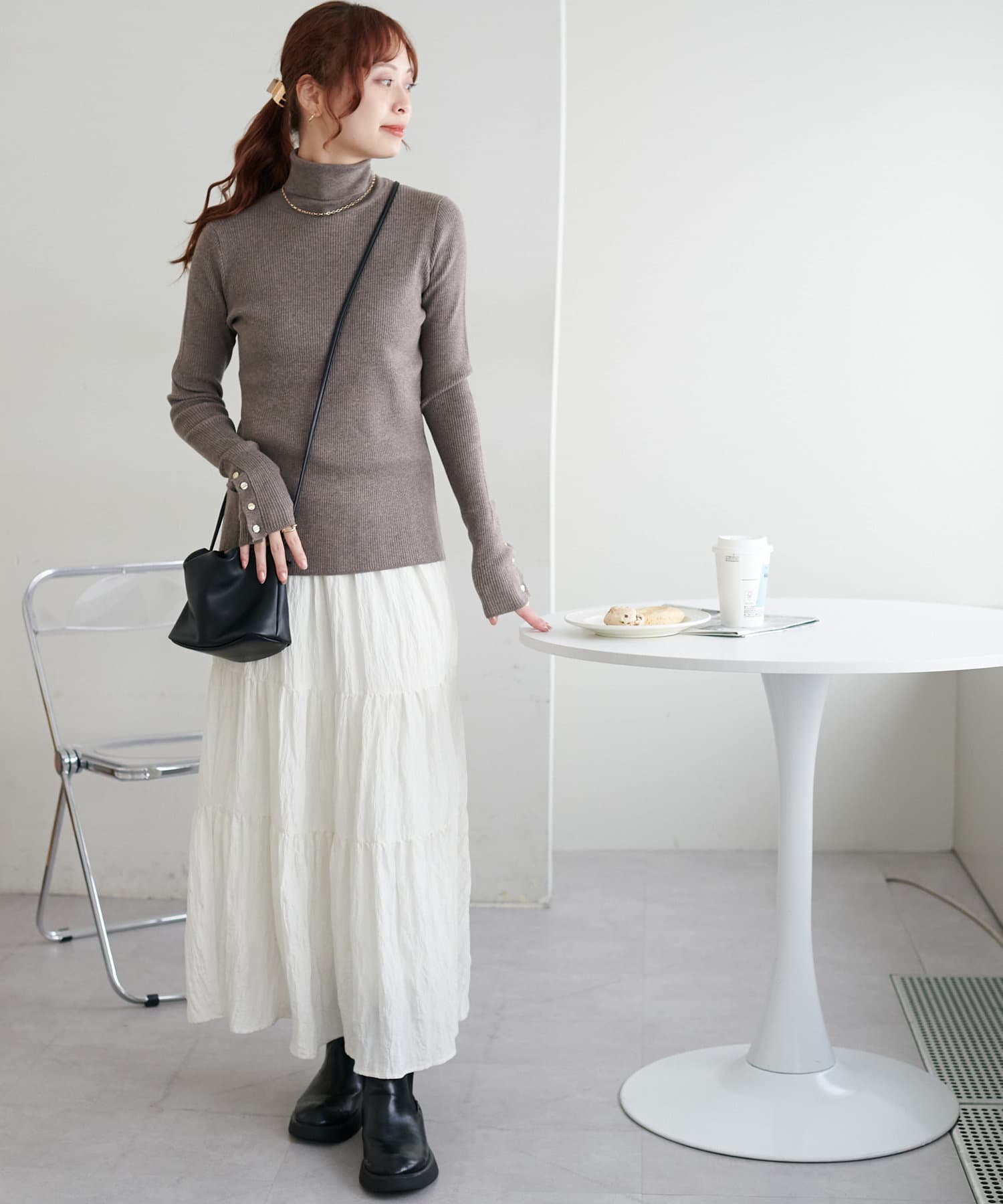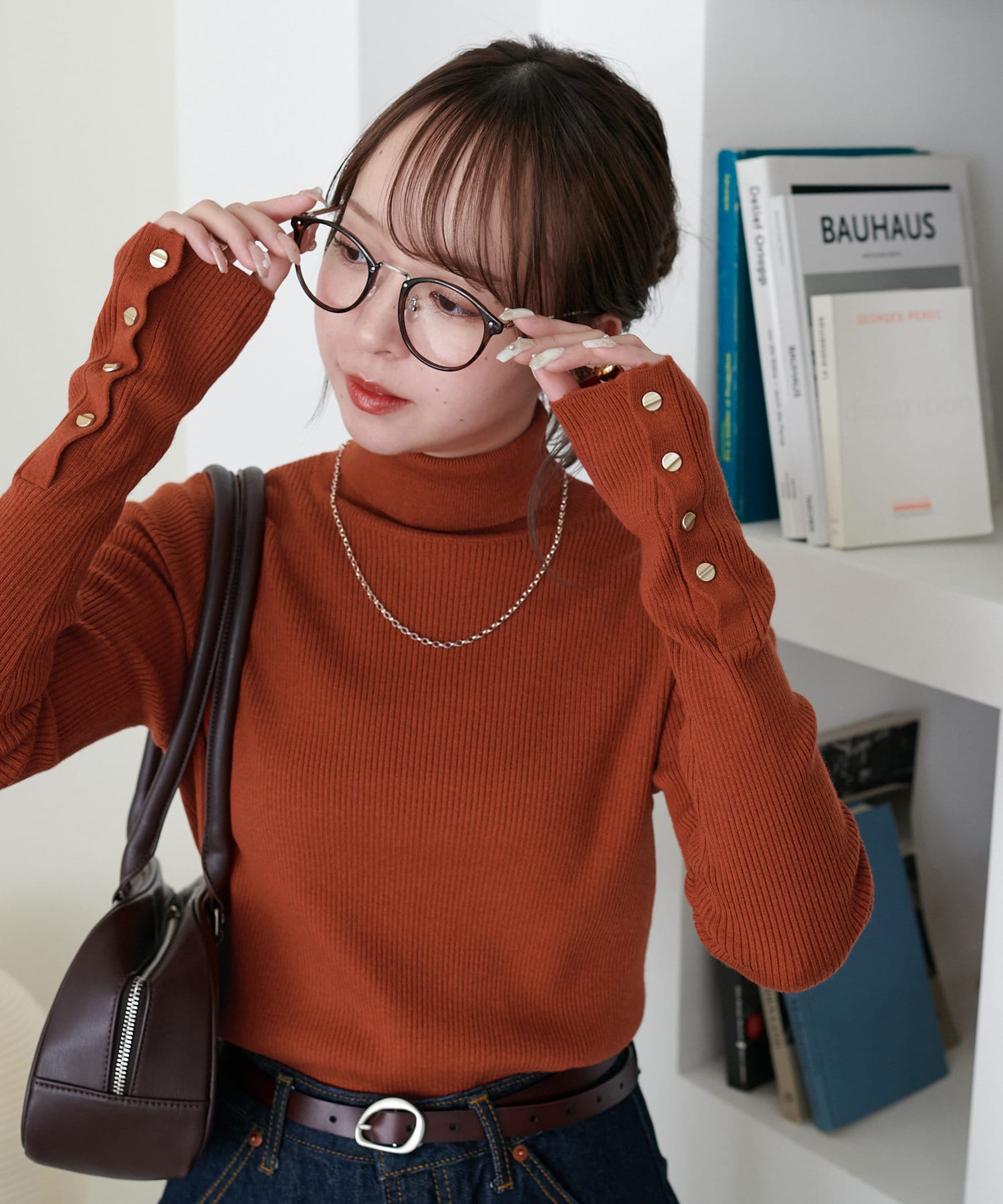 【リバイバル/WEB限定】リブ袖口ボタンタートルネックプルオーバー