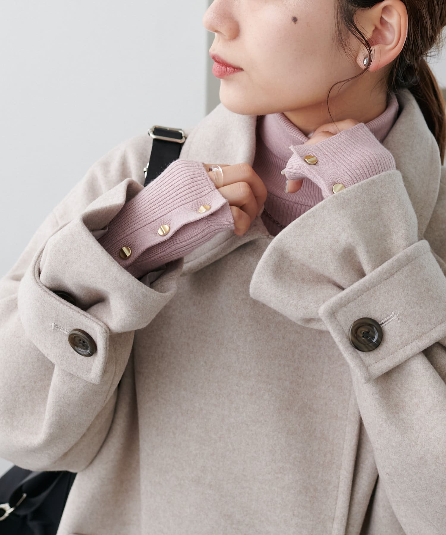 149cmスタッフ:袖口はボタン留めになっているので、外してスリットのようなアレンジも楽しめます♪