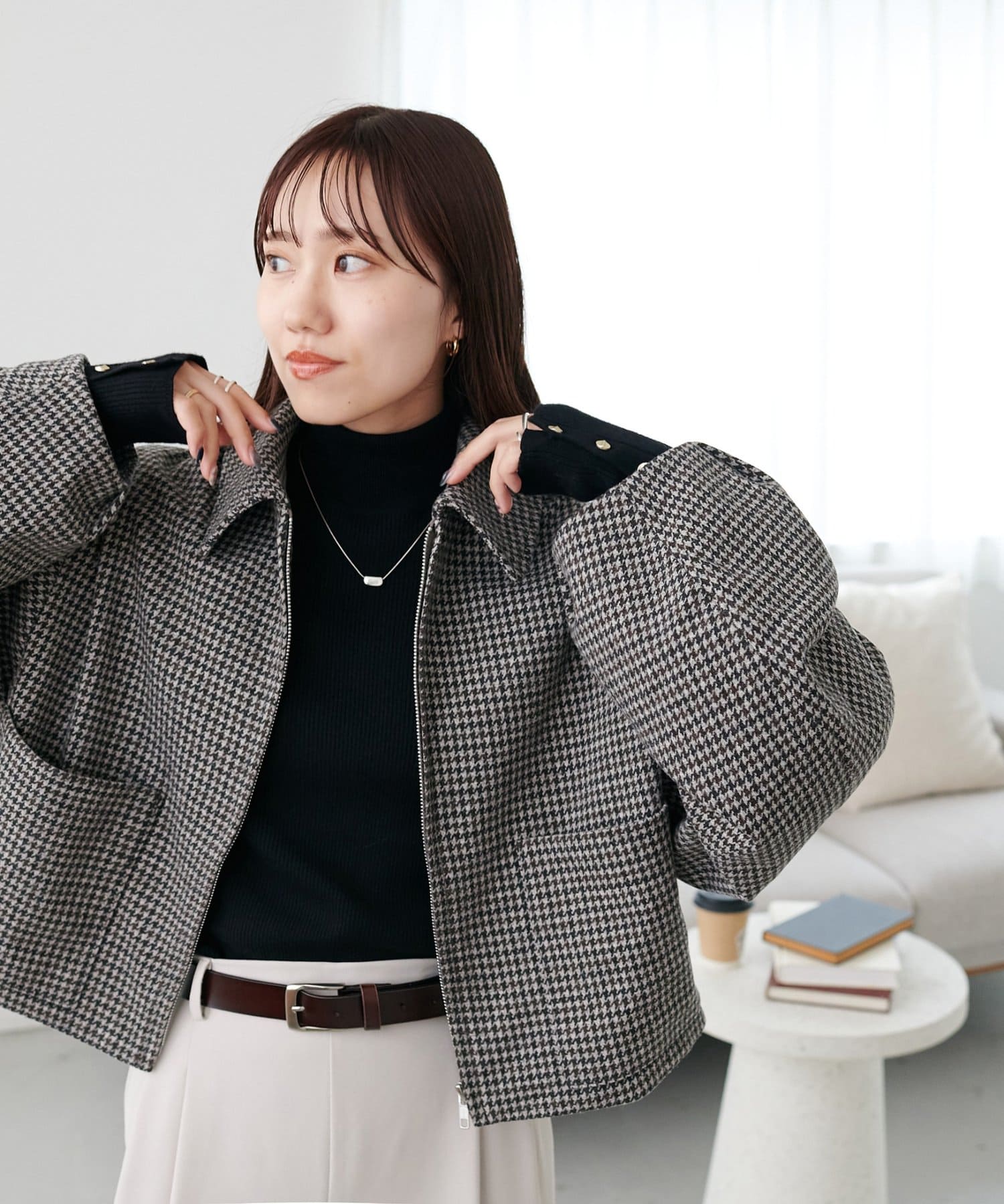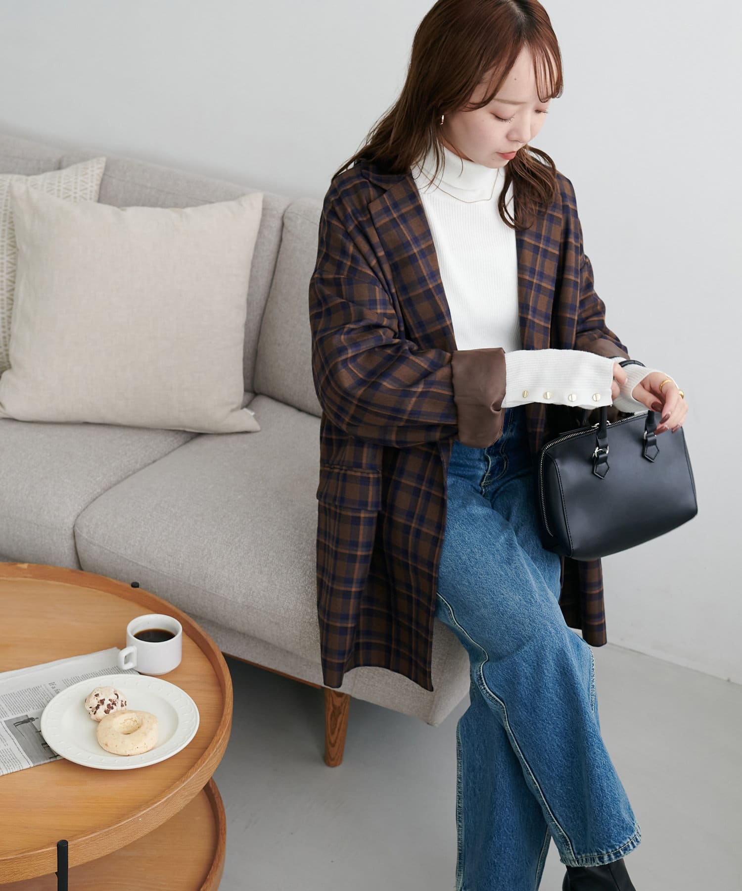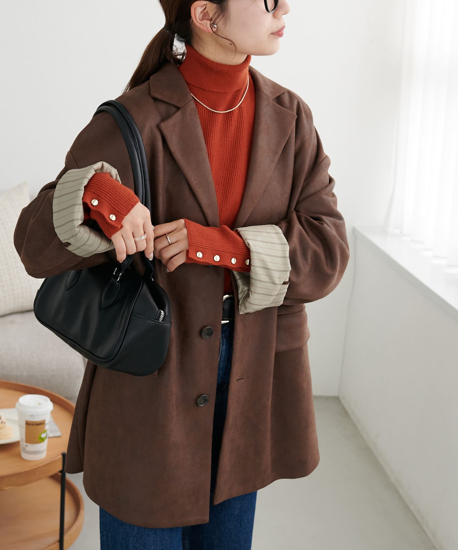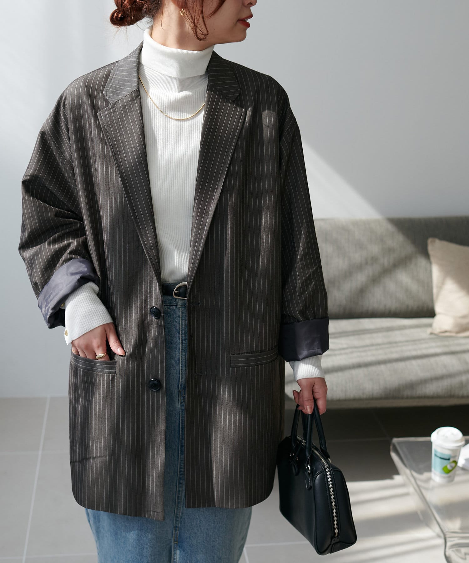 ゴールドのボタンはマットに仕上げたことで、コーデに馴染みやすく柔らかな印象をプラスします♪
