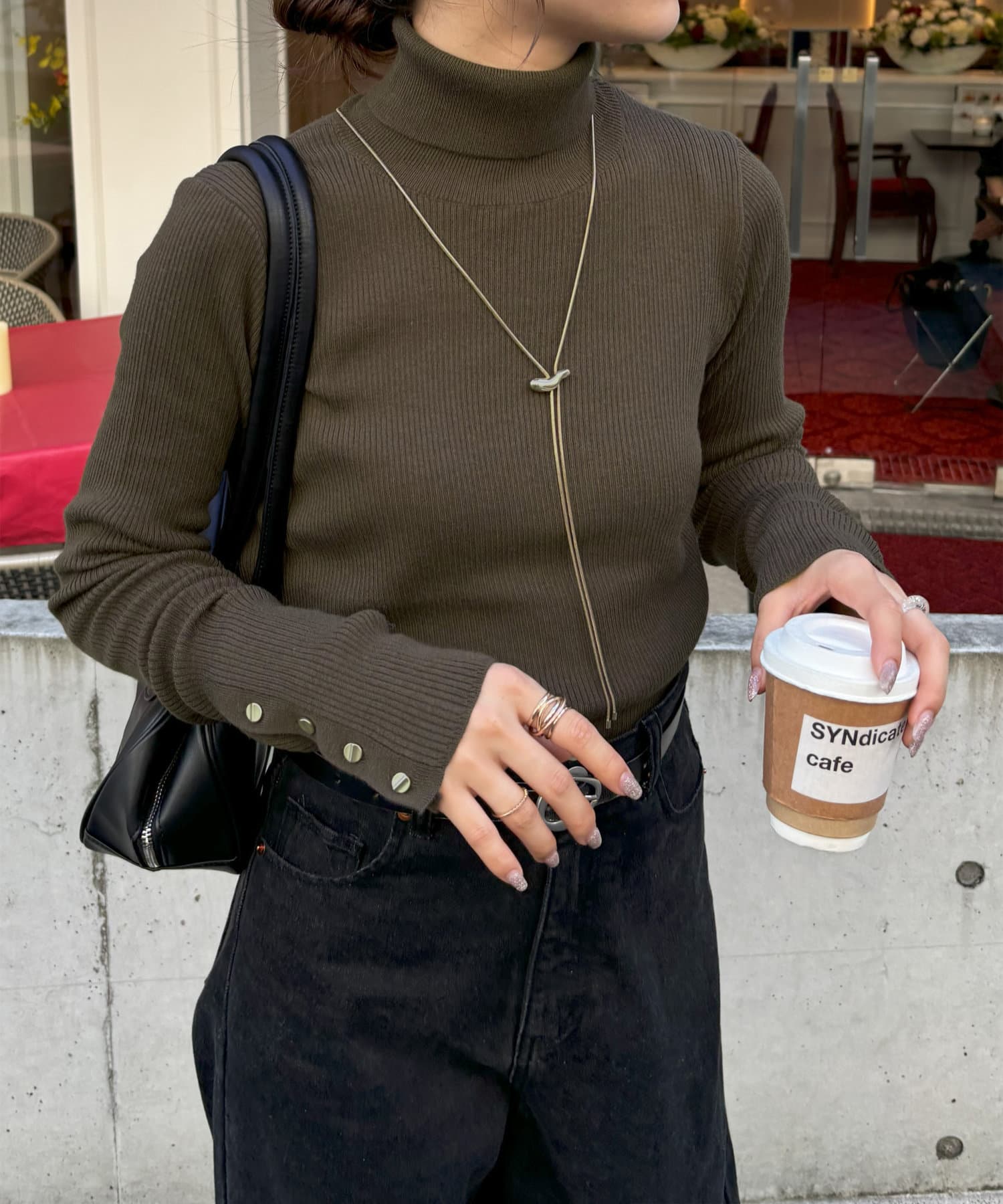 体に程よくフィットするリブ編みで、伸縮性もあるので着心地も抜群◎タートルネックで首元まで暖かく防寒性にも優れています。