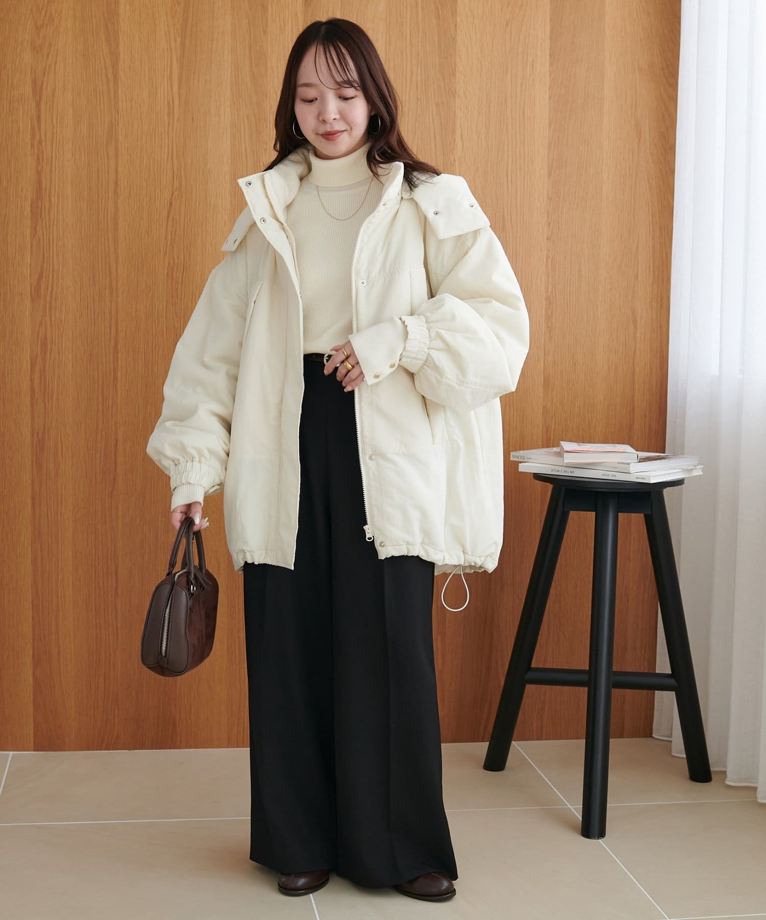 購入場所:パルクローゼットサイズ感も大き過ぎず、小さ過ぎず、程よくフィット感があり、着膨れせずにキレイなラインです。