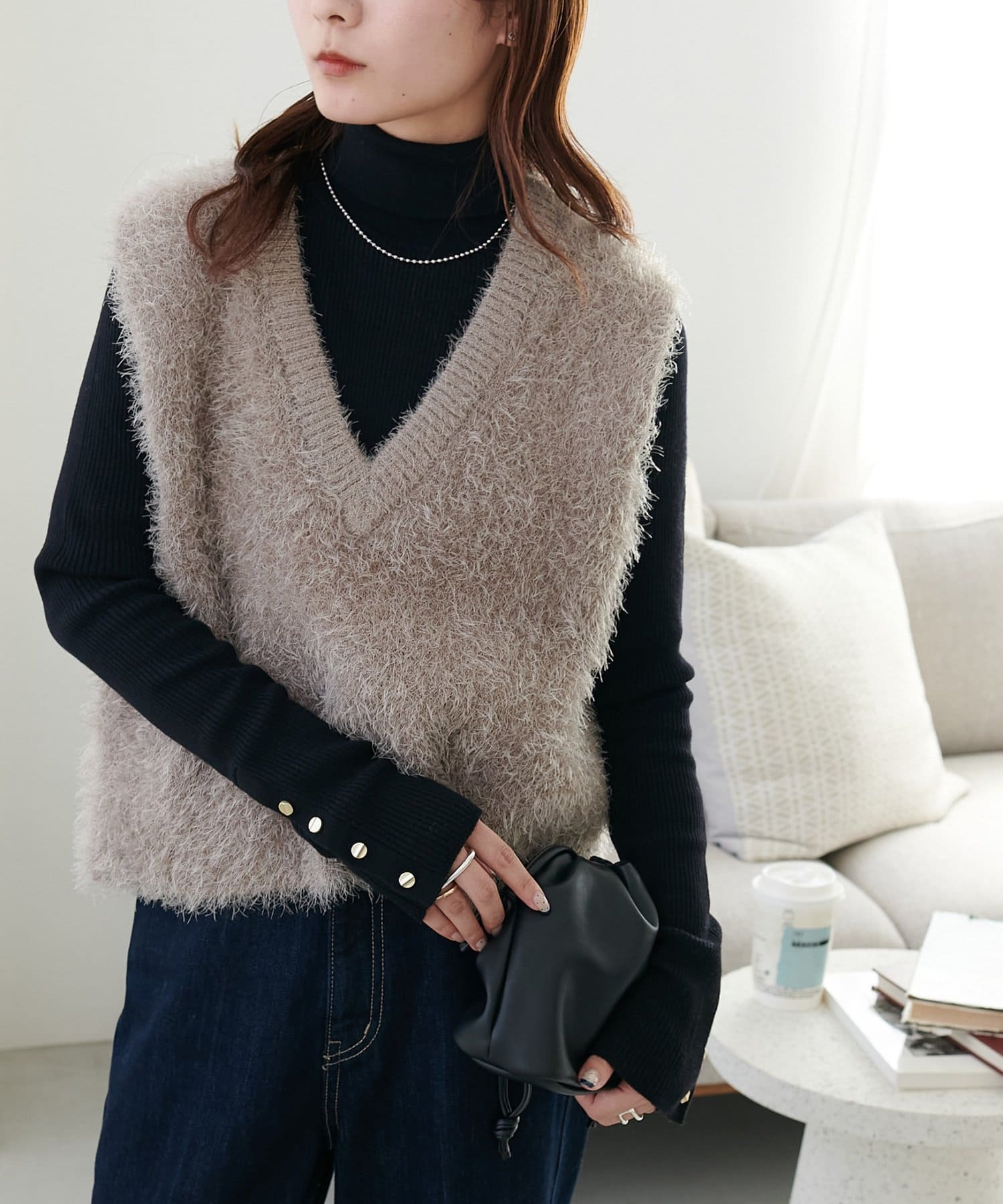 前後2WAYフェザーヤーンショートベスト