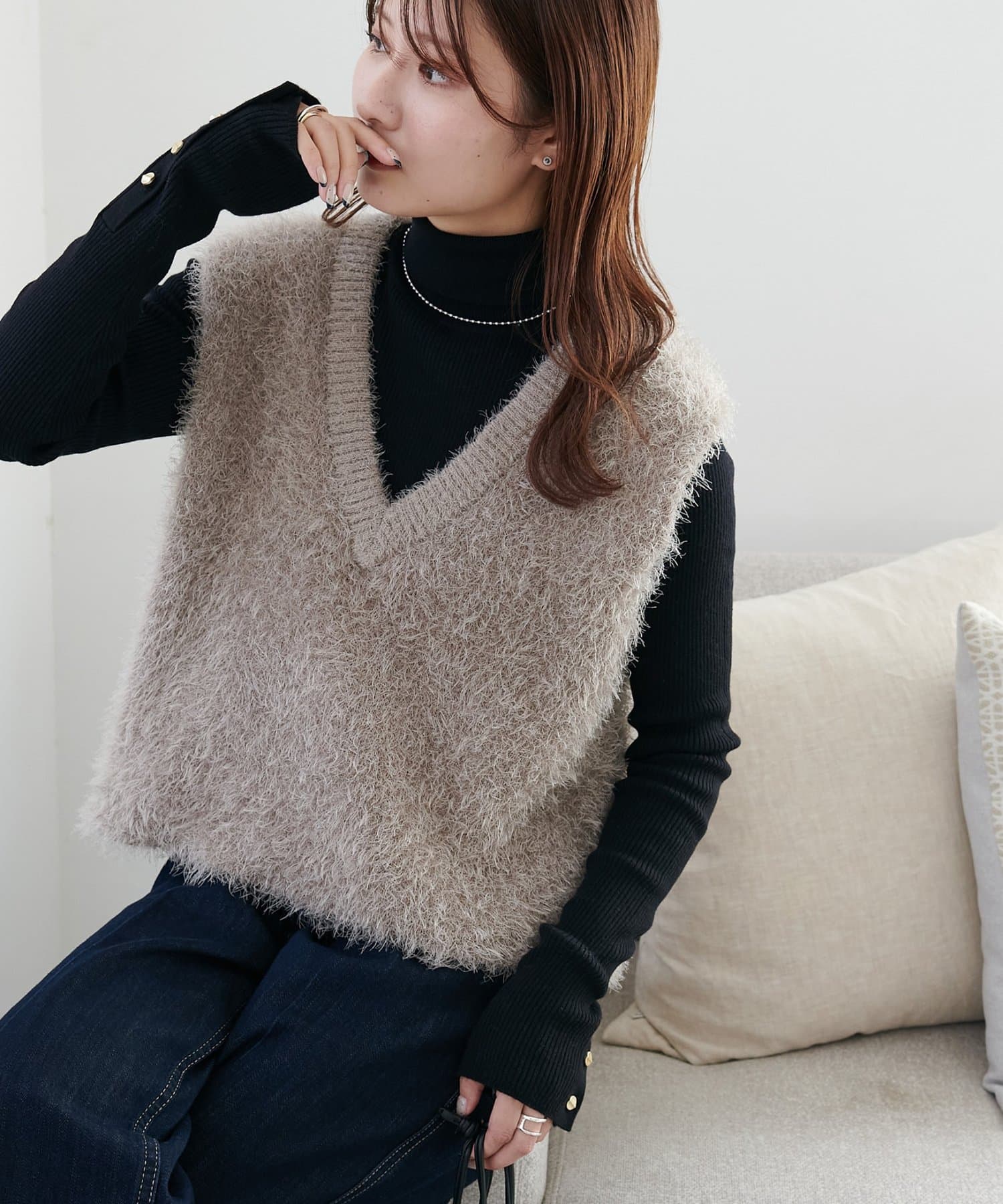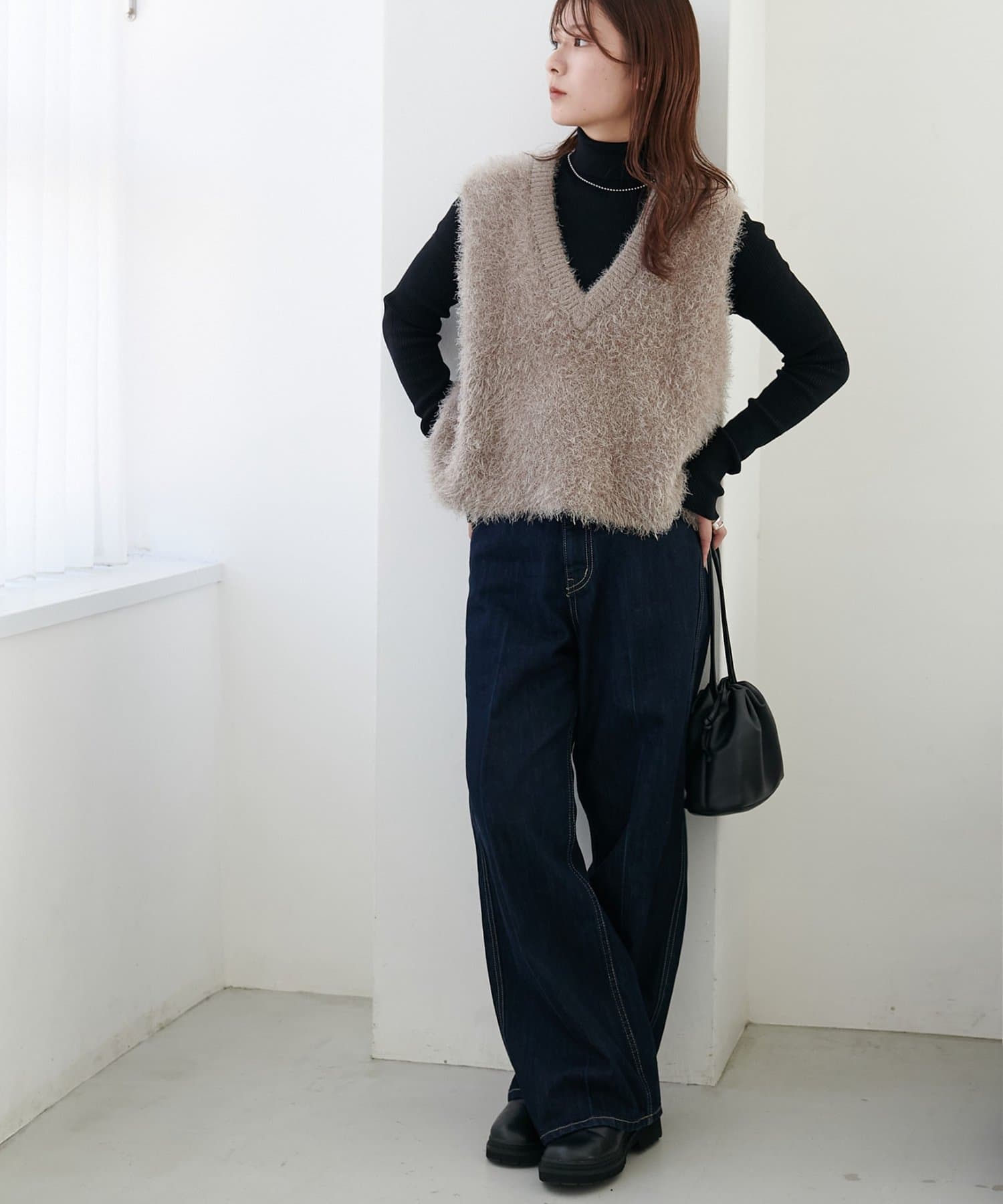 159cmスタッフ:チクチク感なく柔らかい肌触りで着心地良いです。どんなコーデにも合わせやすいので寒い時期のマストアイテムです!