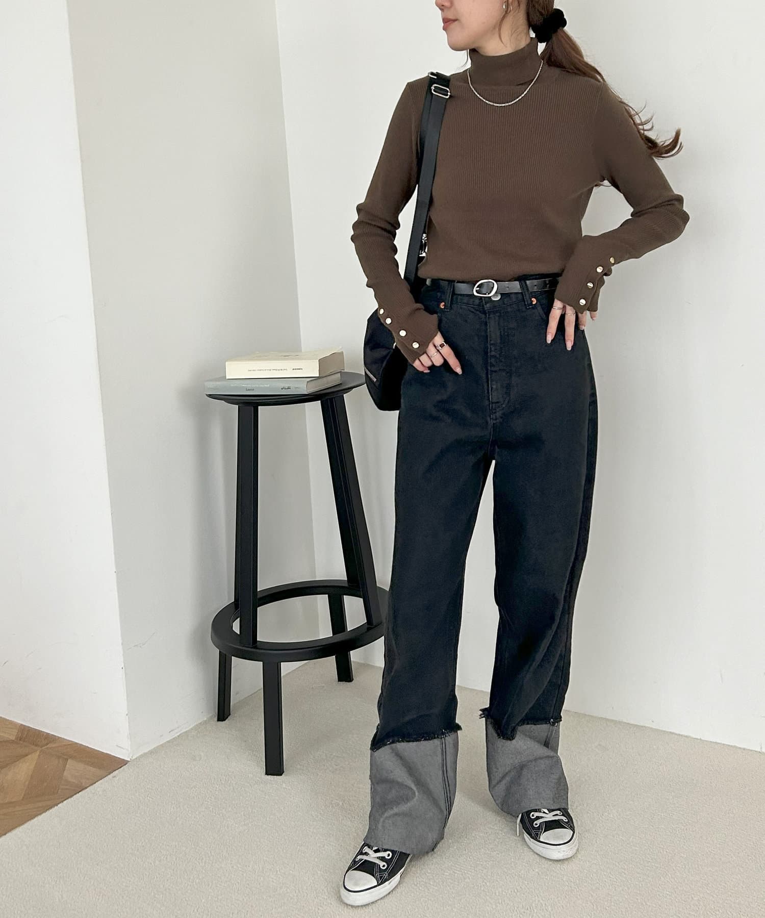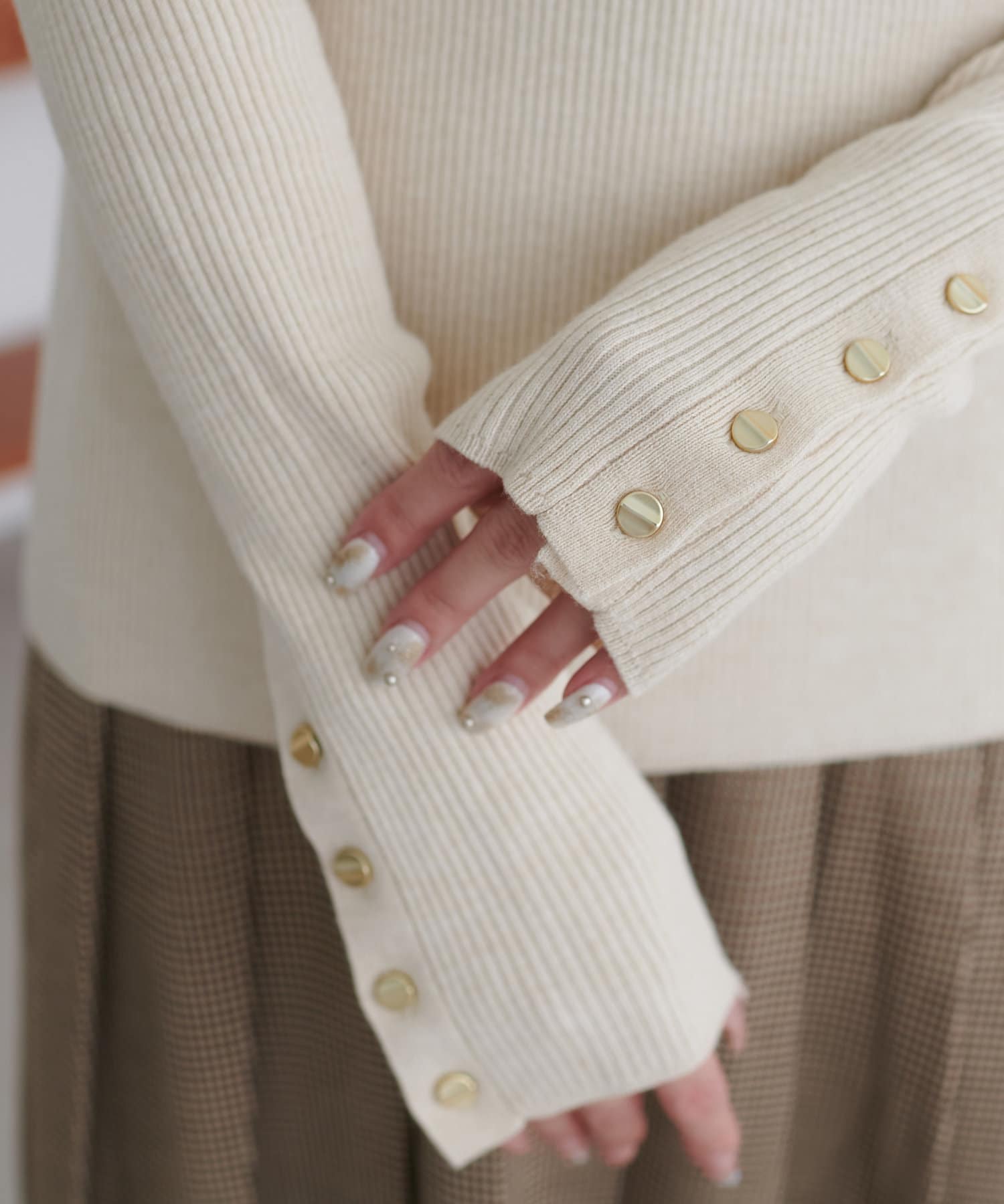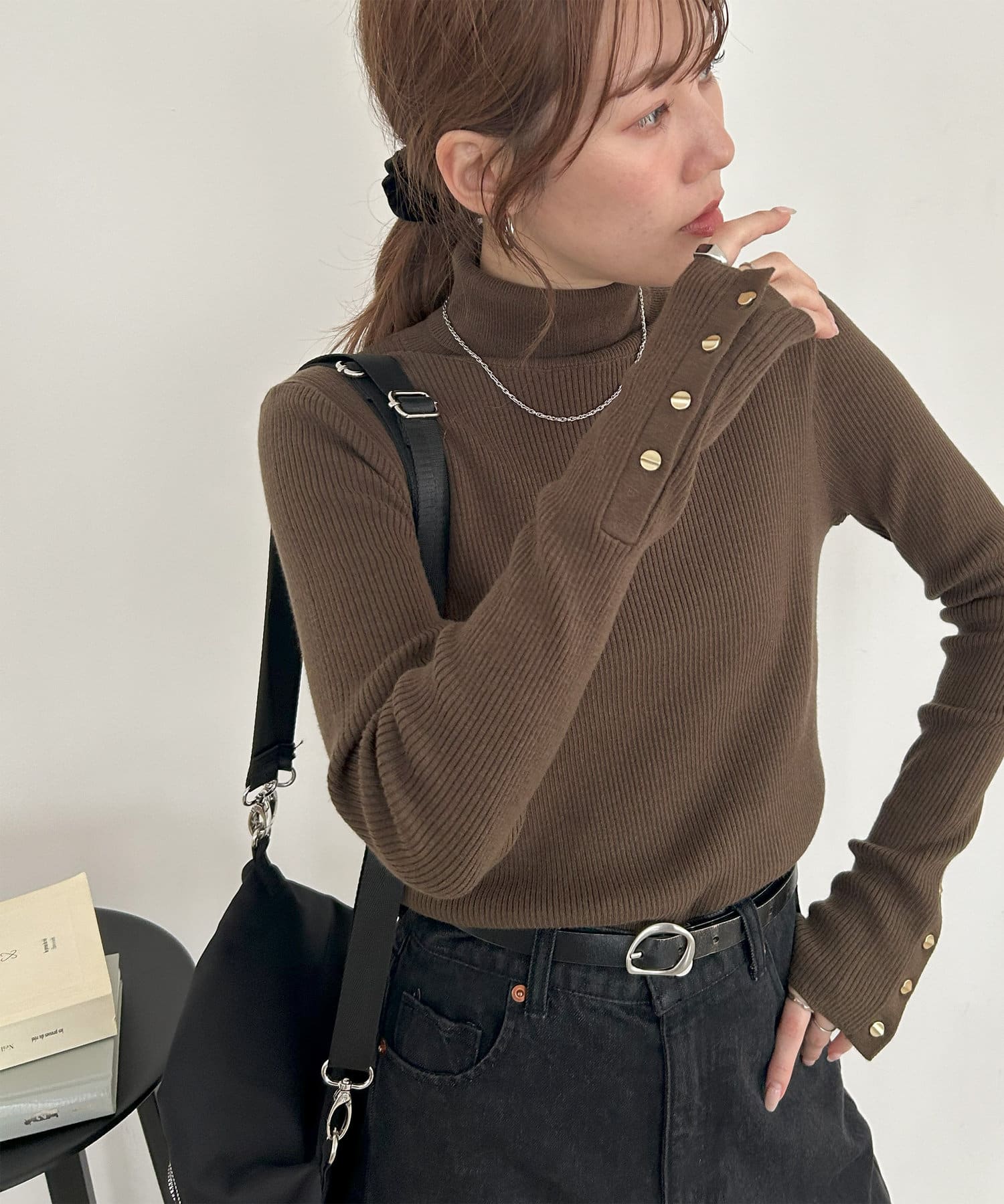 【newボタン/25色展開】リブ袖口ボタンタートル《WEB限定カラーあり》