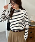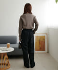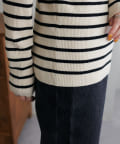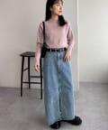 155cmスタッフ:ヒップが半分くらい隠れる丈感ですが、ボリューム感のないニットなのでインしてもごわつきにくくコーデに合わせた着こなしができます〇