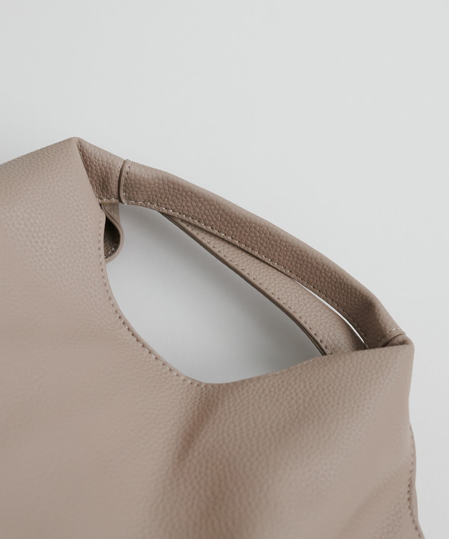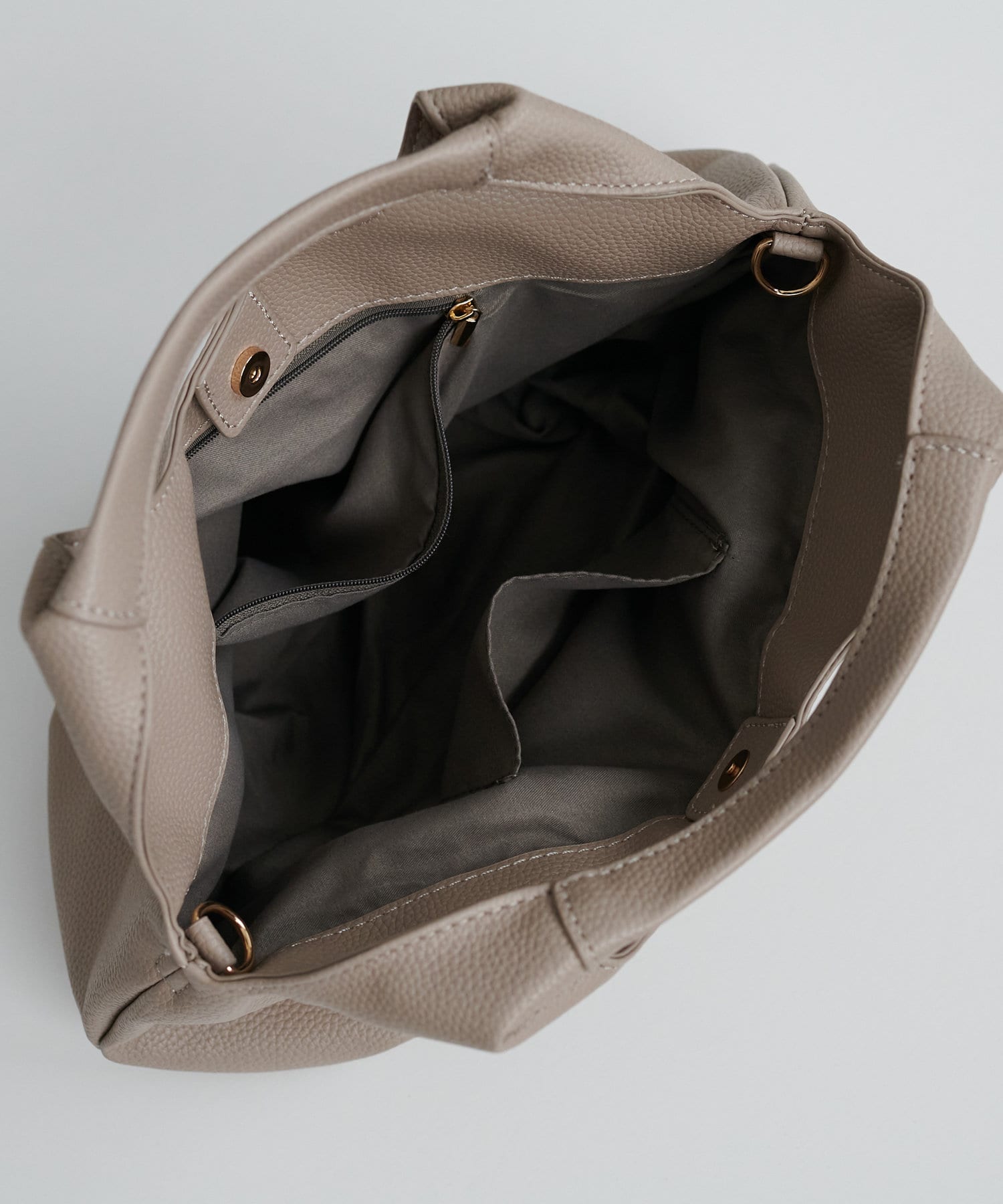 ふんわりと丸みを帯びたシルエットが魅力のバッグ。マチが13.5cmある為、600mlペットボトルや折りたたみ傘など必要なものがしっかりと入ります◎開口部にはマグネットボタンが付いているので簡単に開け閉めすることができます♪ショルダー紐は取り外すことが可能なので、外して小ぶりなトートバッグとしてもお使いいただける2WAY仕様となっております。シンプルなデザインなので様々なコーデに合わせやすいです♪