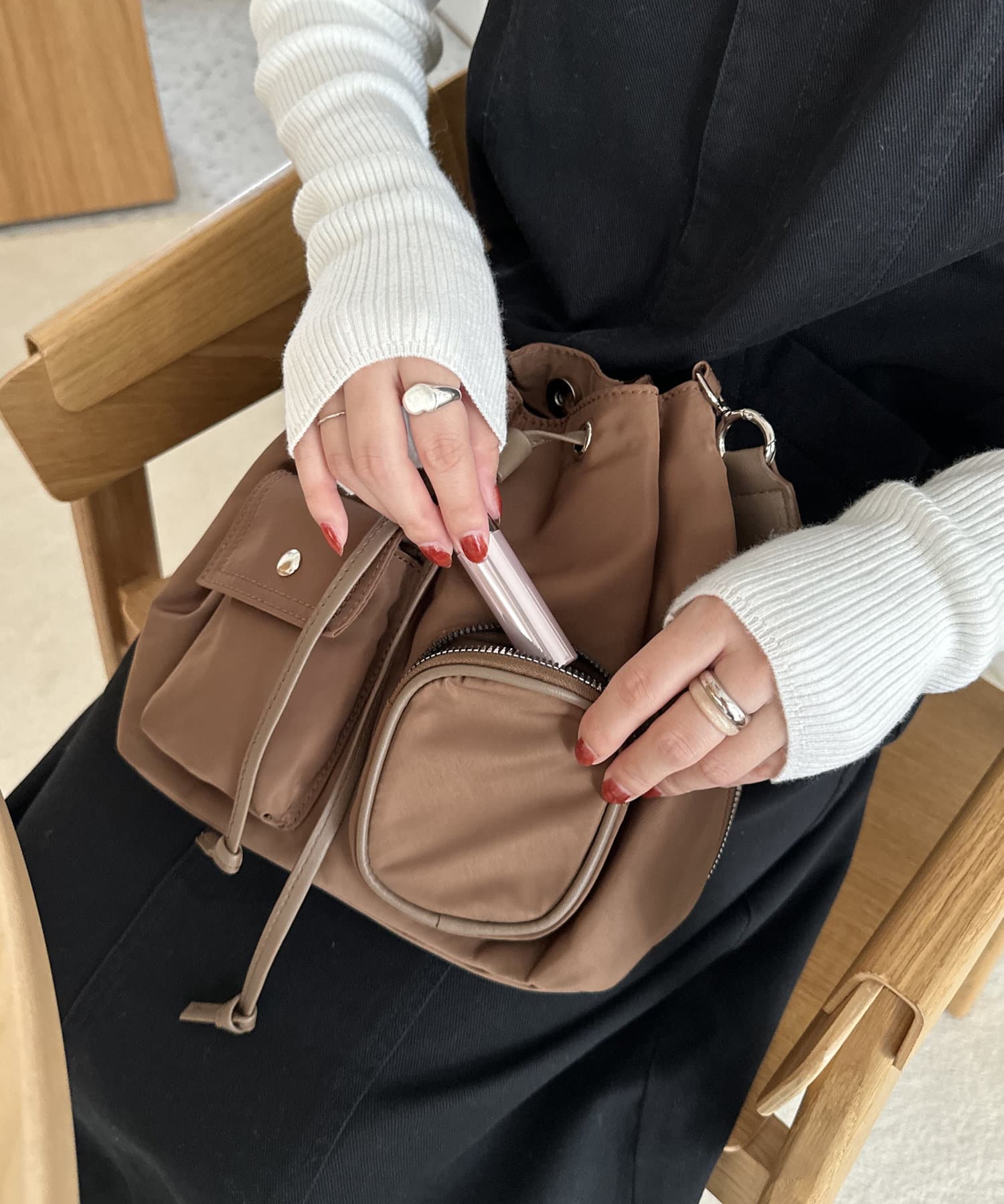 商品名の通り、ユーティリティ(有用性、役に立つことなど)に優れたバッグ。フロントの異なるデザインのポケットにすぐに取り出したい小物を分けて収納できます◎さらに片側には、ファスナーポケットがあり背負ったまま荷物を取り出すことも可能です!なのでコンパクトな見た目ながら、荷物をしっかりと整理しながら収納できます。また、付属のショルダー紐は3本あり(手持ち・肩掛け用1本/ナップザック用2本(長さ調整可能))様々な持ち方でご使用いただけます。その日の気分や洋服のテイストに合わせてお楽しみください♪カラーはブラック・ブラウン・ベージュ・カーキのデイリー使いしやすい4色展開です!