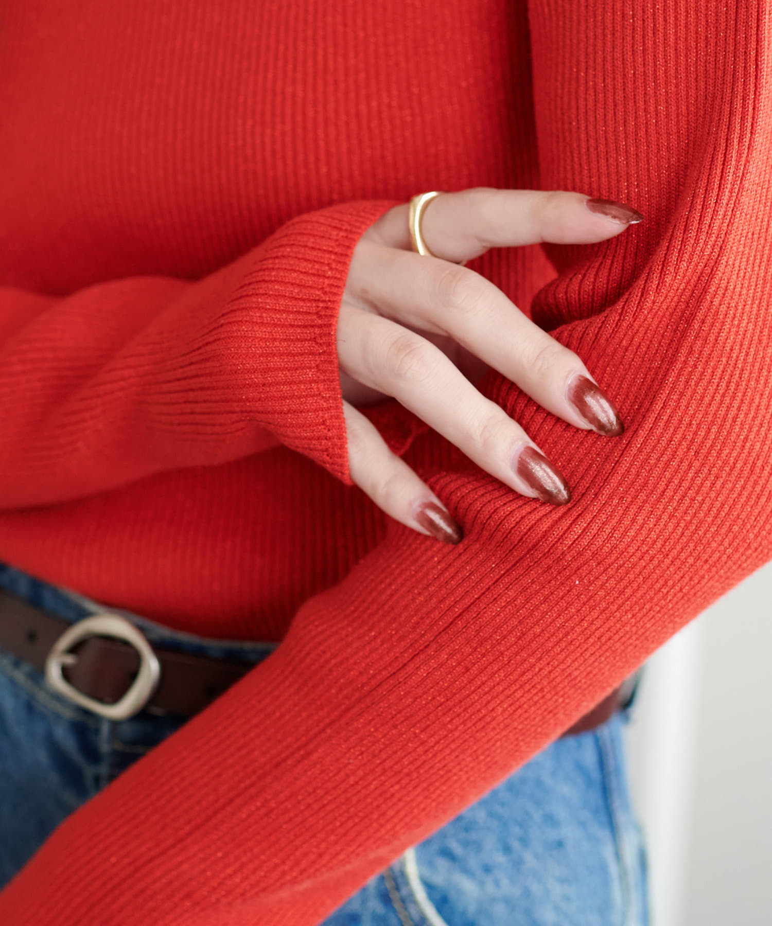 柔らかく伸縮性のあるリブ編みに、トレンドのきらきらのラメがコーデを華やかにするラメリブタートル。程よいフィット感で窮屈感なく、ラメが入っていながらチクチクもしないのでストレスフリーの着心地です。一枚着ではもちろん、すっきりとしたシルエットなのでワンピースやスウェットなどのインナー使いにもおすすめです!
