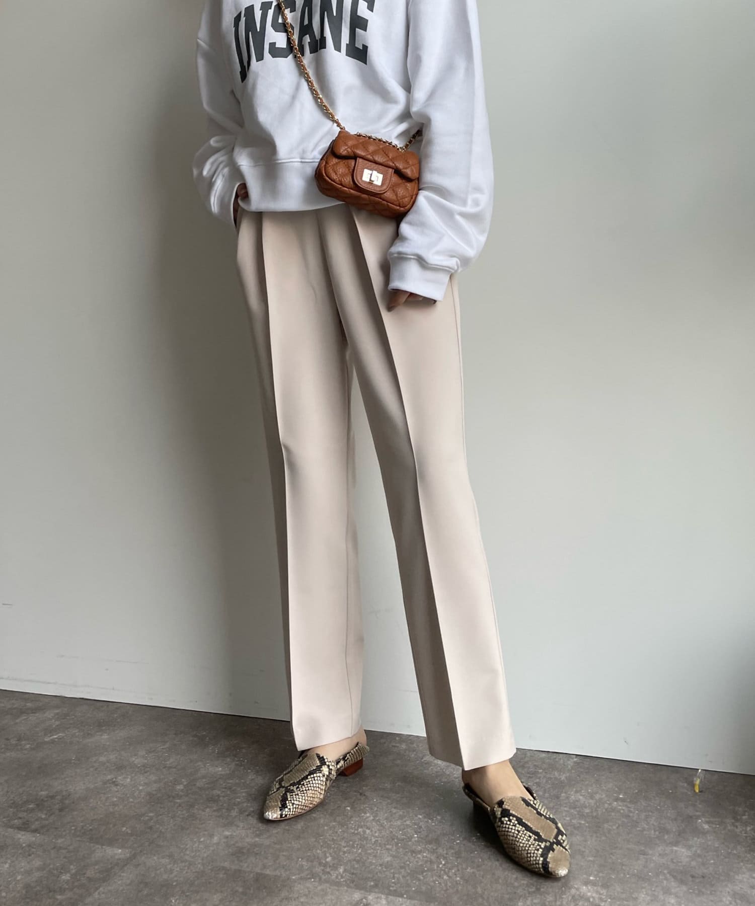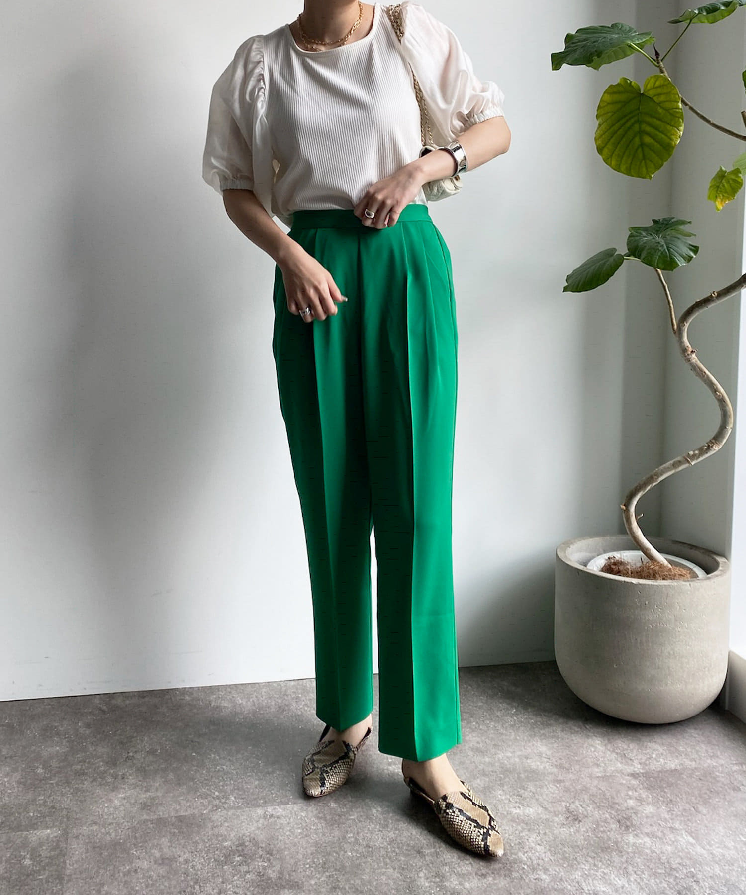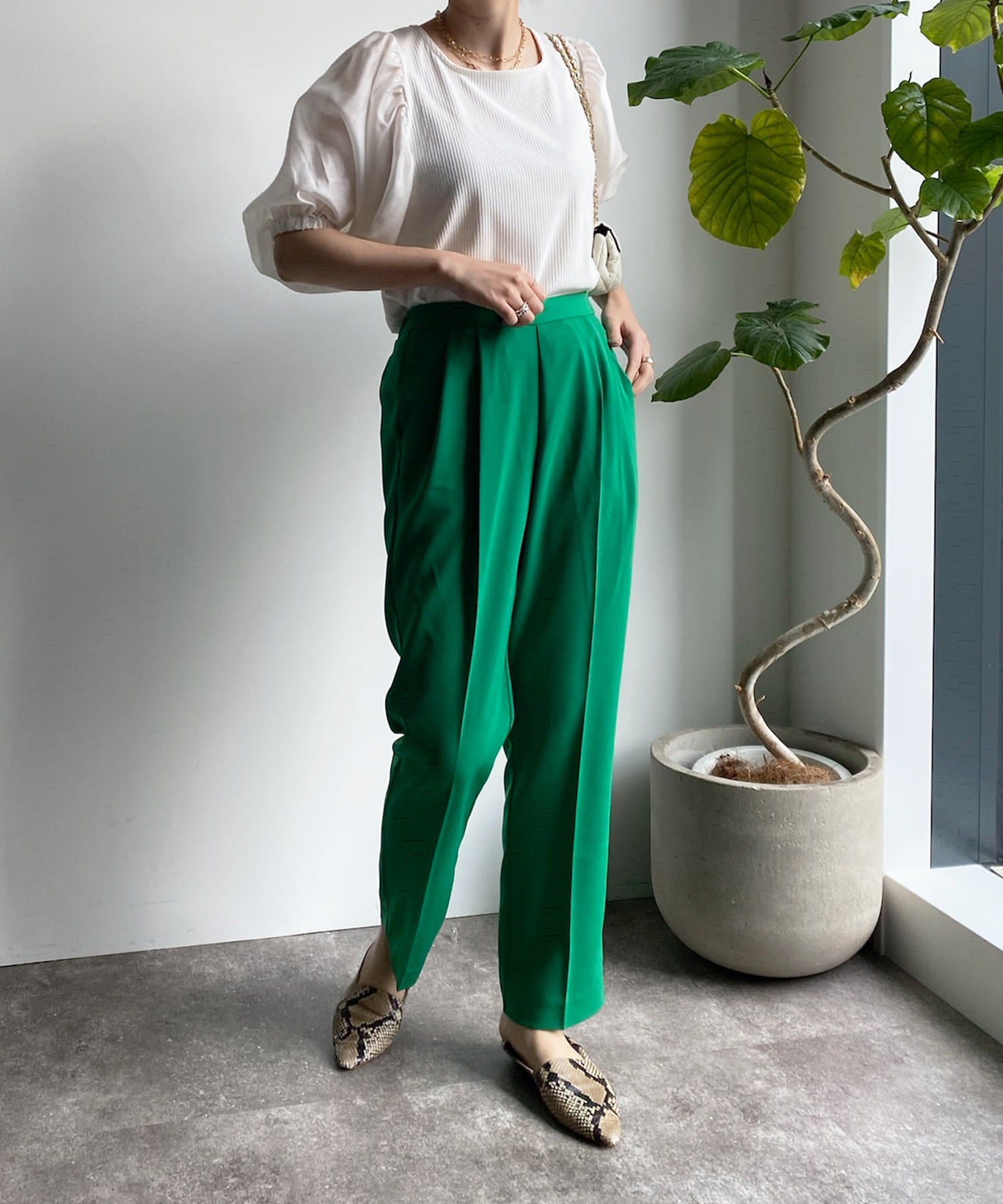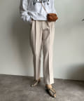 落ち感があり、高見えするソフトな素材感のテーパードはオン・オフにもどちらにも使える優秀アイテムです。