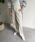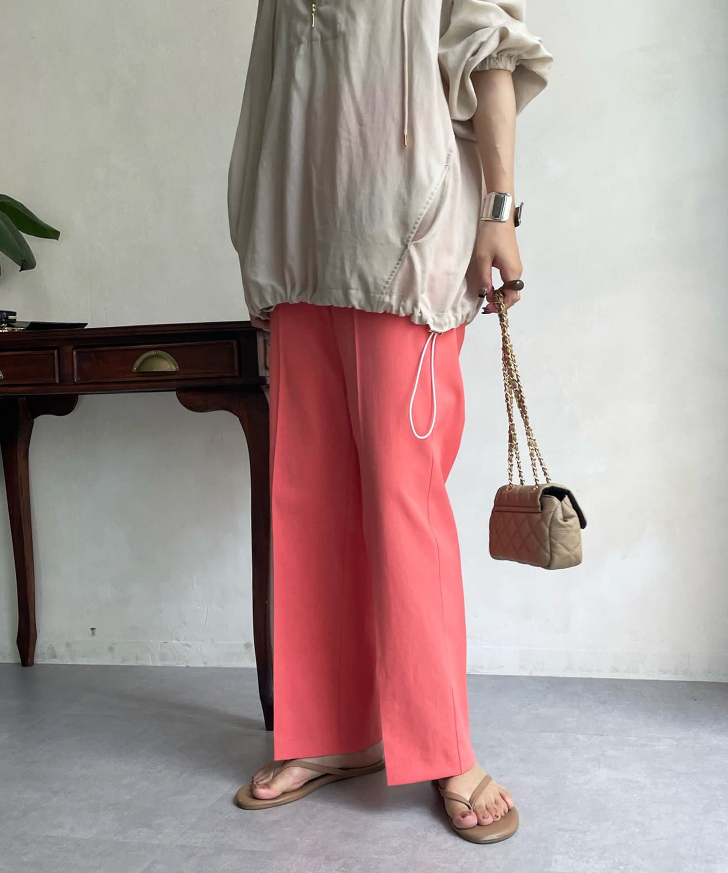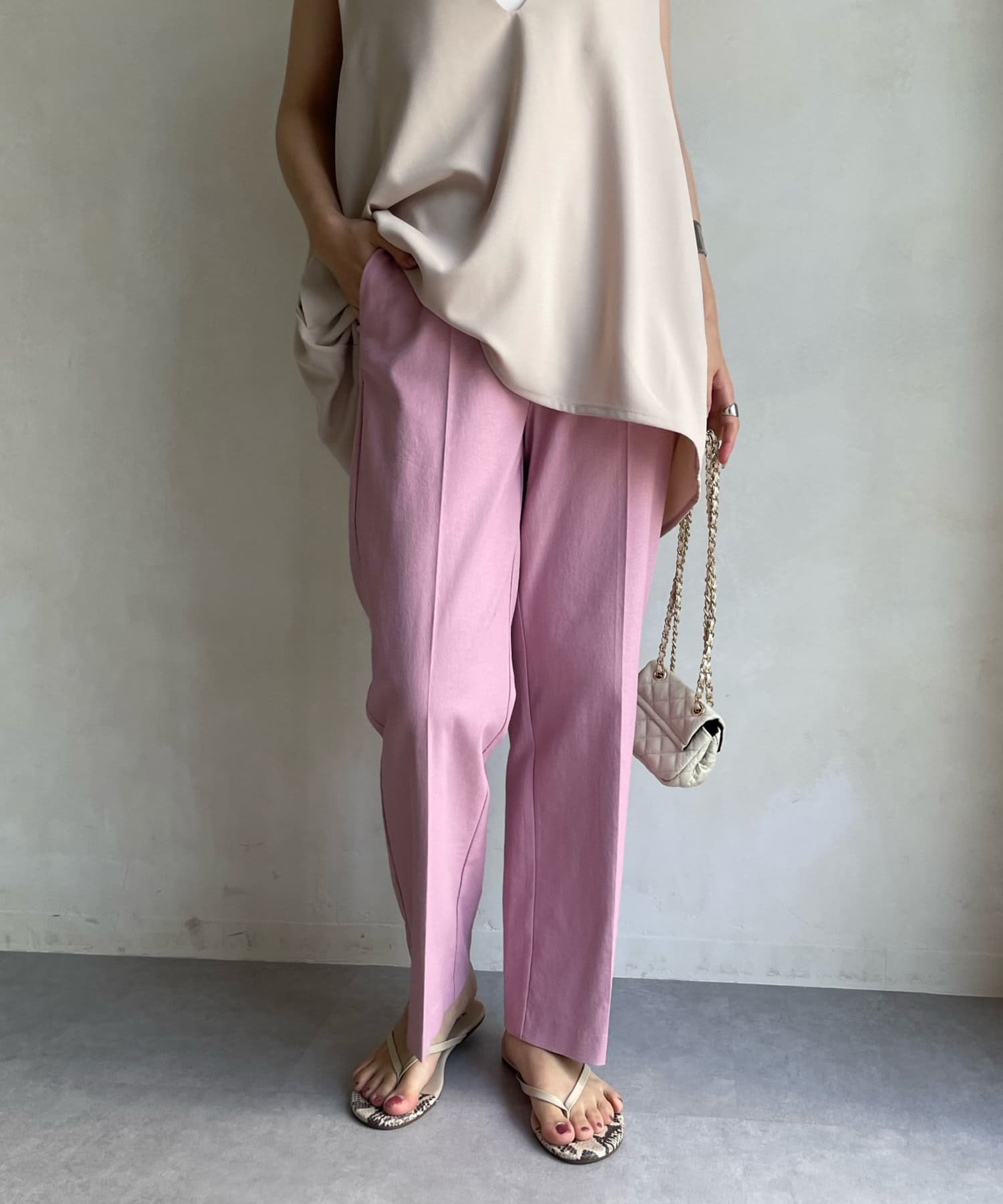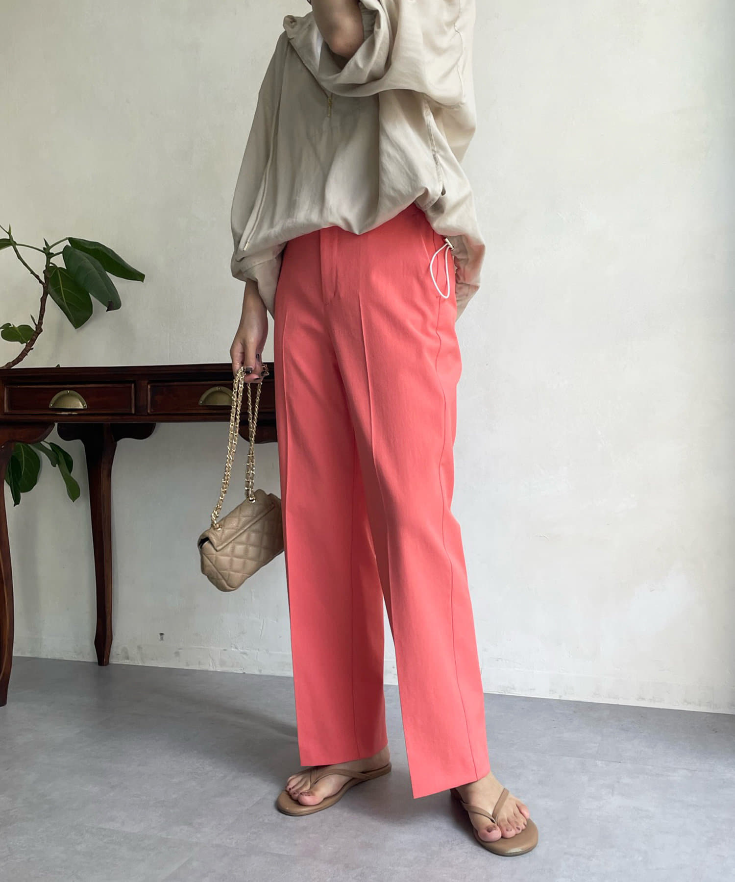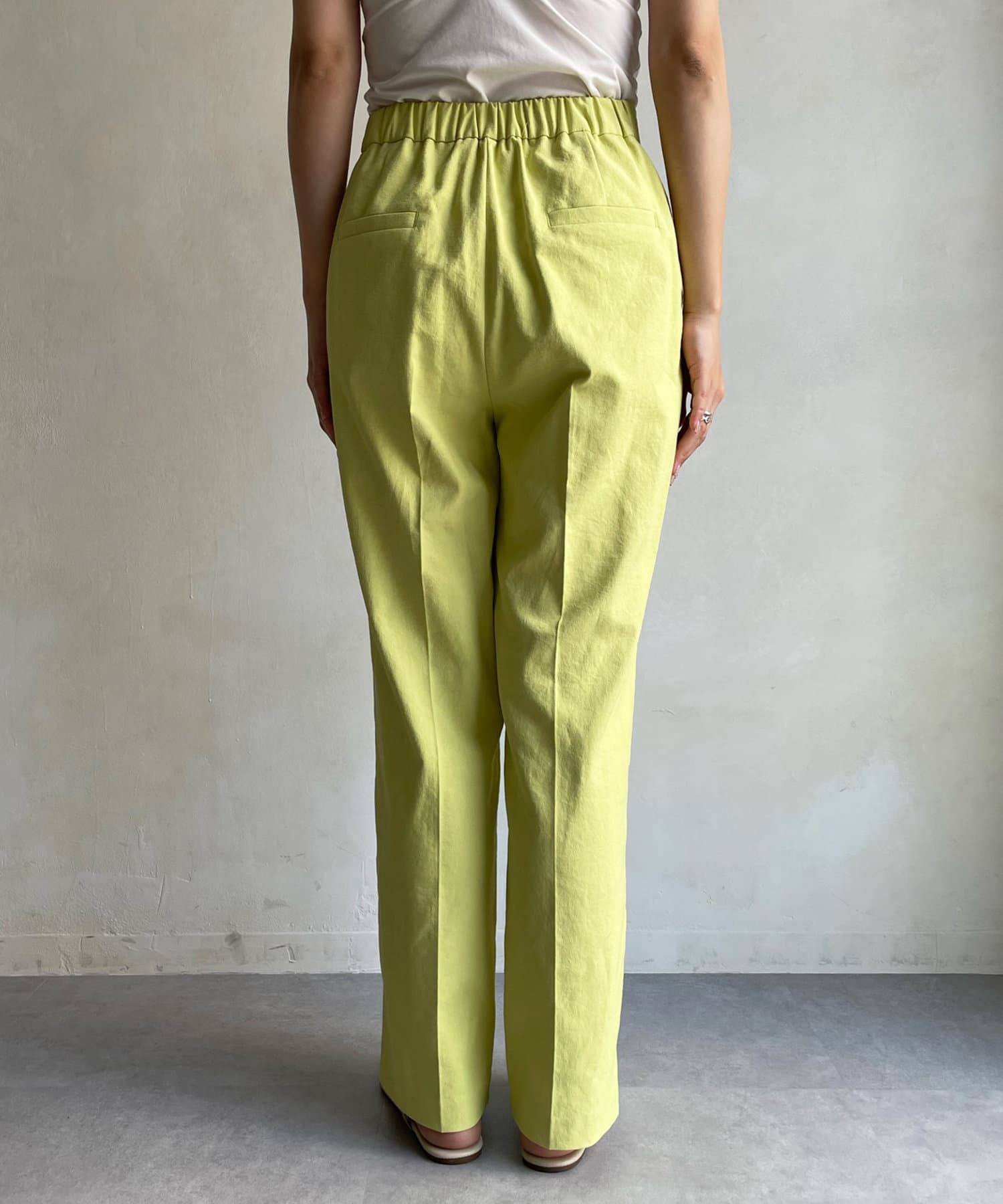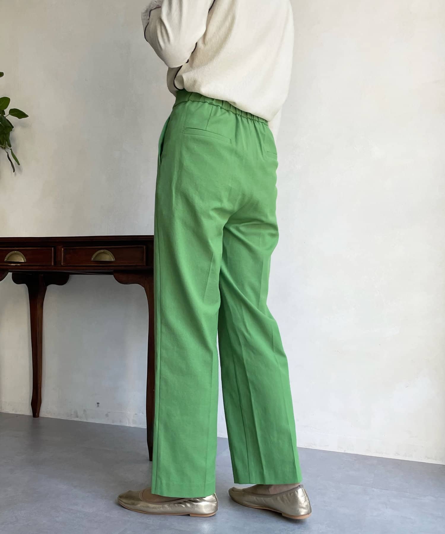 センタープレス入りできちんとした印象ながらも、後ろウエストにゴムを入れることで着心地の良さも実現しました。